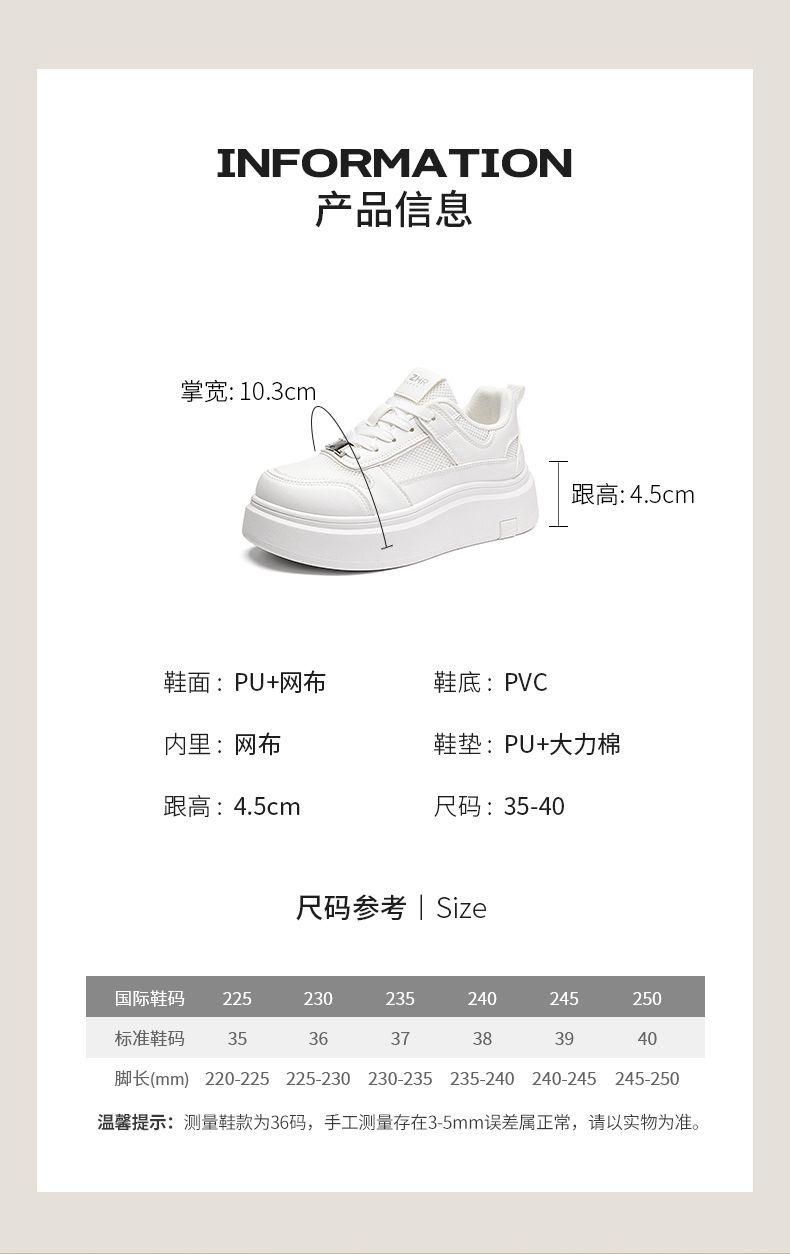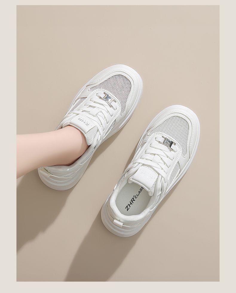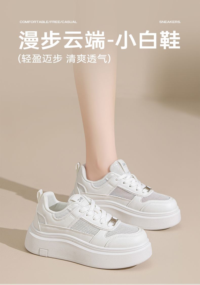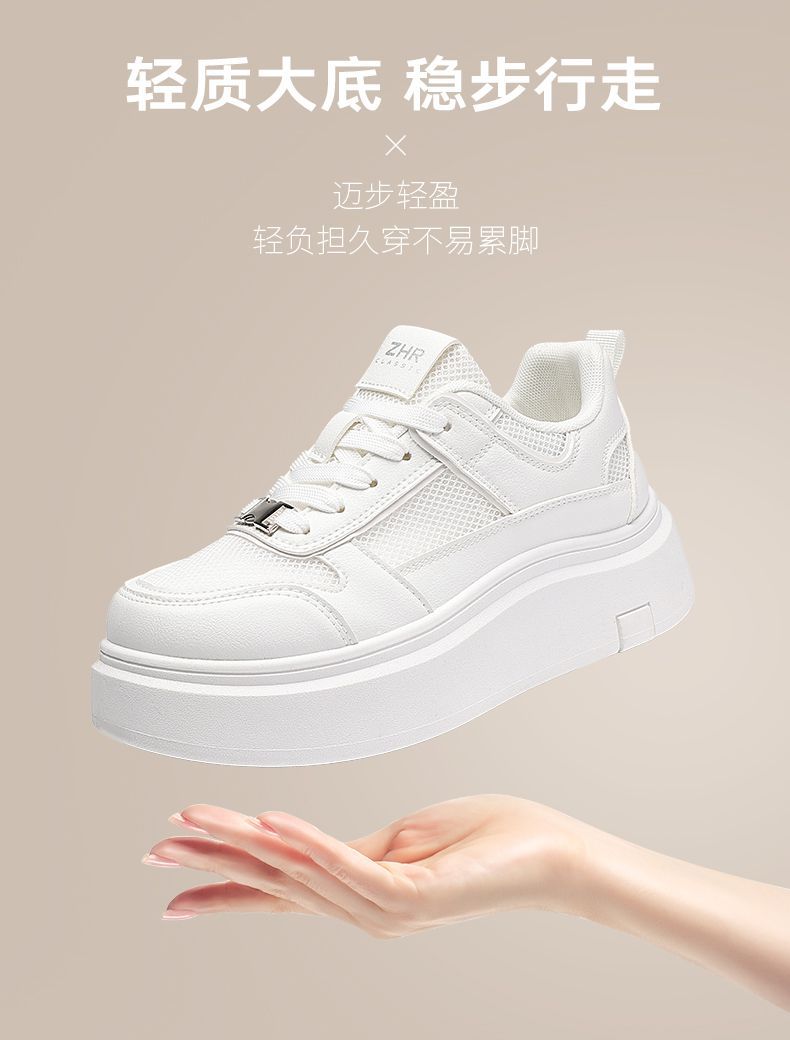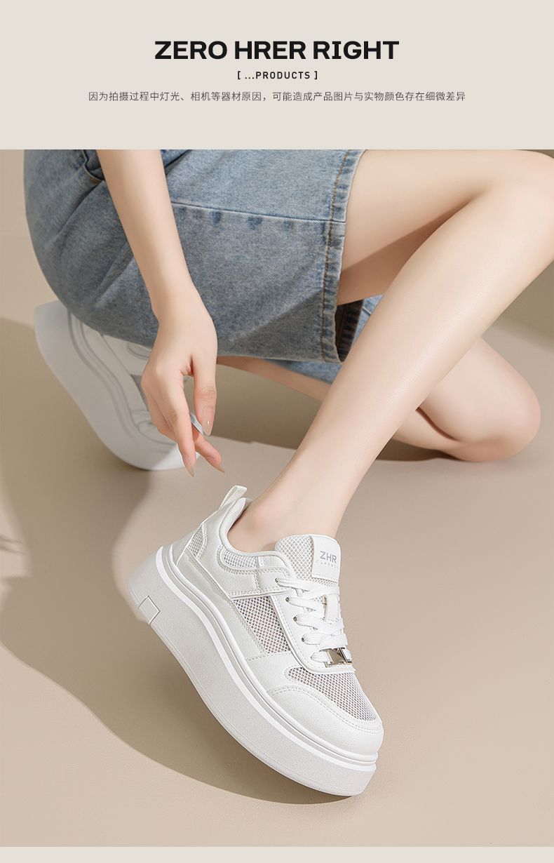 ZHR则则网面透气小白鞋女厚底增高夏季百搭厚底板鞋女薄款休闲鞋