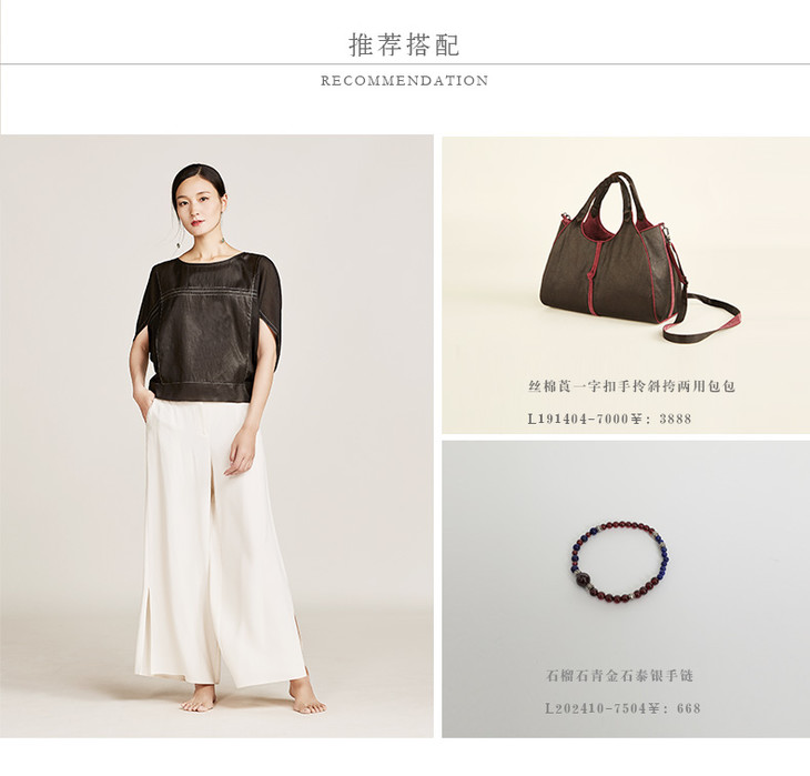 TANGY Collection天意莨绸银丝线迹蝙蝠袖上衣
