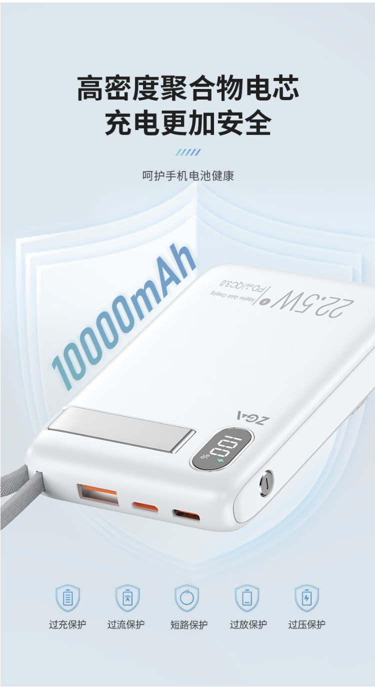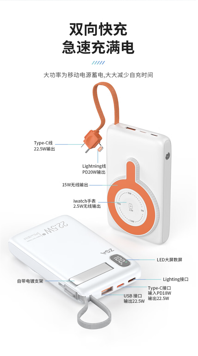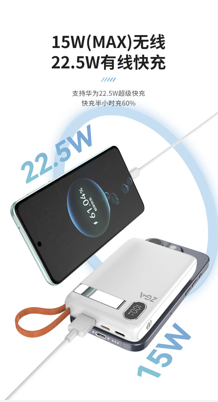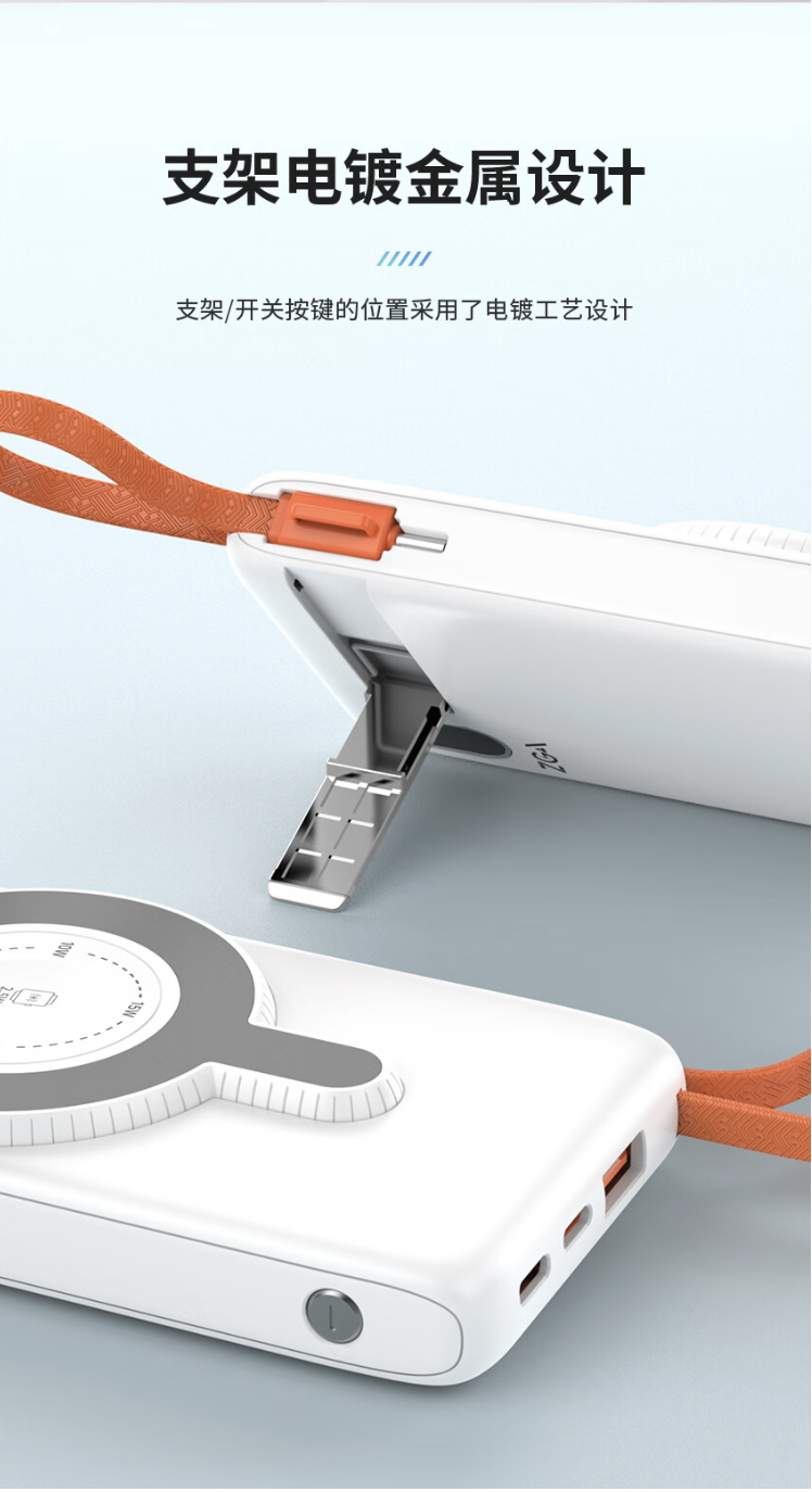 ZGA DY19 10000mAh自带线磁吸快充移动电源10000mAh大容量手表耳机手机充电快充