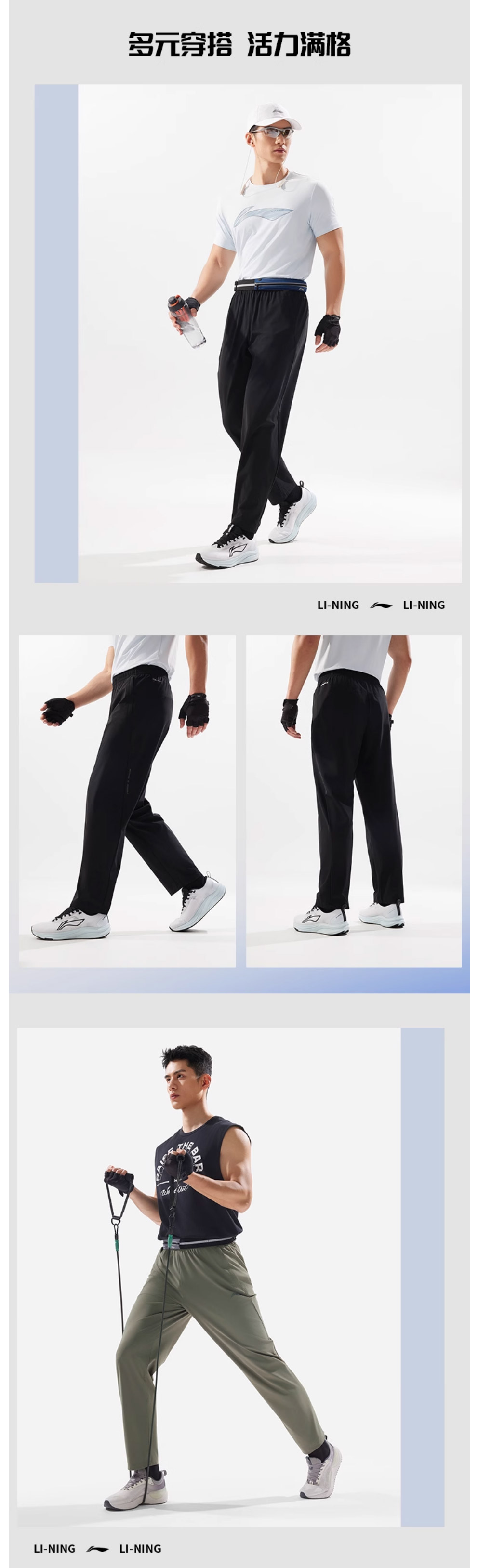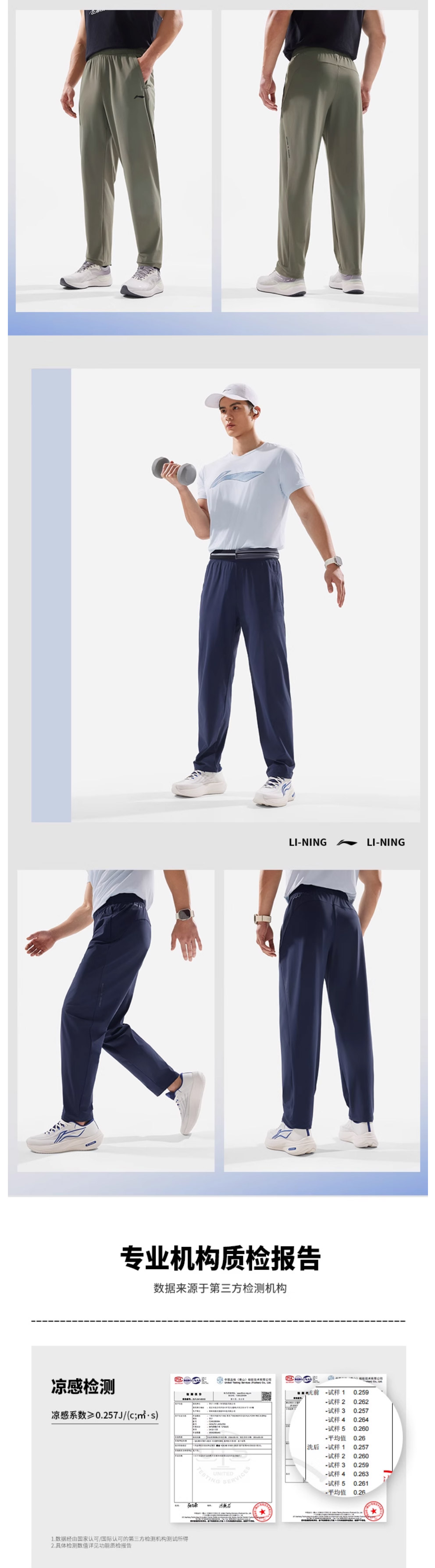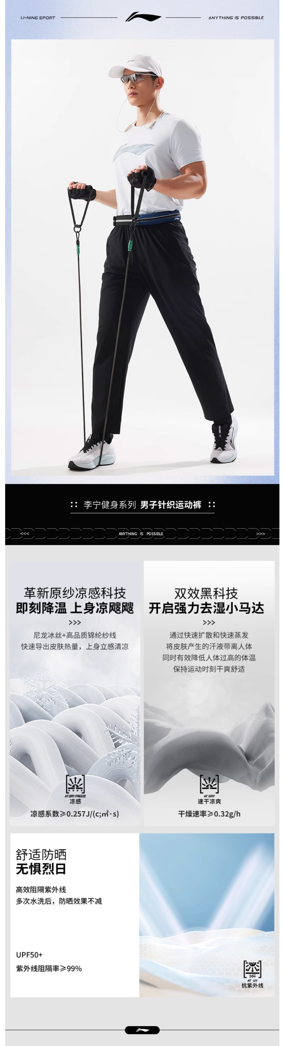 李宁男士新款冰感夏季直筒针织运动长裤AKYV025