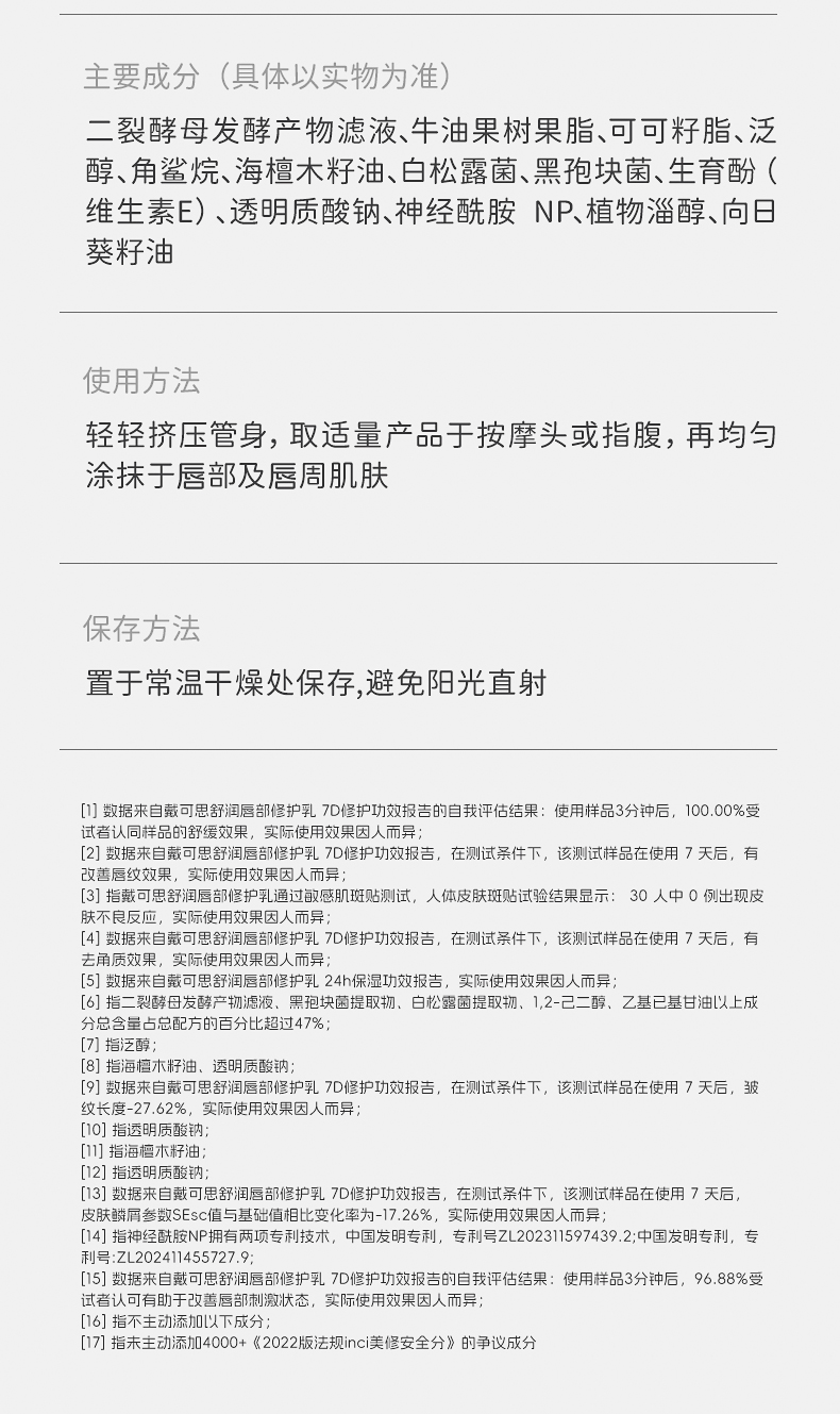 戴可思舒润唇部修护乳舒缓保湿淡化唇纹去死皮唇乳秋冬女敏唇可用♥