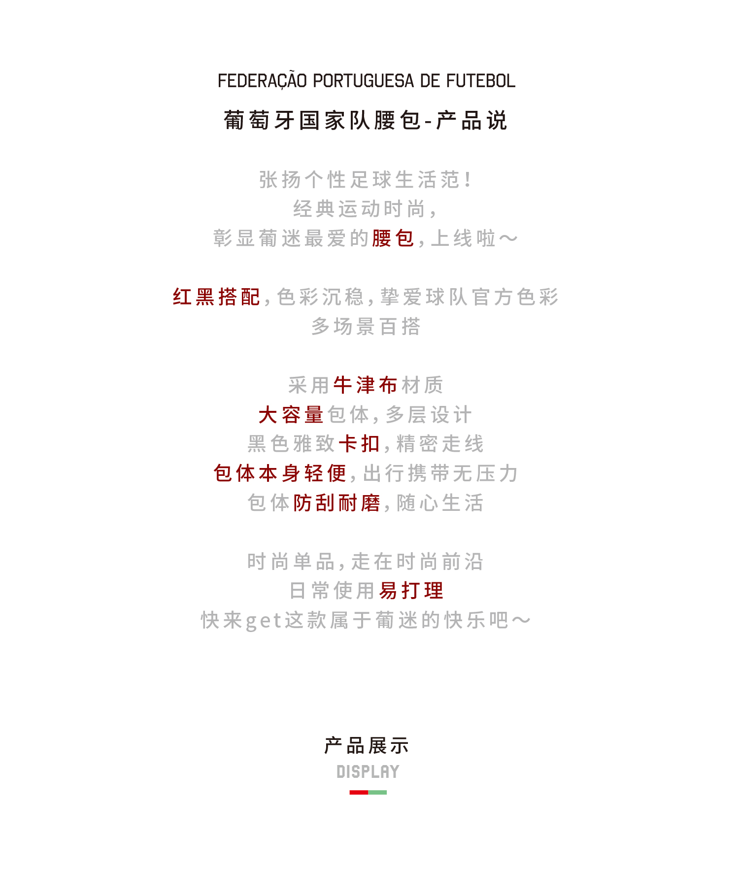 葡萄牙国家队官方商品丨休闲时尚运动腰包单肩斜挎大容量收纳C罗
