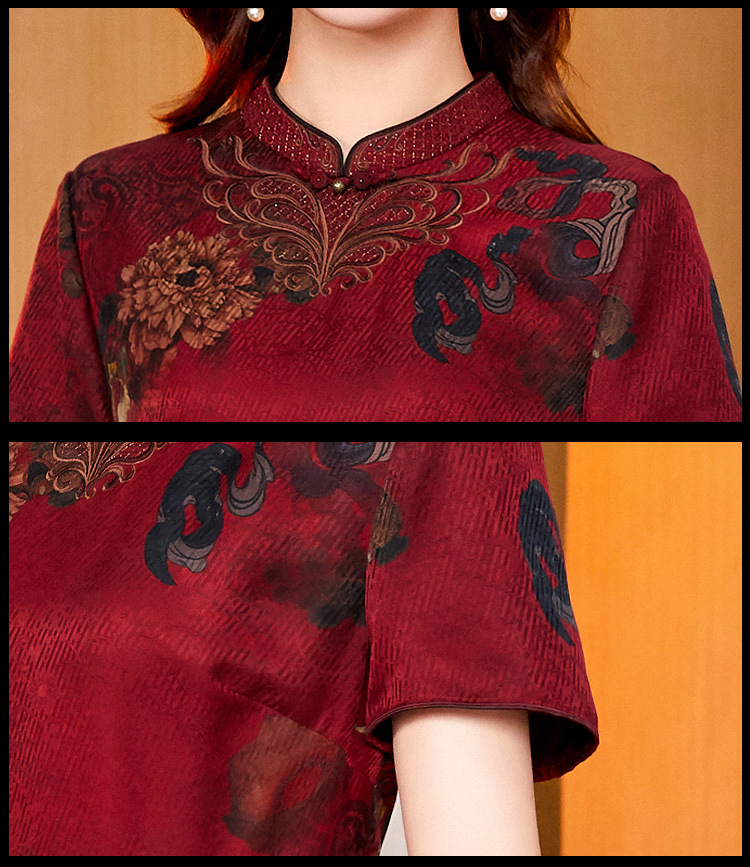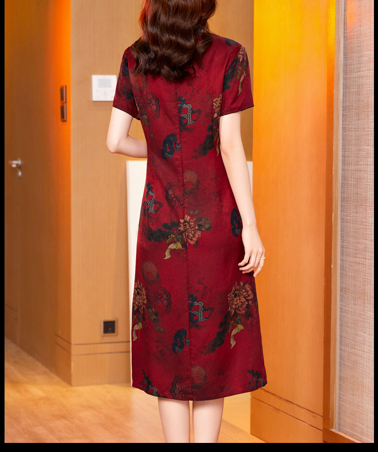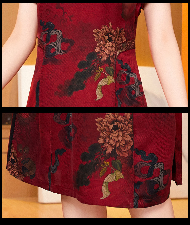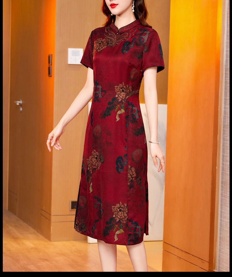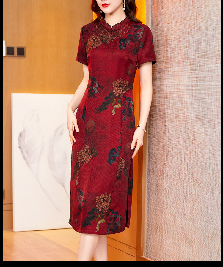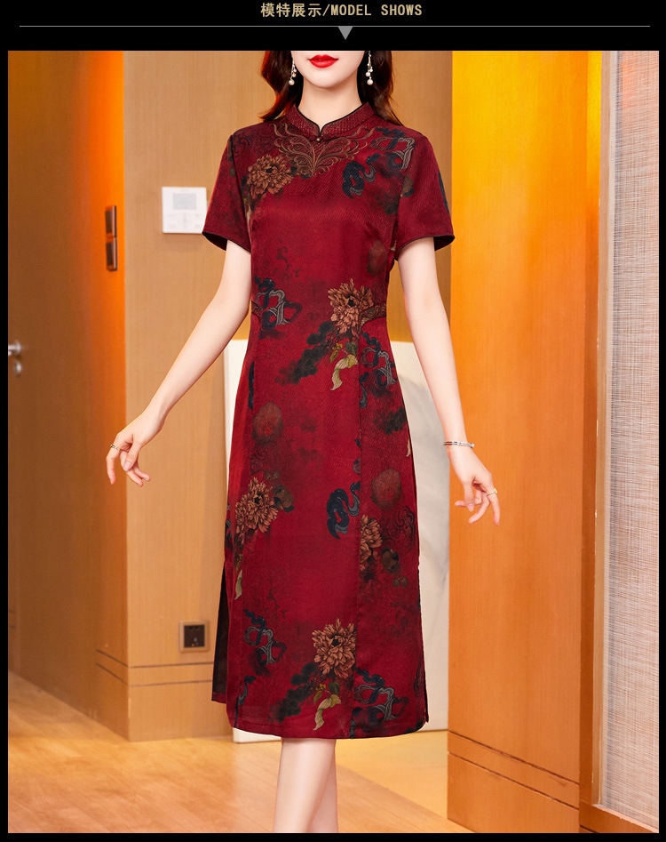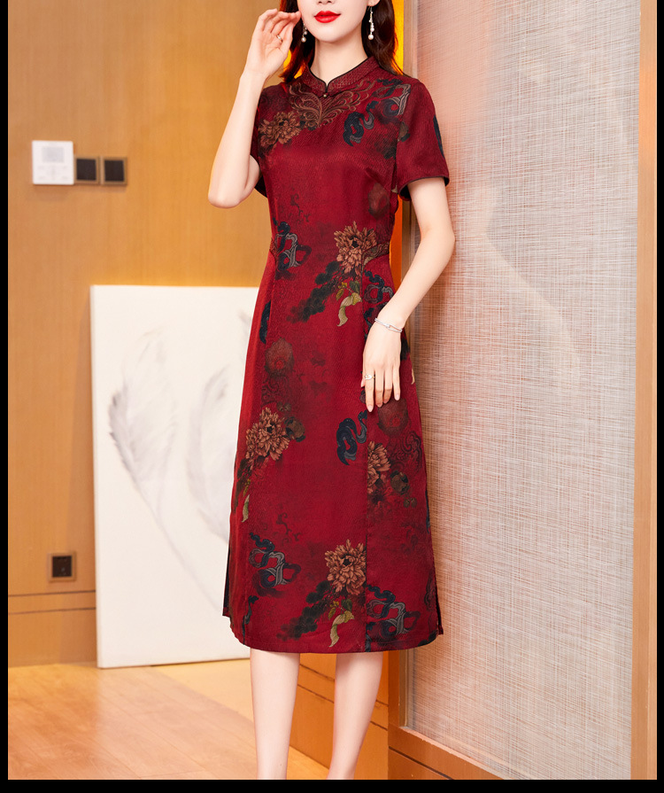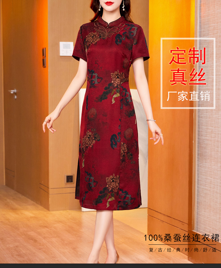 真丝花萝香云纱连衣裙,改良旗袍夏季妈妈礼服婚宴装ZT-22159