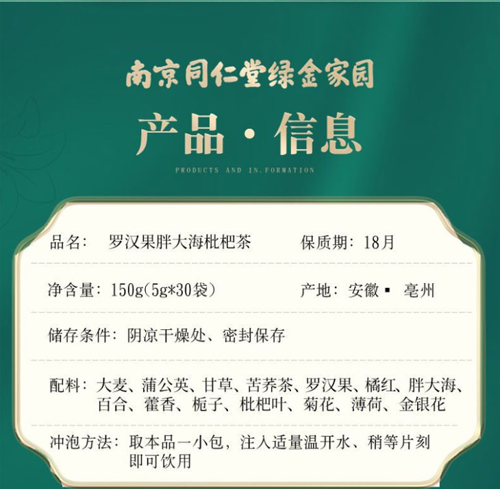 【清肺茶】南京同仁堂罗汉果胖大海枇杷茶 养生茶 护嗓润喉花茶
