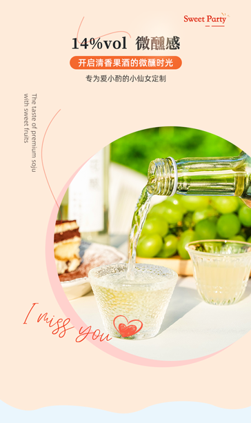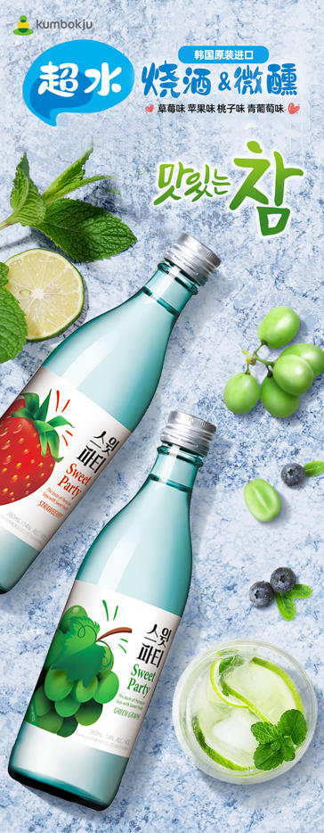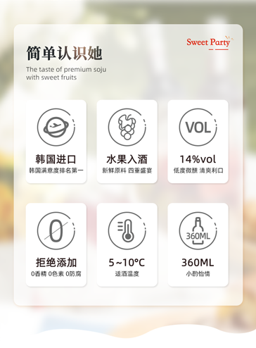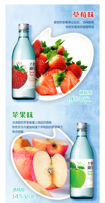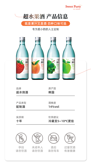 韩国超水甜蜜派对配制酒360ml苹果味/草莓味/桃子味 14度微醺冰镇冷藏别有滋味 220036/220037/220039