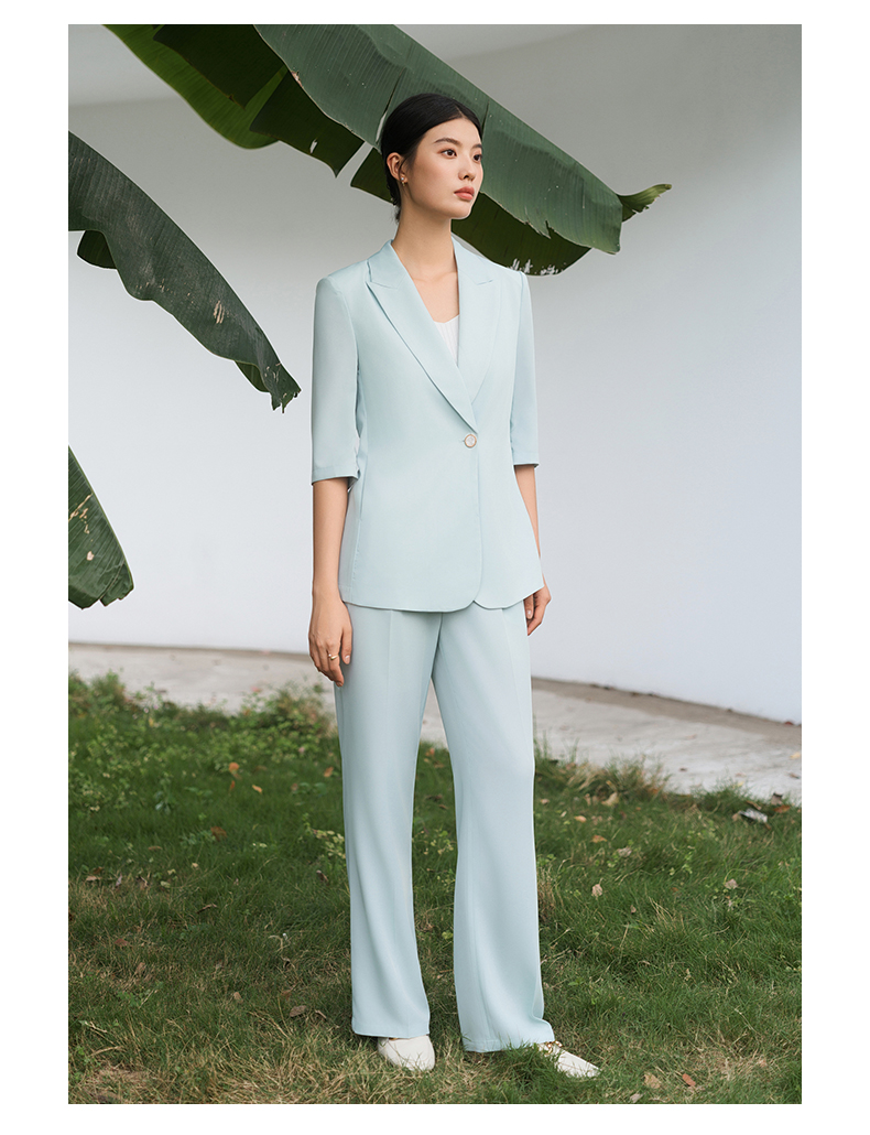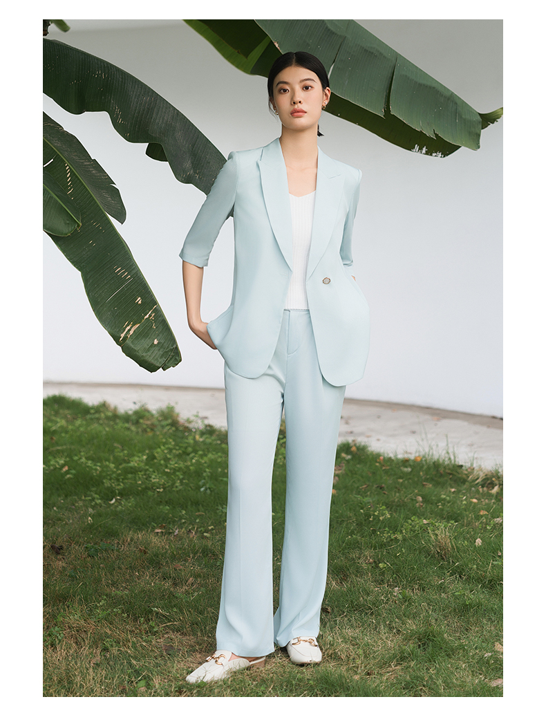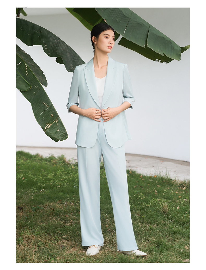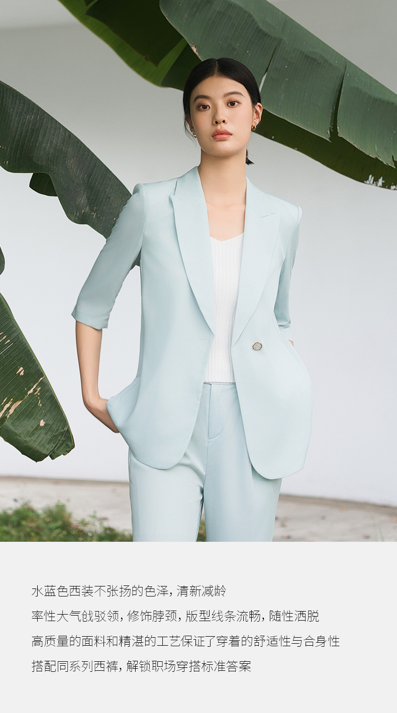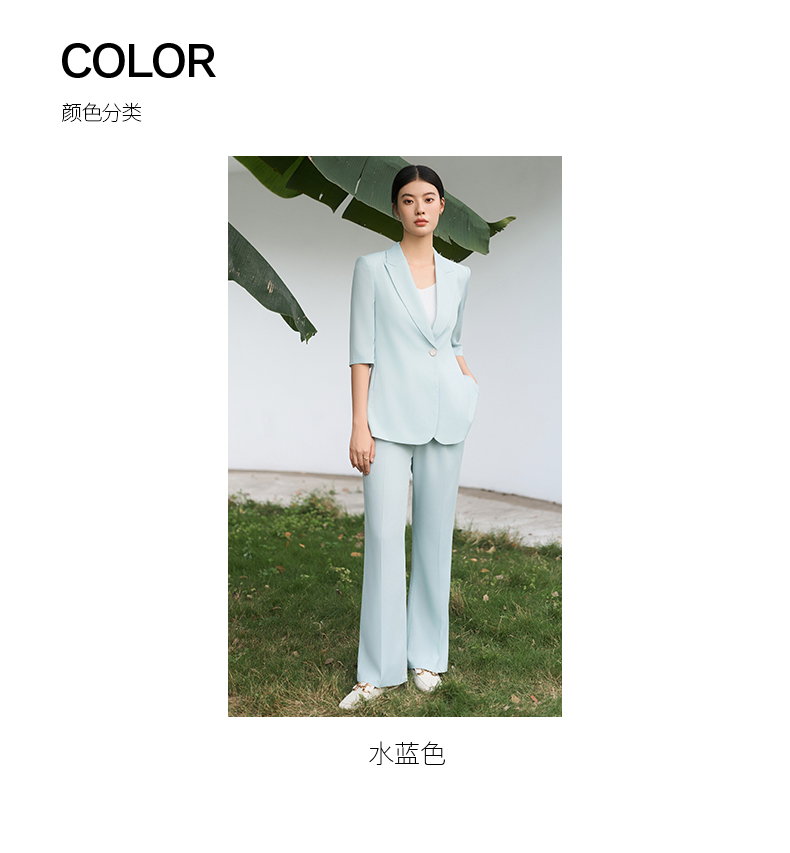 IWY/水蓝色西装套装宽松休闲七分袖高级通勤职装西服显瘦阔腿裤装C13512+P33512水蓝色