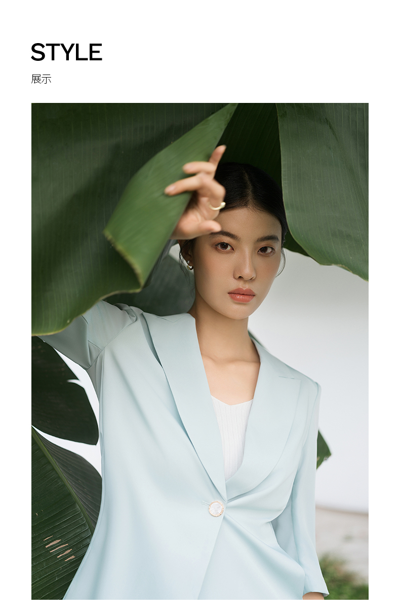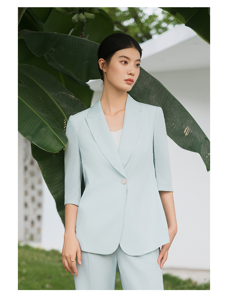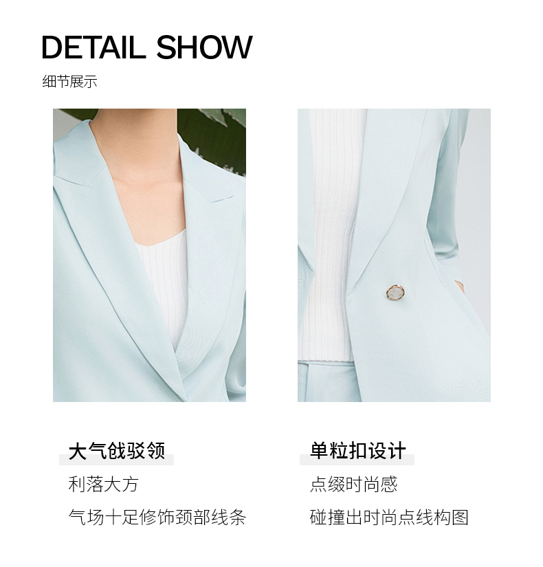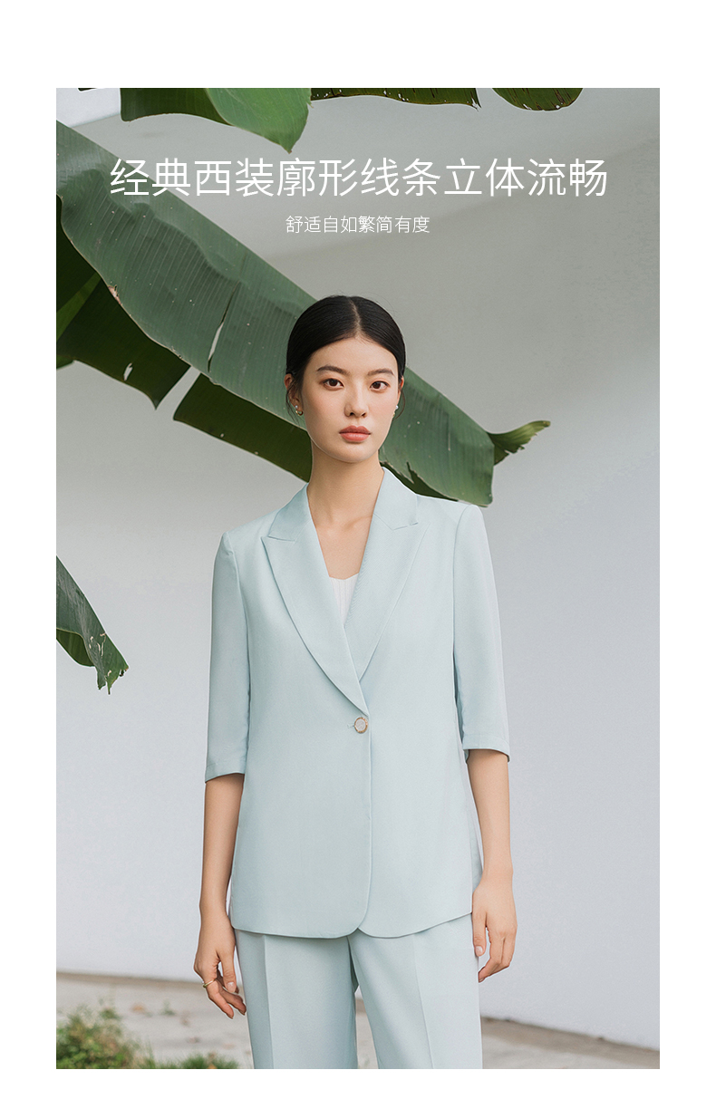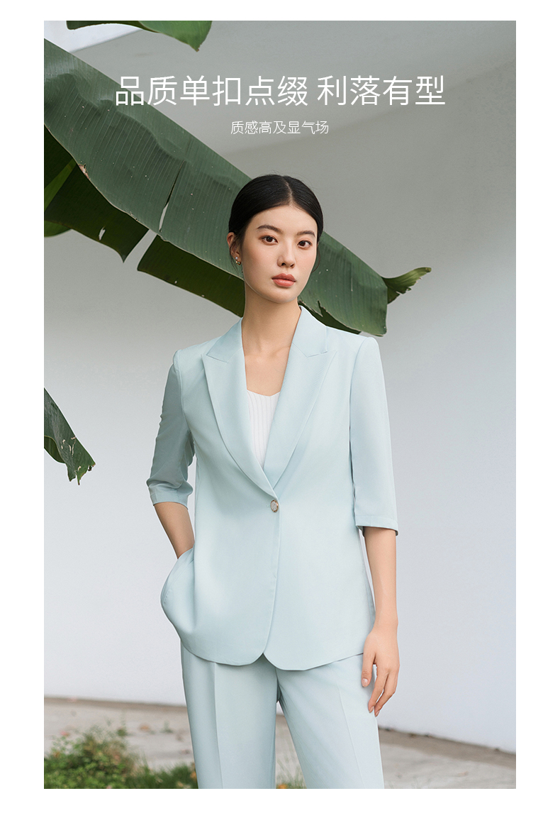 IWY/水蓝色西装套装宽松休闲七分袖高级通勤职装西服显瘦阔腿裤装C13512+P33512水蓝色