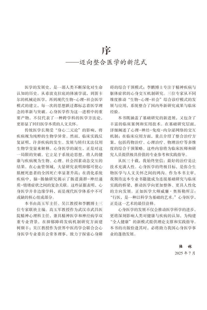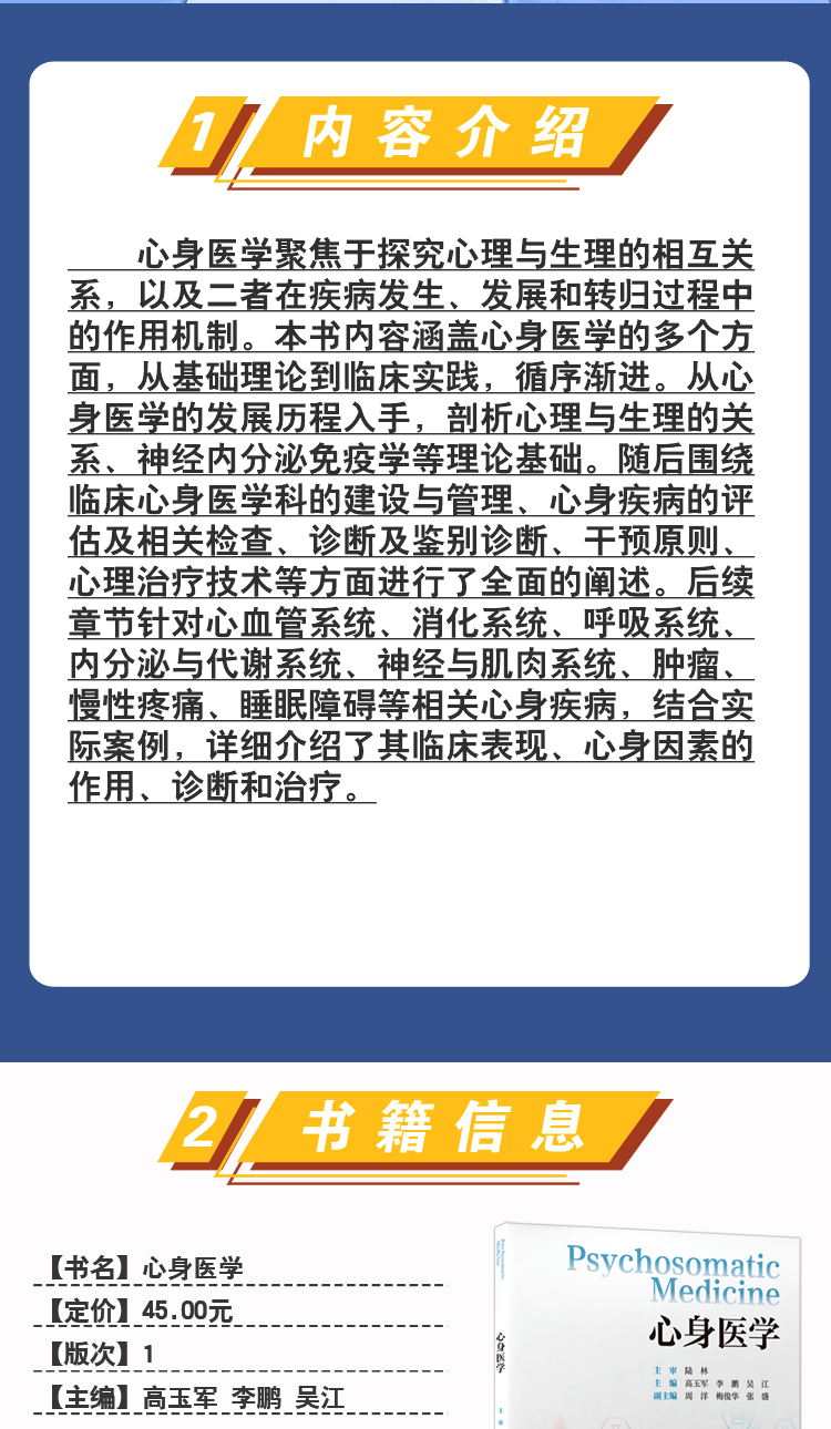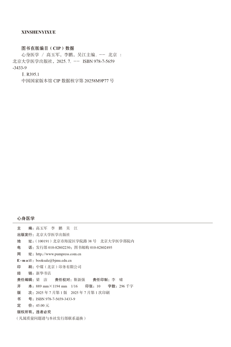 心身医学 高玉军 李鹏 吴江 主编 涵盖心身医学的多个方面 从基础理论到临床实践 循序渐进 9787565934339 北京大学医学出版社