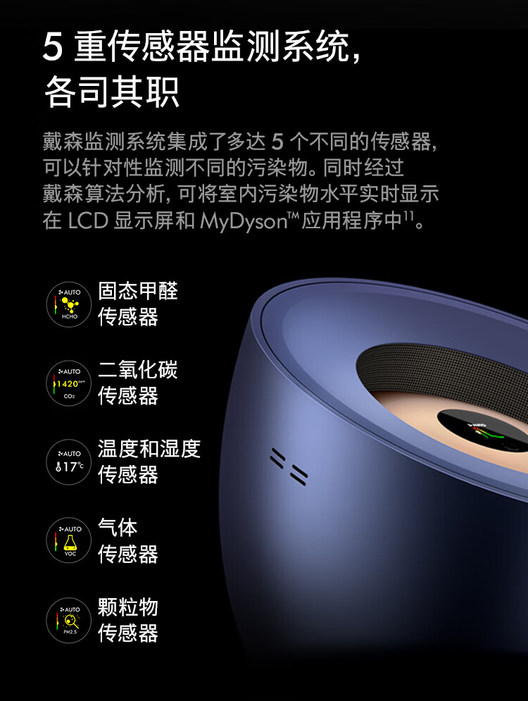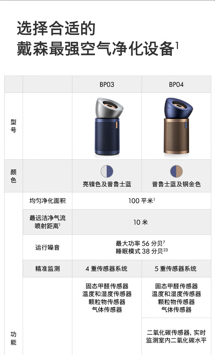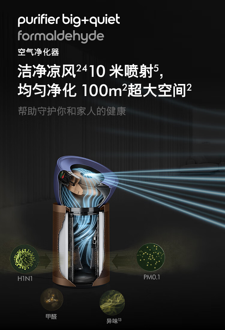 戴森(DYSON)DYSON BP04空气净化器 大面积净化异味和过敏原 滤除花粉 宠物毛发 输出洁净凉风 【蓝金色】