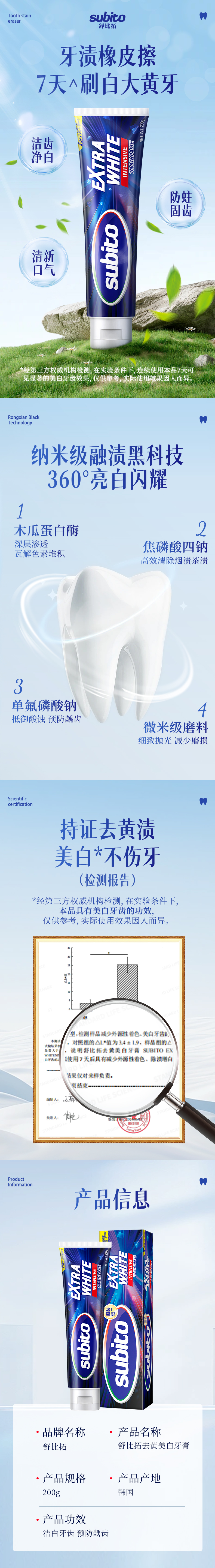 舒比拓去黄美白牙膏200g