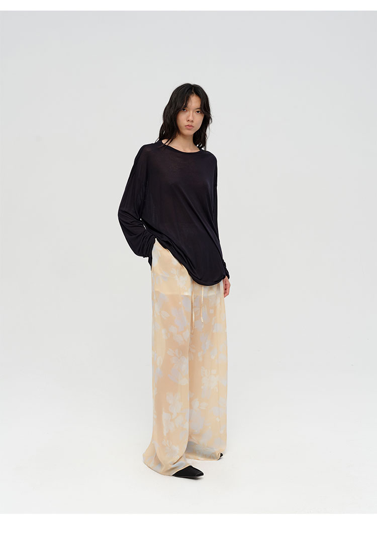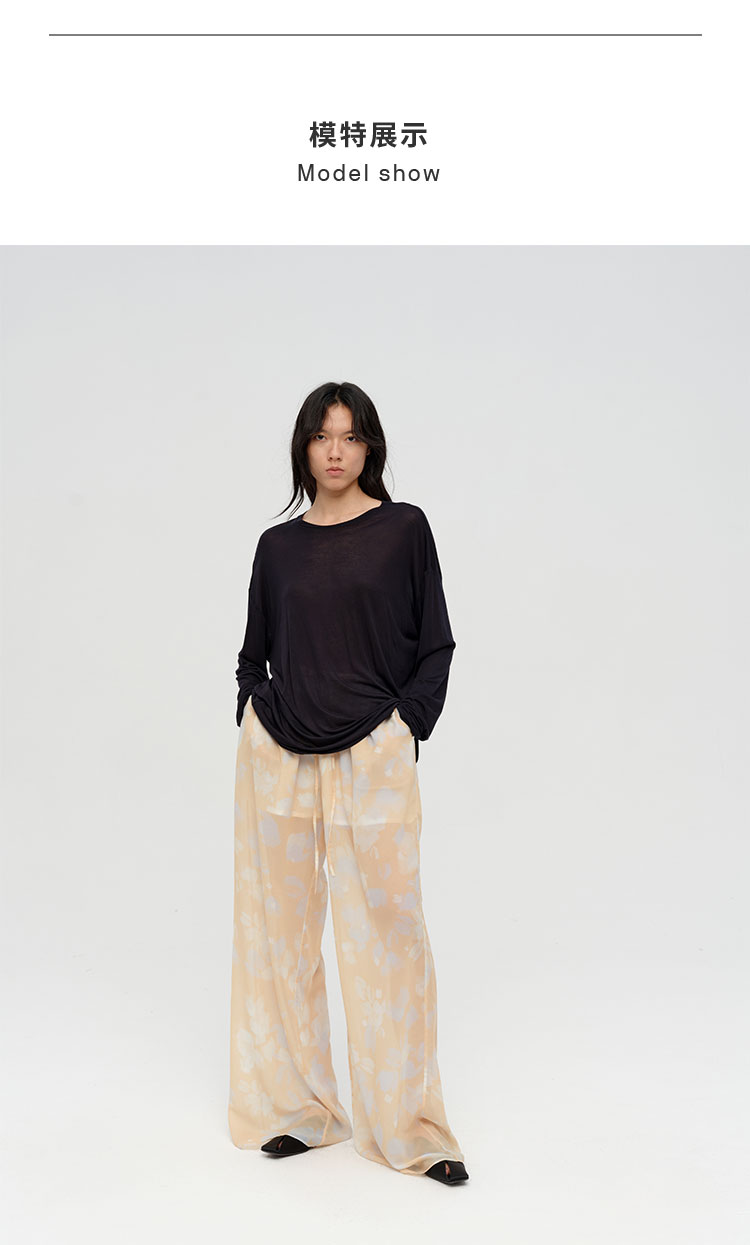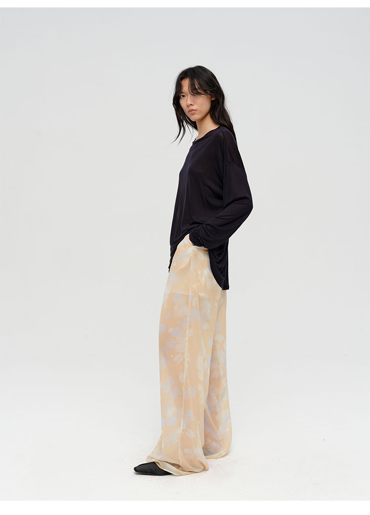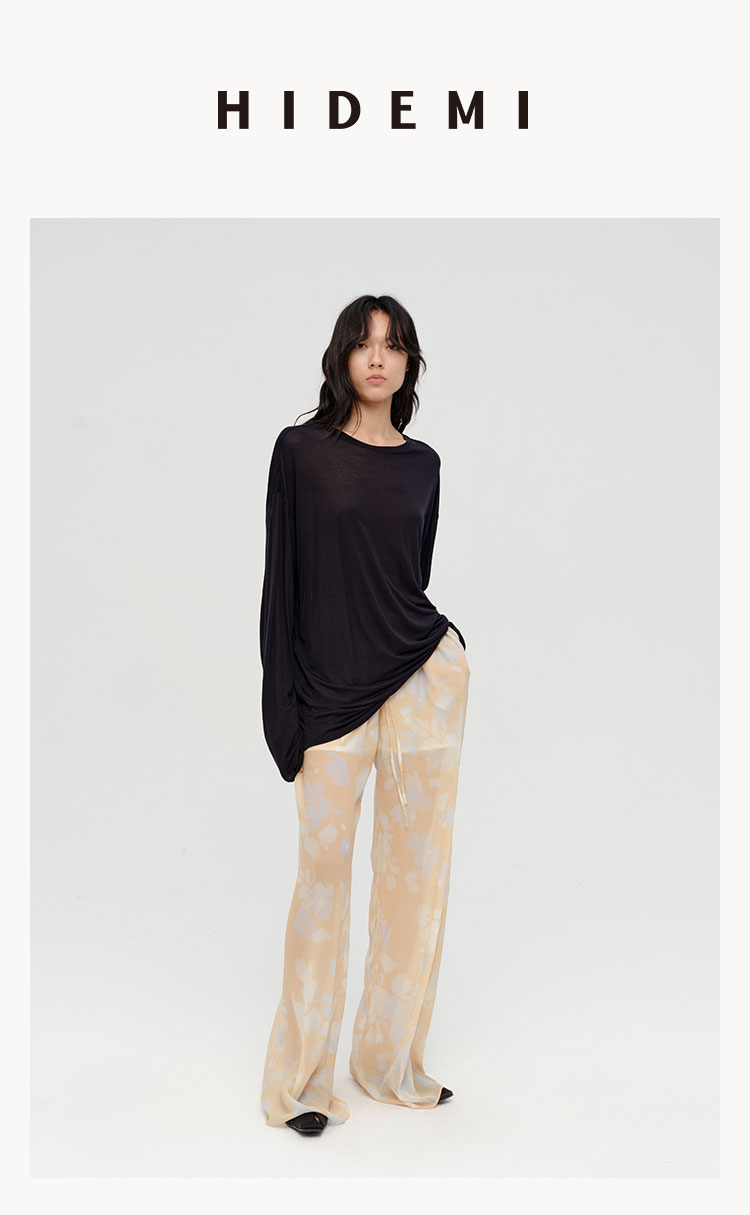 HIDEMI 设计感艺术感水波柔雾印花清透感油画系列微透长裤