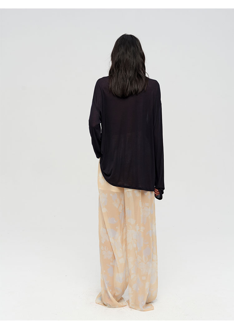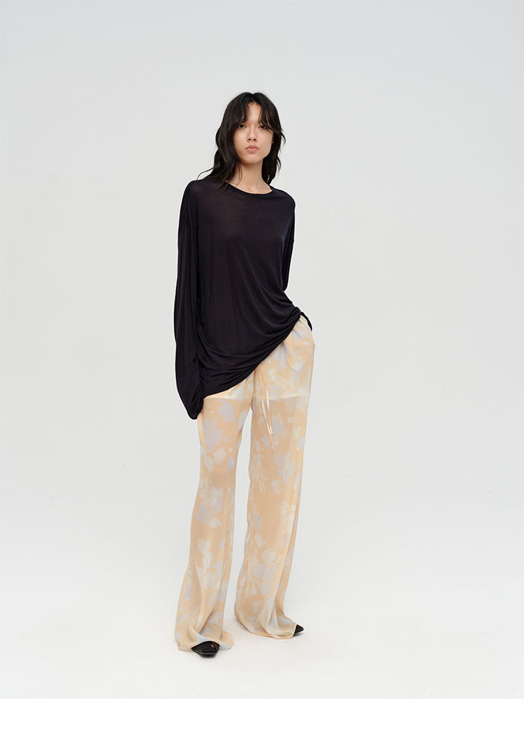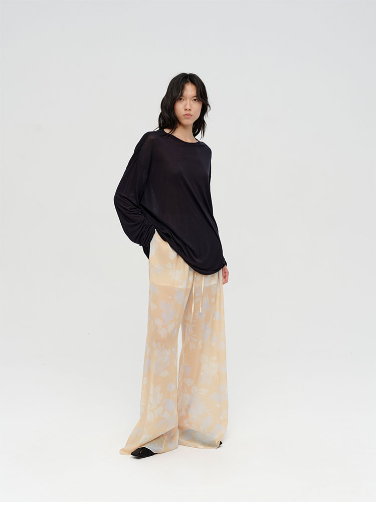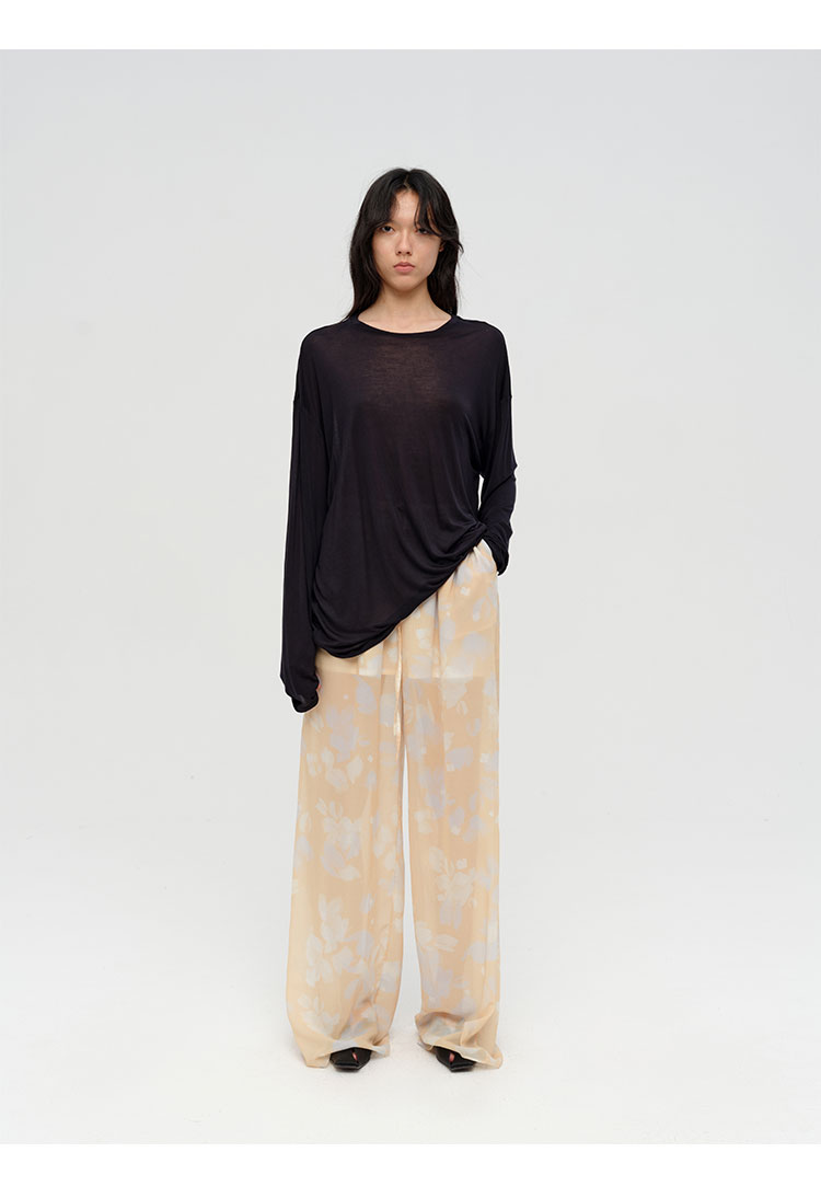 HIDEMI 设计感艺术感水波柔雾印花清透感油画系列微透长裤