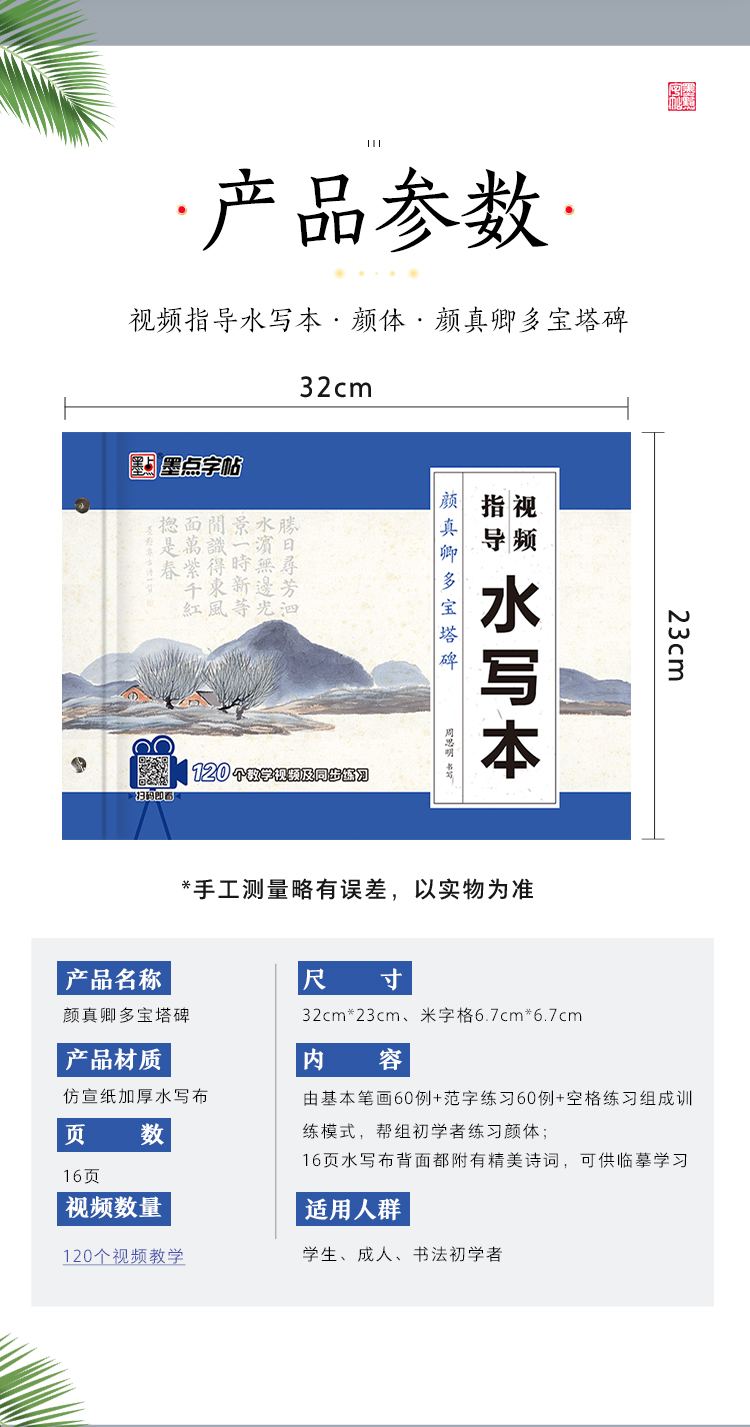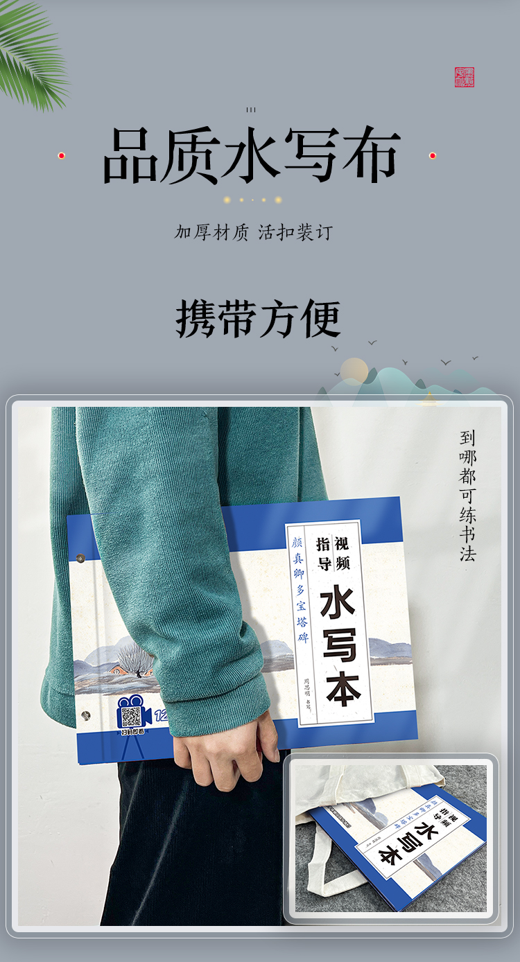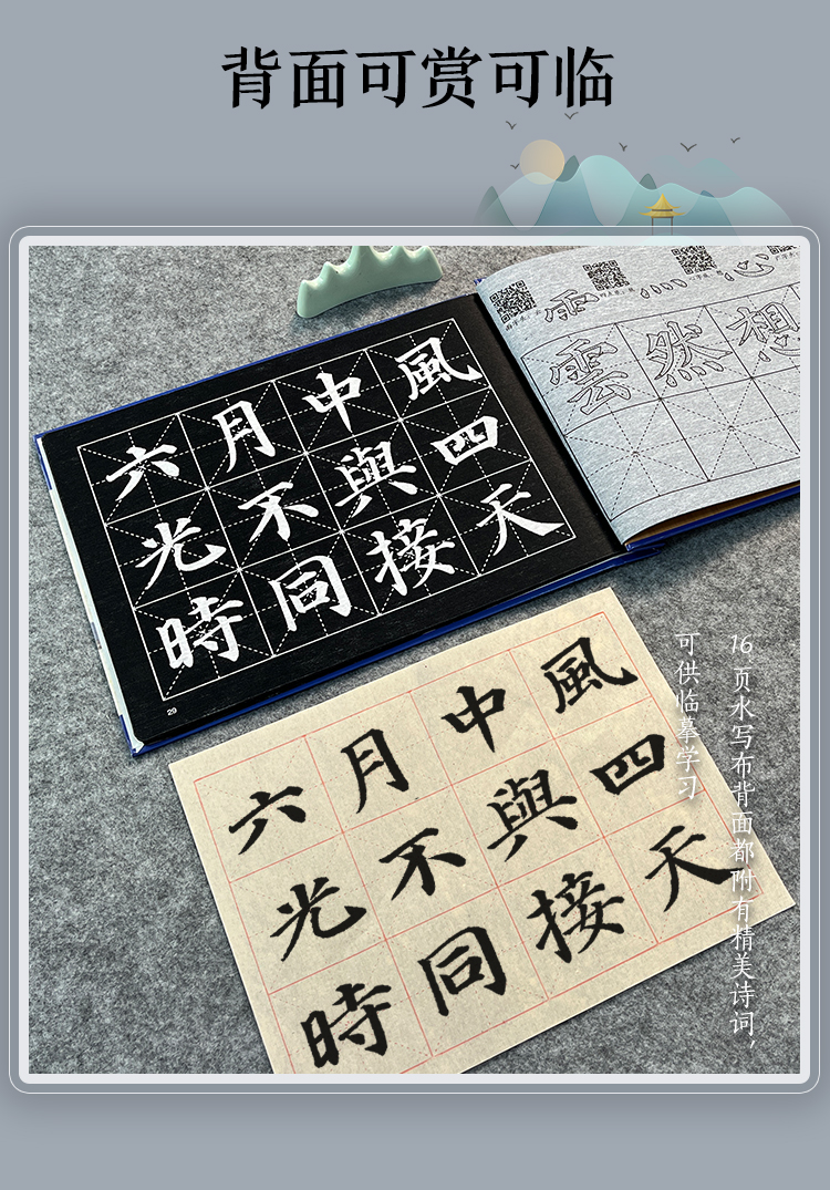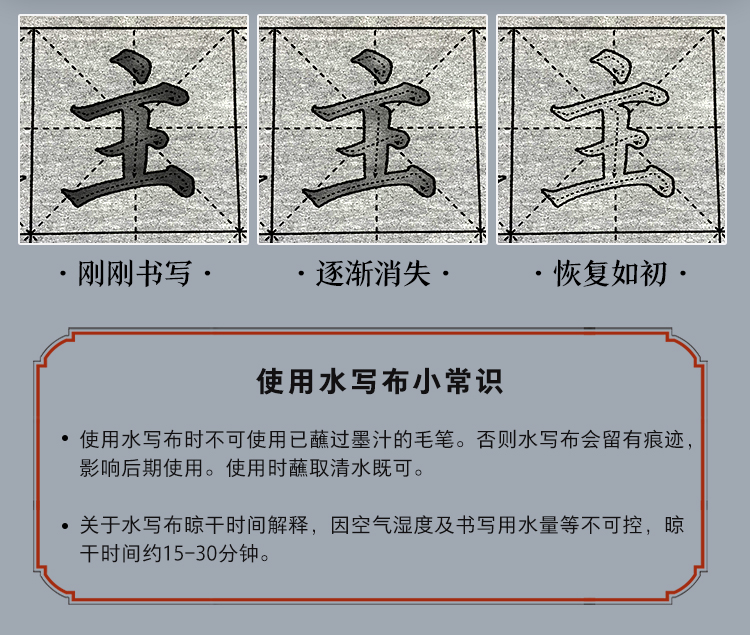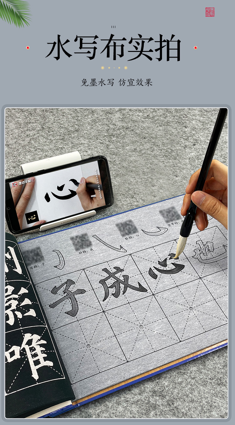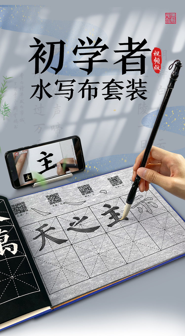 墨点毛笔字帖水写布套装清水练毛笔字万次水写书法练字入门加厚速干水洗布练字帖初学者毛笔套装初学水写布