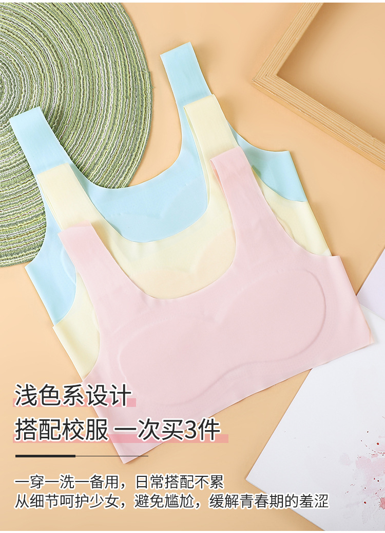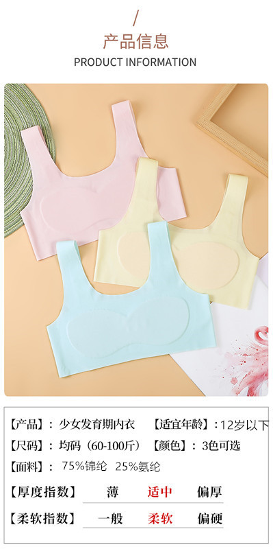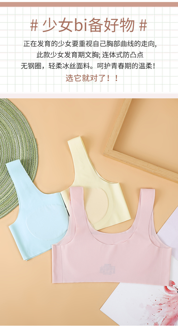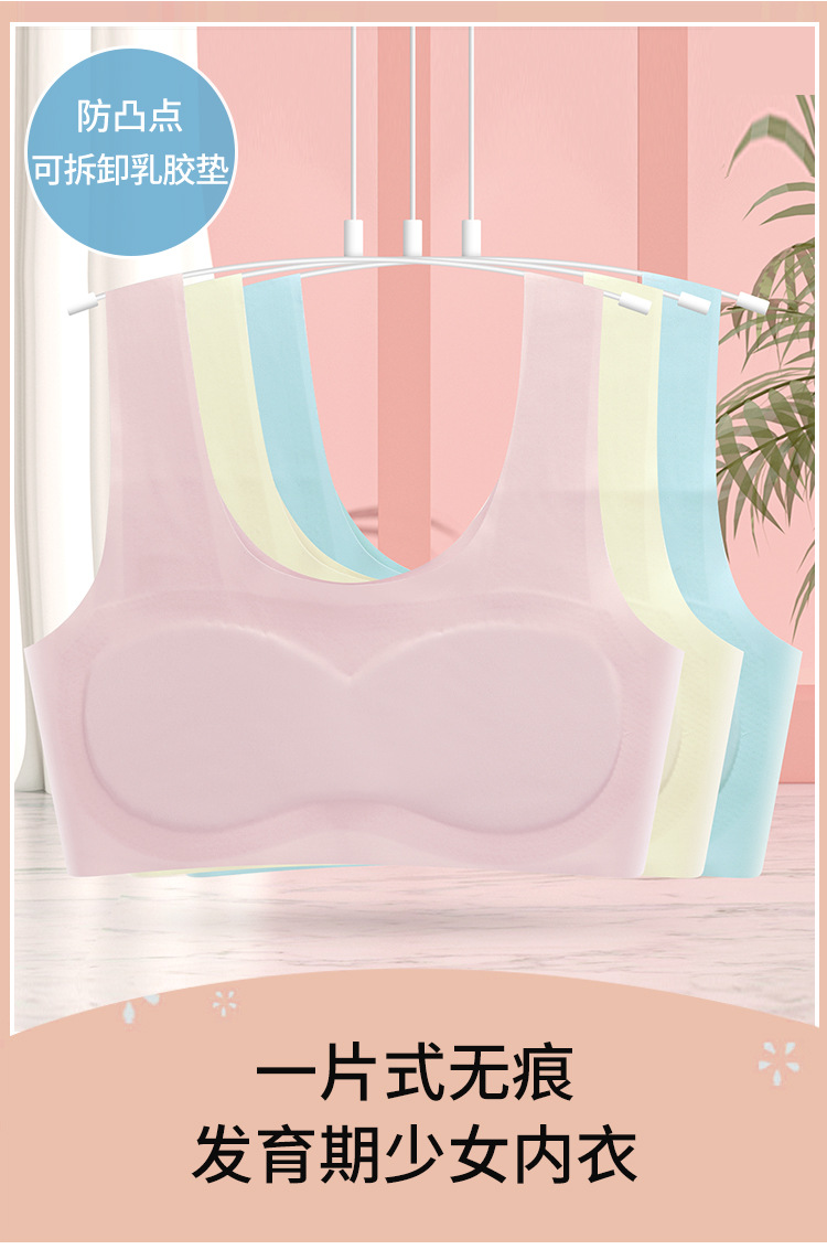 【乳胶舒适内垫!透气抑菌】女童无尺码成长型少女无钢圈内衣乳胶舒适透气无痕发育运动背心女。xb