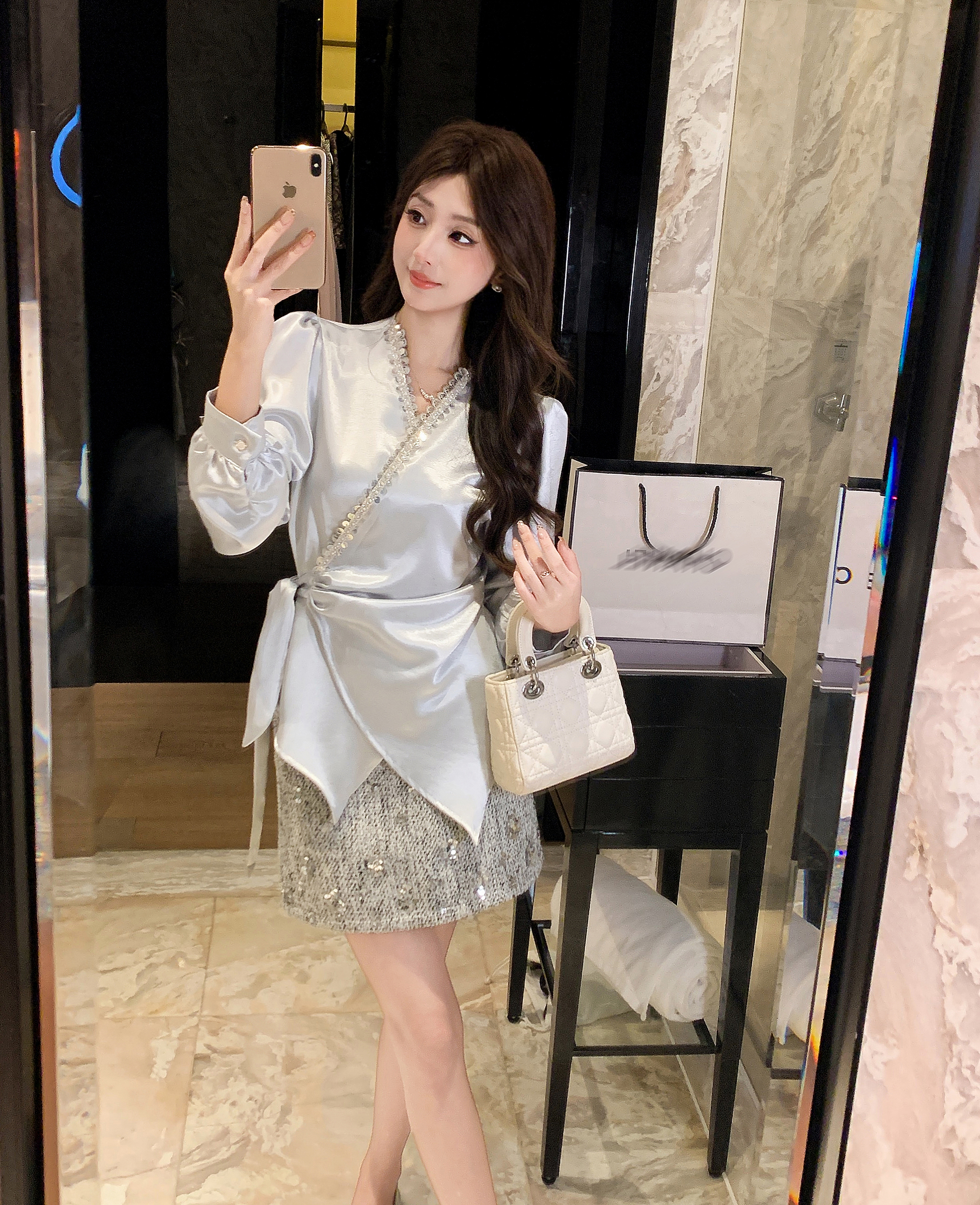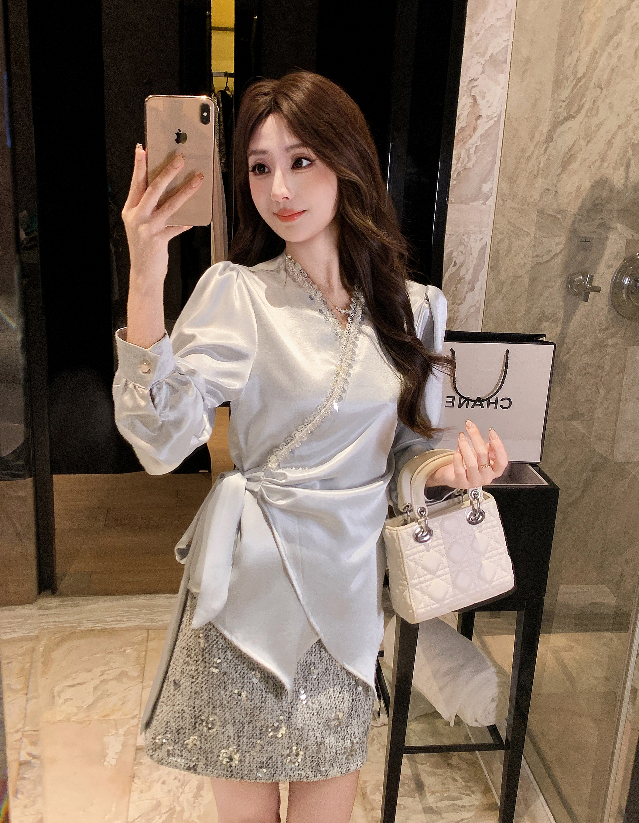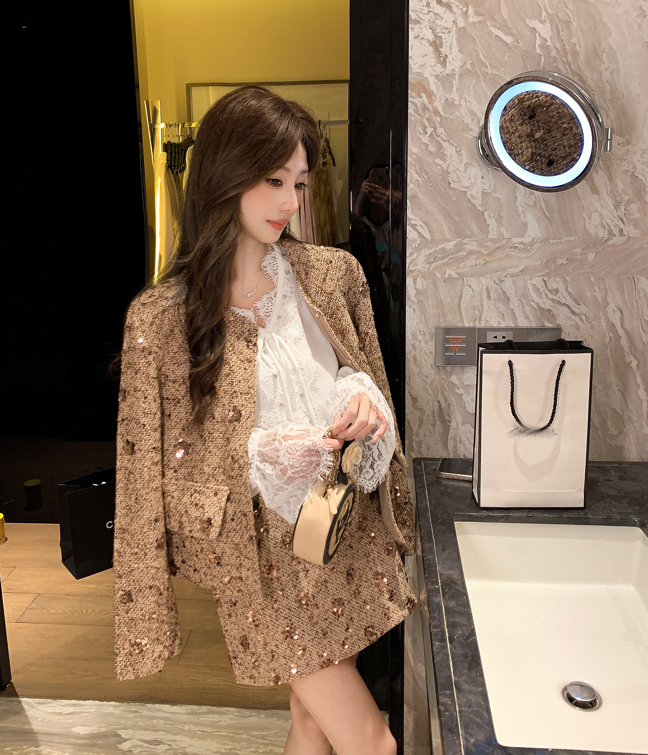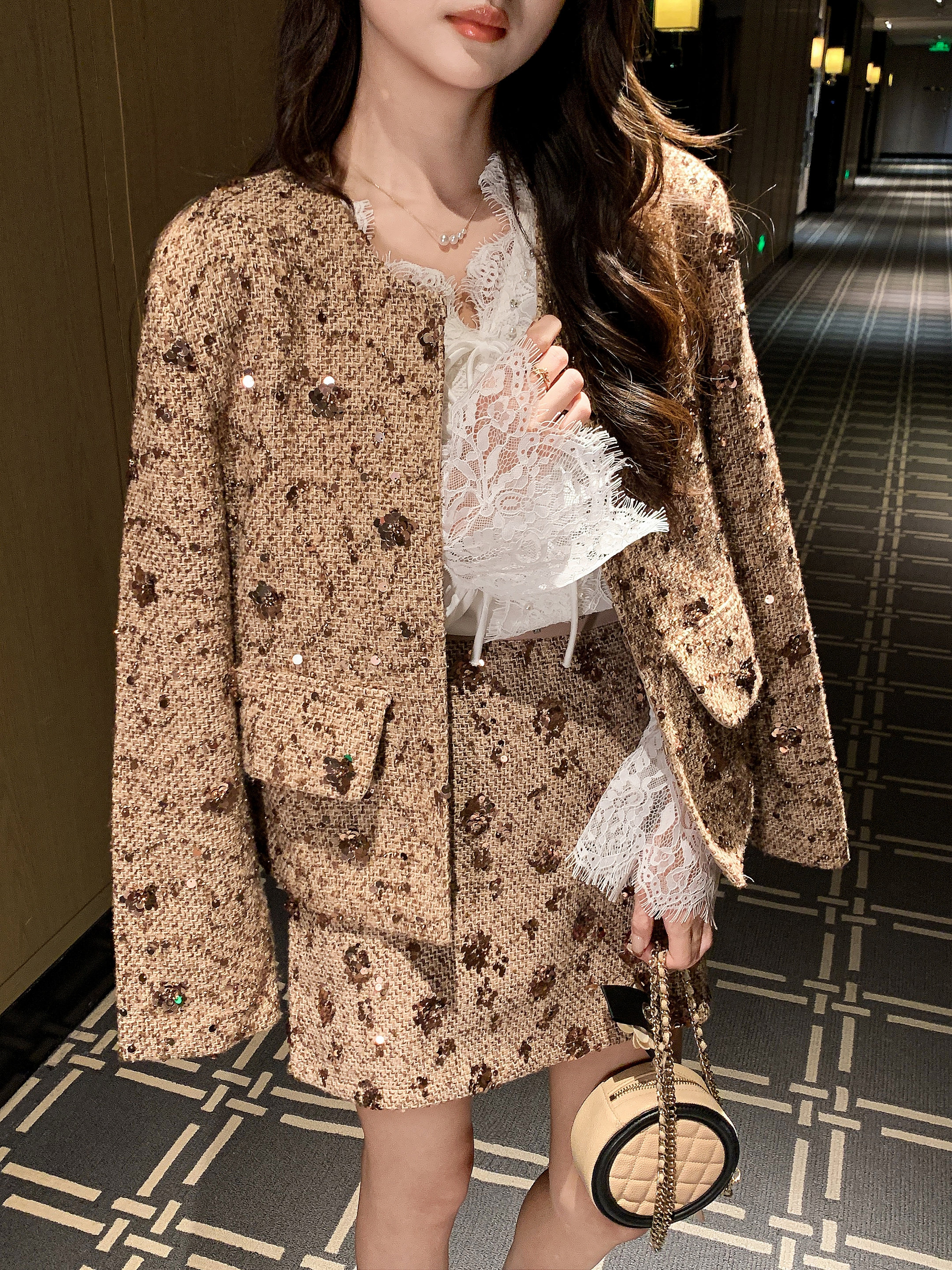 张心子【焦糖邂逅】千金感小香风亮片半身裙 U2412050