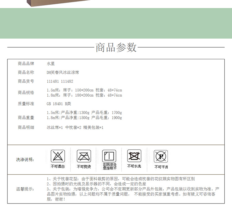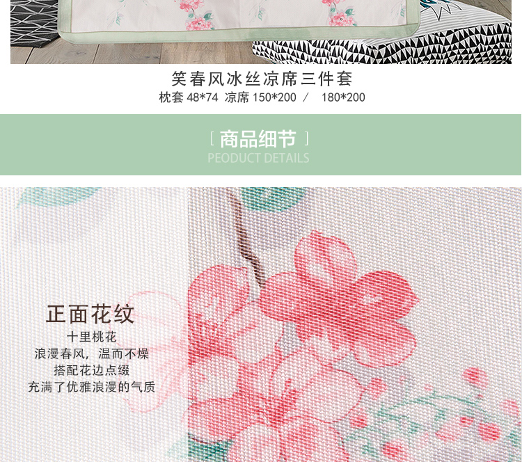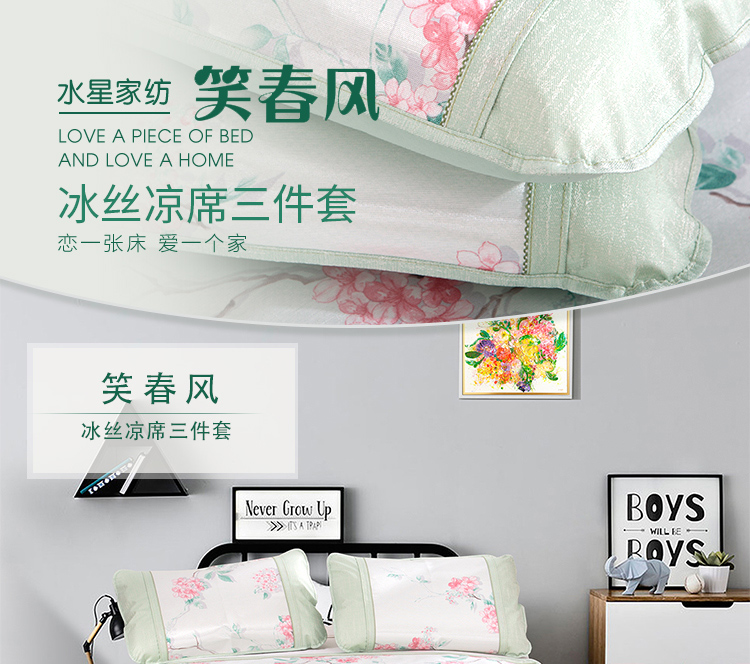 水星家纺 笑春风冰丝凉席三件套