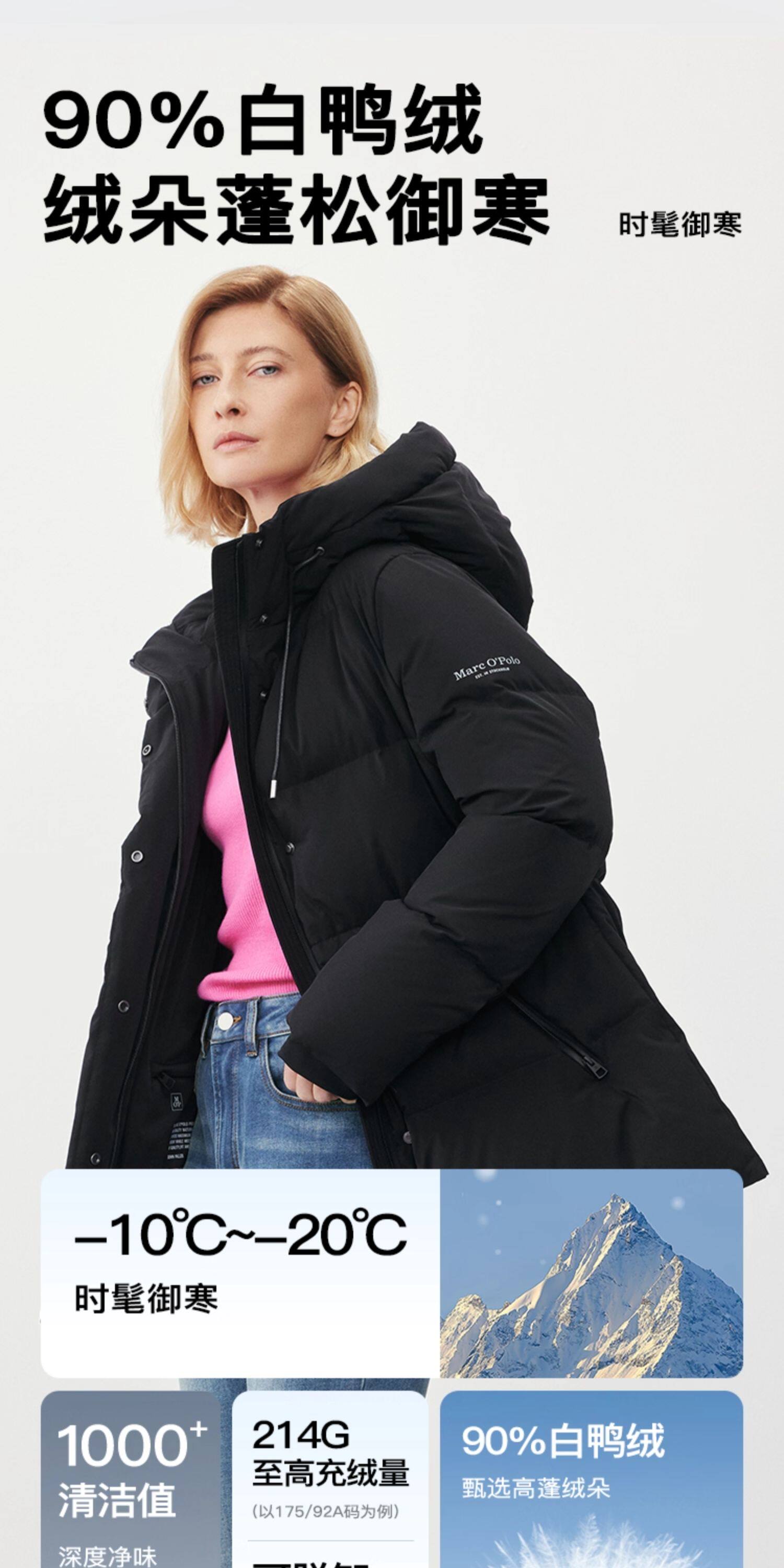 【蒋梦婕同款】Marc O'Polo/MOP冬新款时尚连帽长款羽绒服外套女