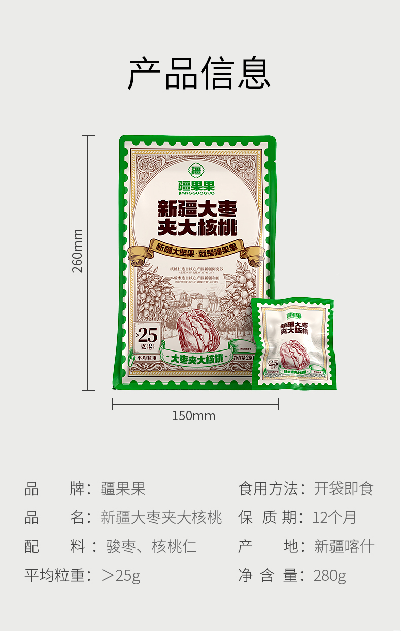 新疆大枣夹大核桃 280g/包 疆果果 大坚果