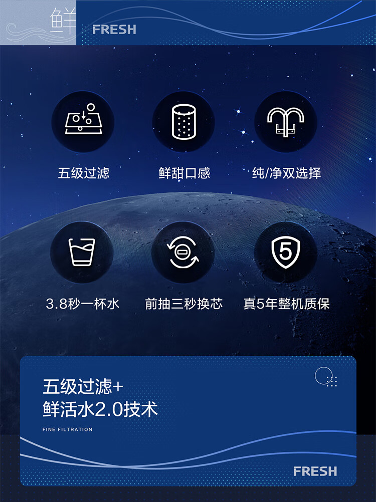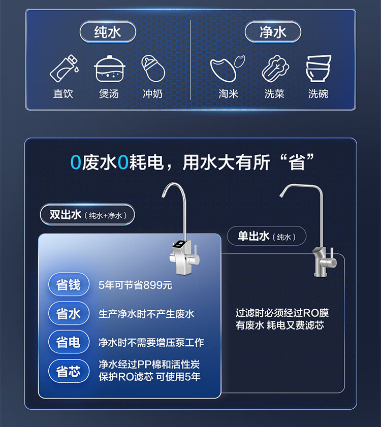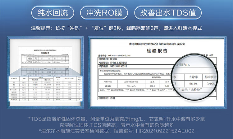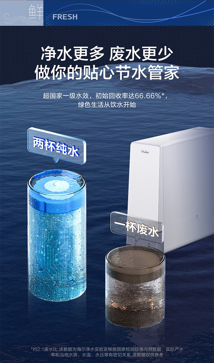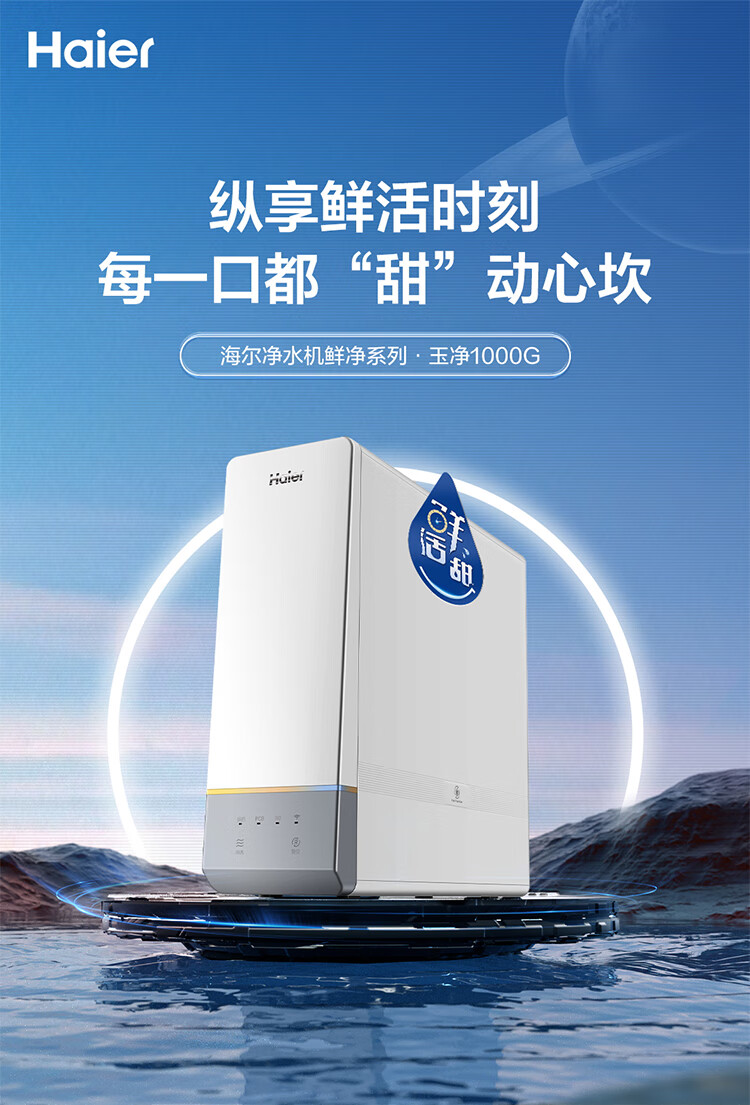 海尔玉净鲜活水净水器家用净水机1000G大通量双出水厨下式直饮净水机自来水过滤器HRO10H11-2U1