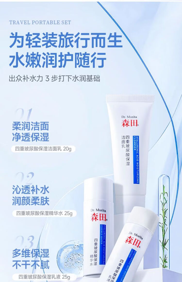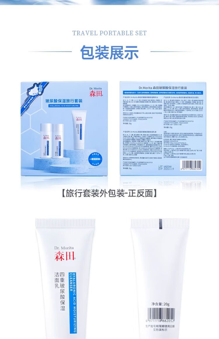 森田玻尿酸保湿旅行套装(20g+25g+25g)/盒