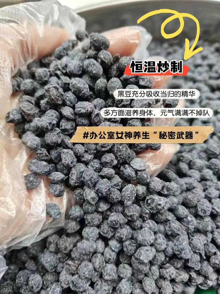 比起市面上的普通炒黑豆 咱们工艺虽然耗时耗力⌛ 但能让药效更好地渗透到豆芯里 而且性质更温和、0添加🚫 吃多了也不会胃胀难受上火🔥 真正吃得到、吸收好、没负担