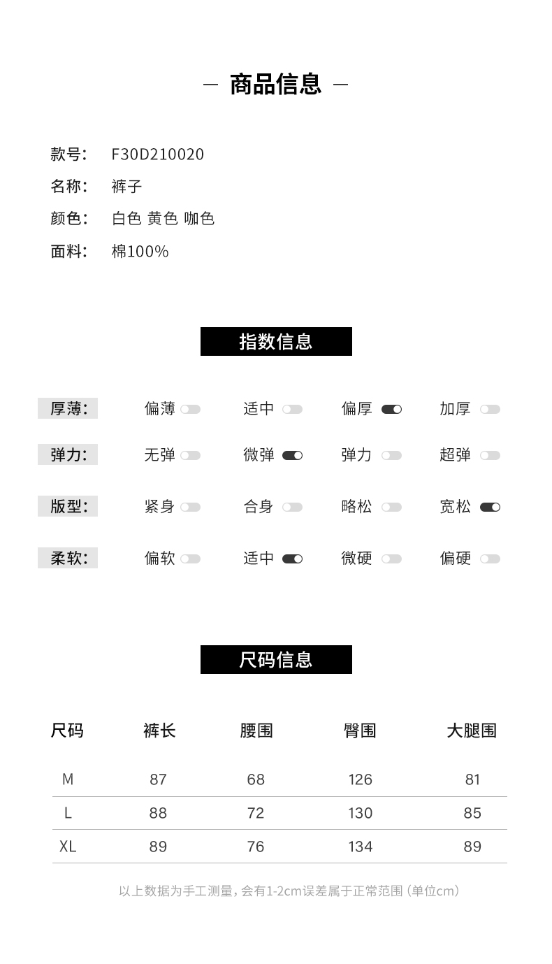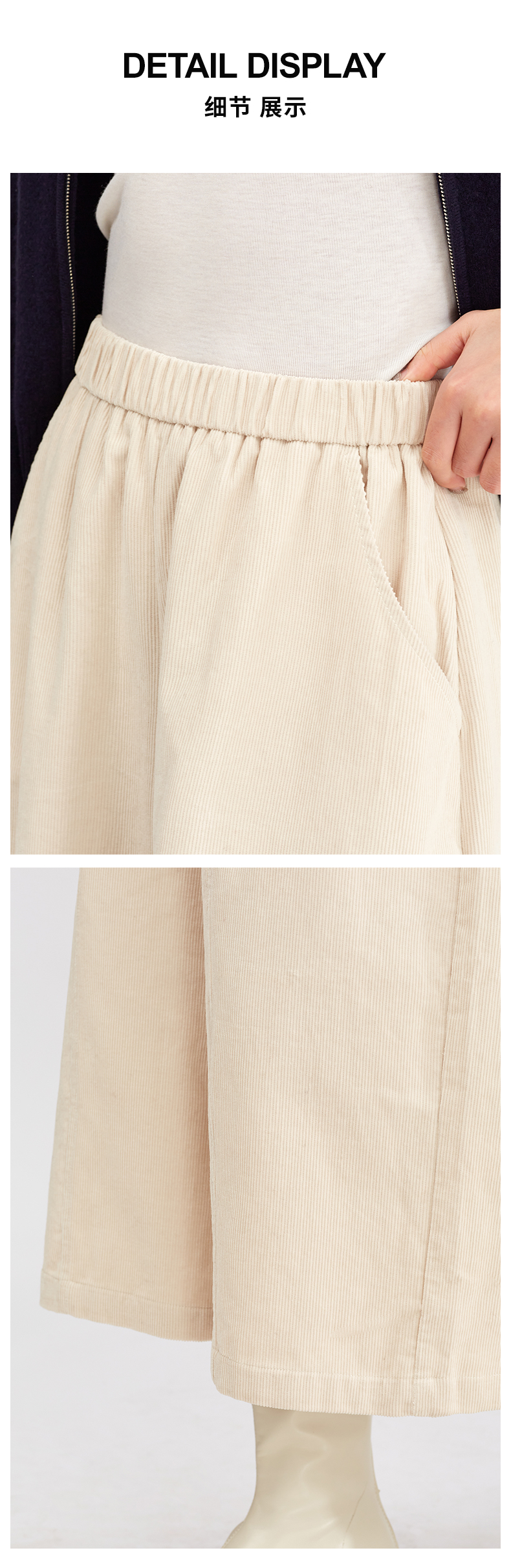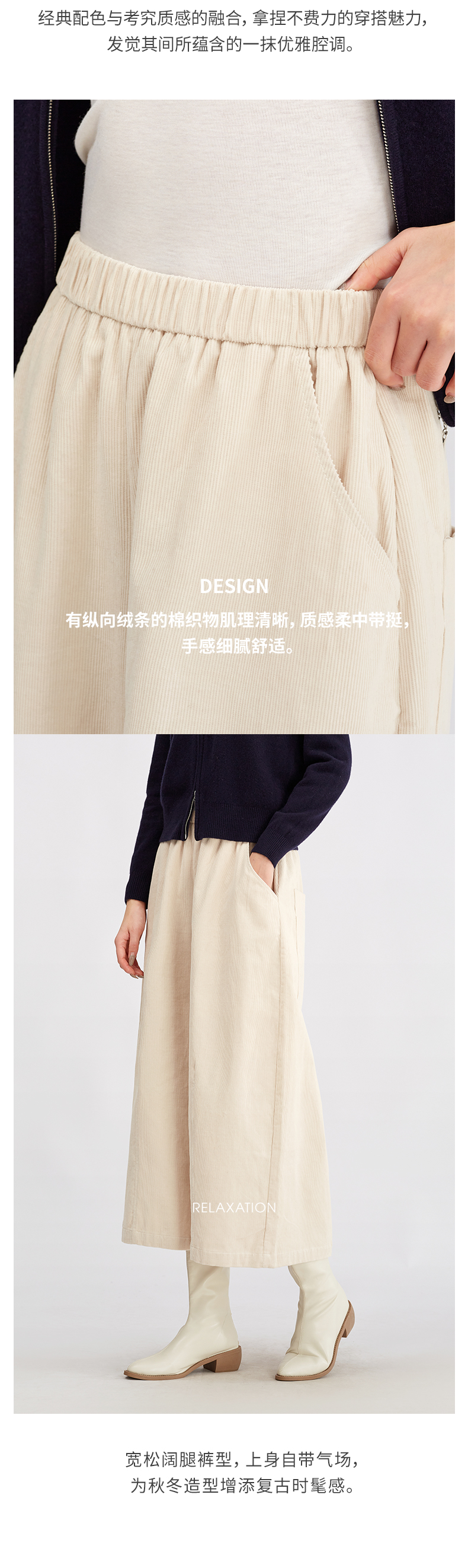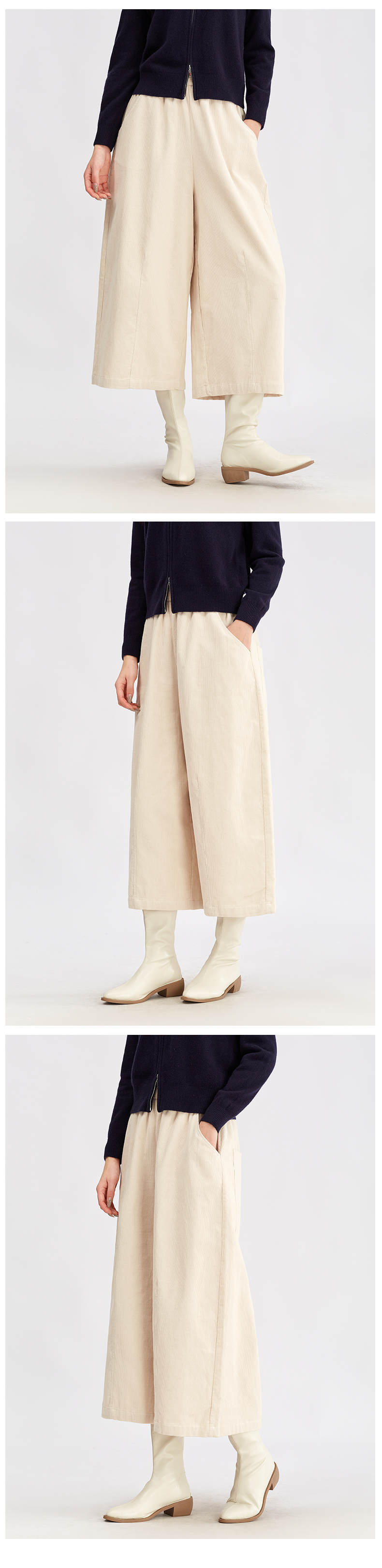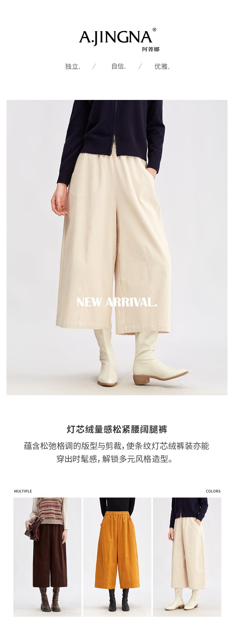 【松弛格调】阿菁娜灯芯绒量感松紧腰休闲阔腿裤F30D210020