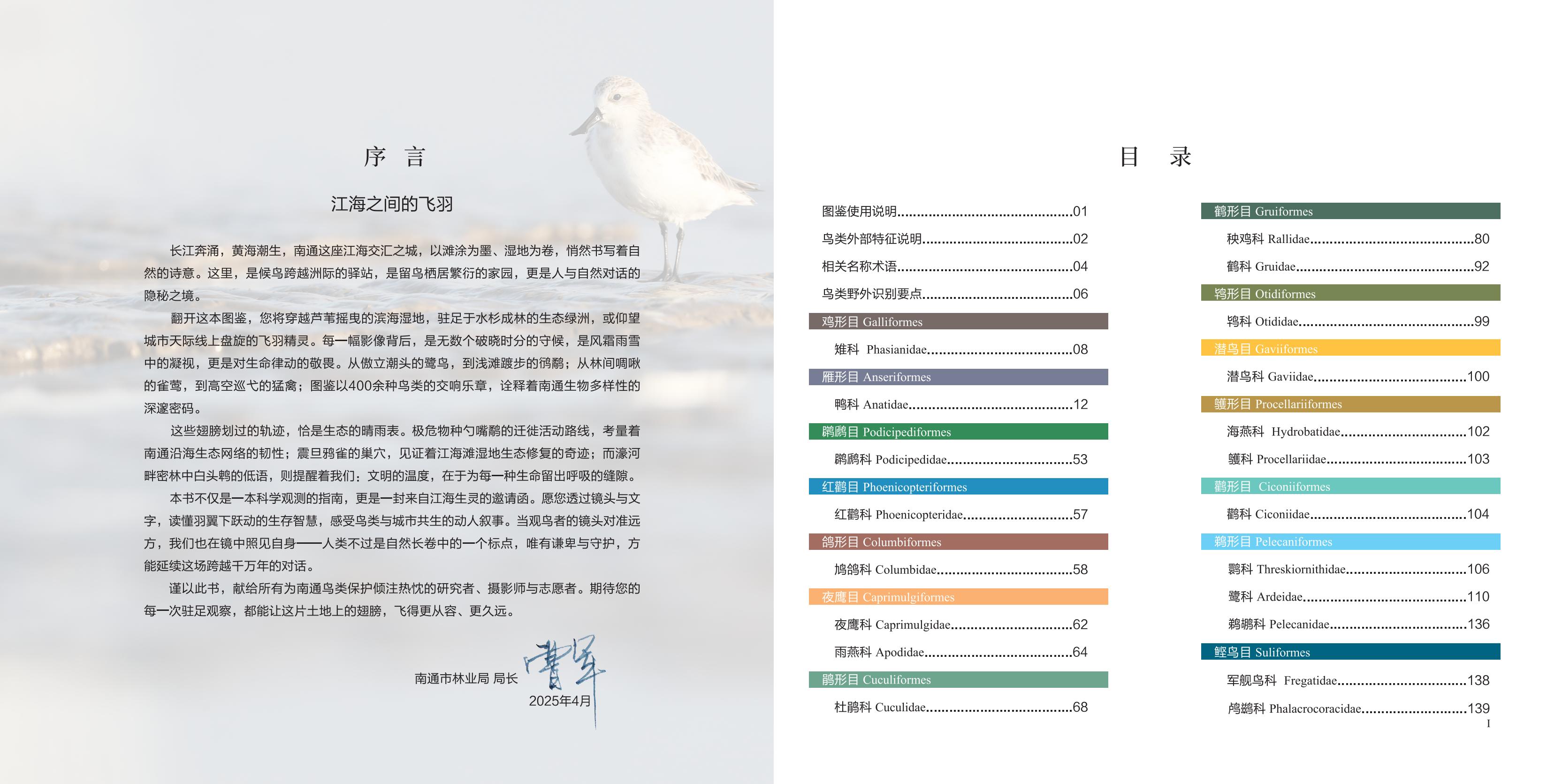 南通地处北亚热带季风区,气候温和,四季分明,雨量丰沛,为野生鸟类的生存繁衍提供了优越的自然条件。该地区植被繁茂,食物饵料丰富,是南北向候鸟迁徙东线的必经之地。根据近几年的调查并结合历史记录,南通地区具有鸟类425种,本图鉴系统介绍了南通地区野生鸟类近400种,包括鸟类的分类地区、保护状况、体长、识别特征、栖息地生境及习性等详细信息。图鉴凝聚了南通地区众多鸟类摄影爱好者和专业人士的心血,收集了大量鸟类的照片,记录了南通地区众多野生鸟类的生动影像。图鉴的出版不仅为鸟类研究者提供了宝贵的资料,也为广大观鸟爱好者和普通市民认识鸟类、了解鸟类、保护鸟类搭建了一座桥梁。