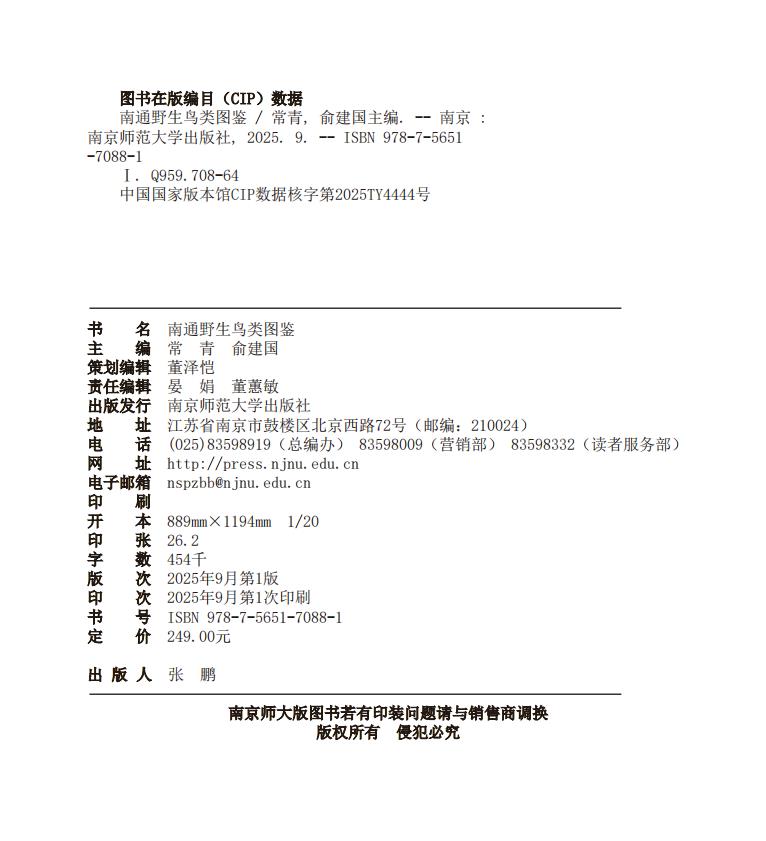 南通野生鸟类图鉴 常青,俞建国 主编 南京师范大学出版社 正版书籍