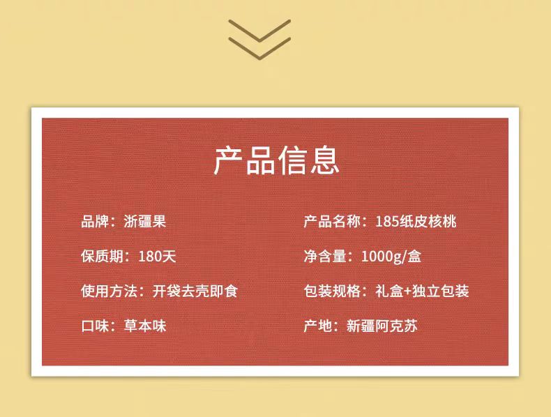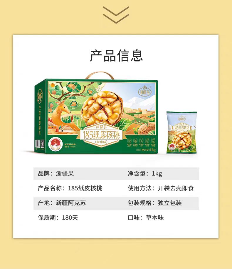 【甄选】浙疆果新疆阿克苏185纸皮核桃手剥即开恒温烘烤草本味1kg礼盒装