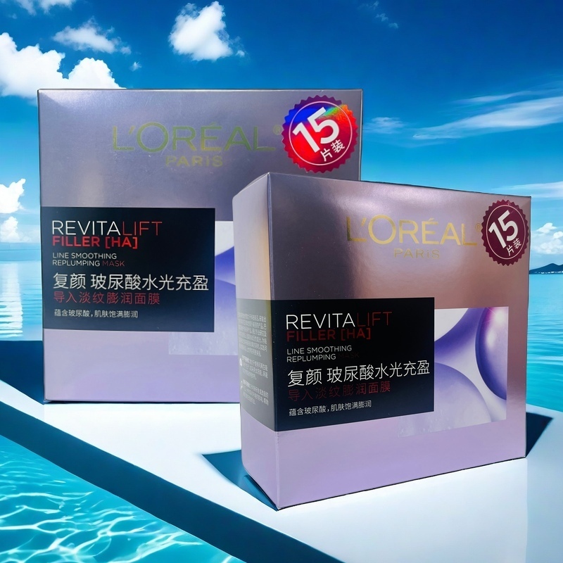 欧莱雅-复颜玻尿酸水光充盈导入淡纹膨润面膜15PC