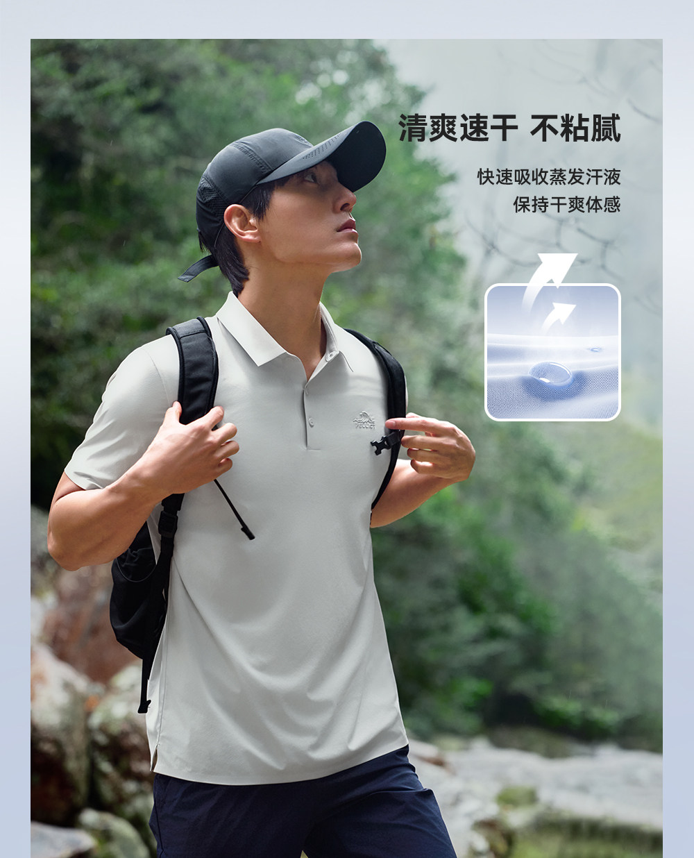 伯希和户外速干短袖T恤男26新款吸湿抑菌防晒POLO衫徒步运动上衣