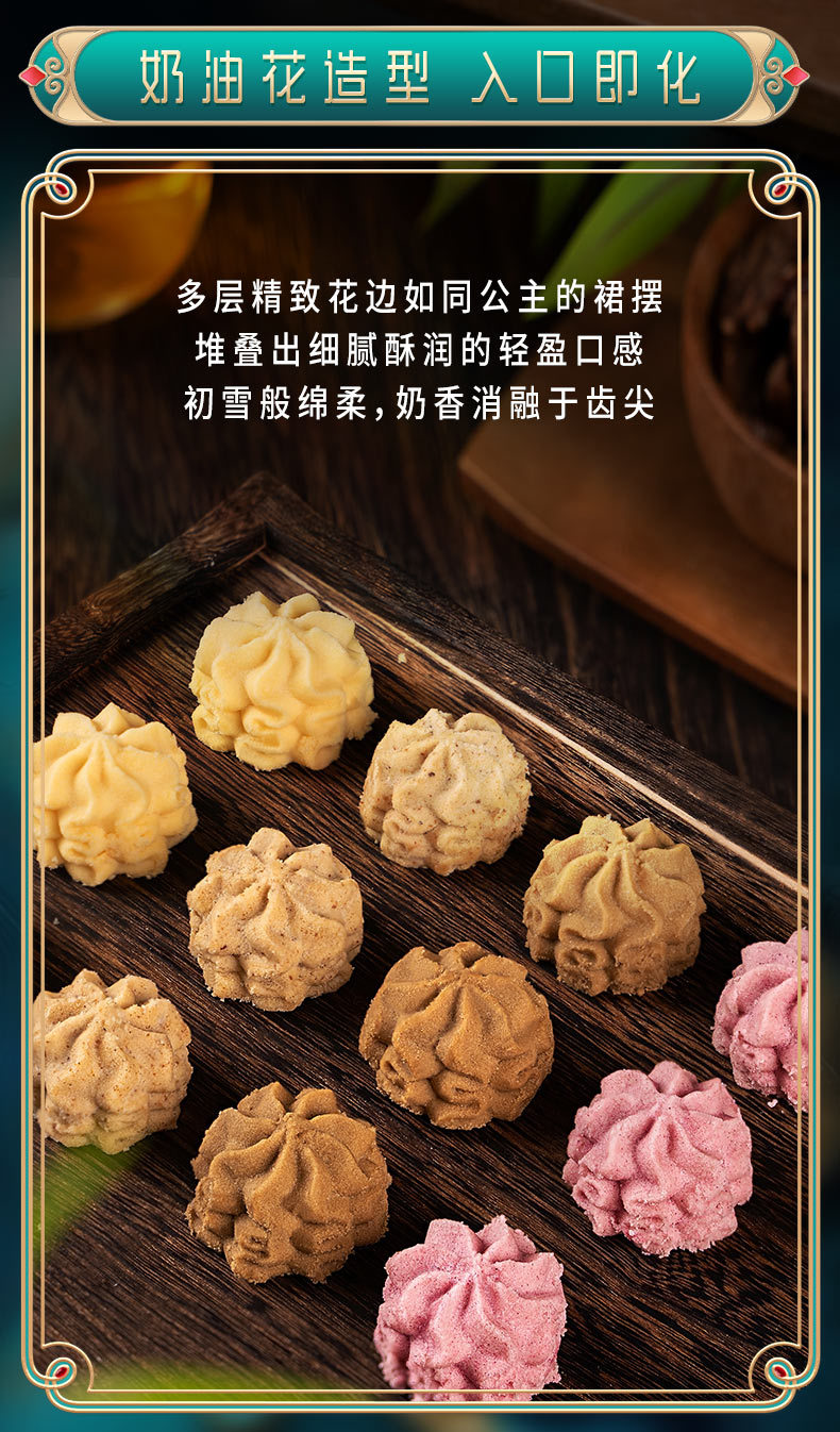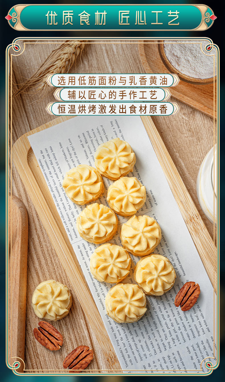 【入口即化,小花曲奇黄油饼干】海盐不甜奶油小花曲奇黄油饼干,经典浓香绵密丝滑,不单独添加配方更安心多口味网红零食QQ