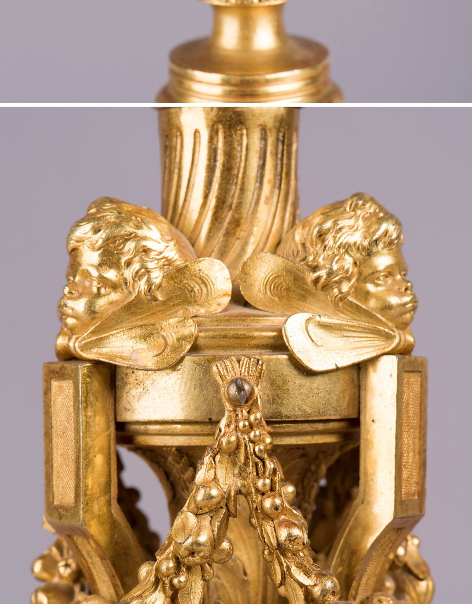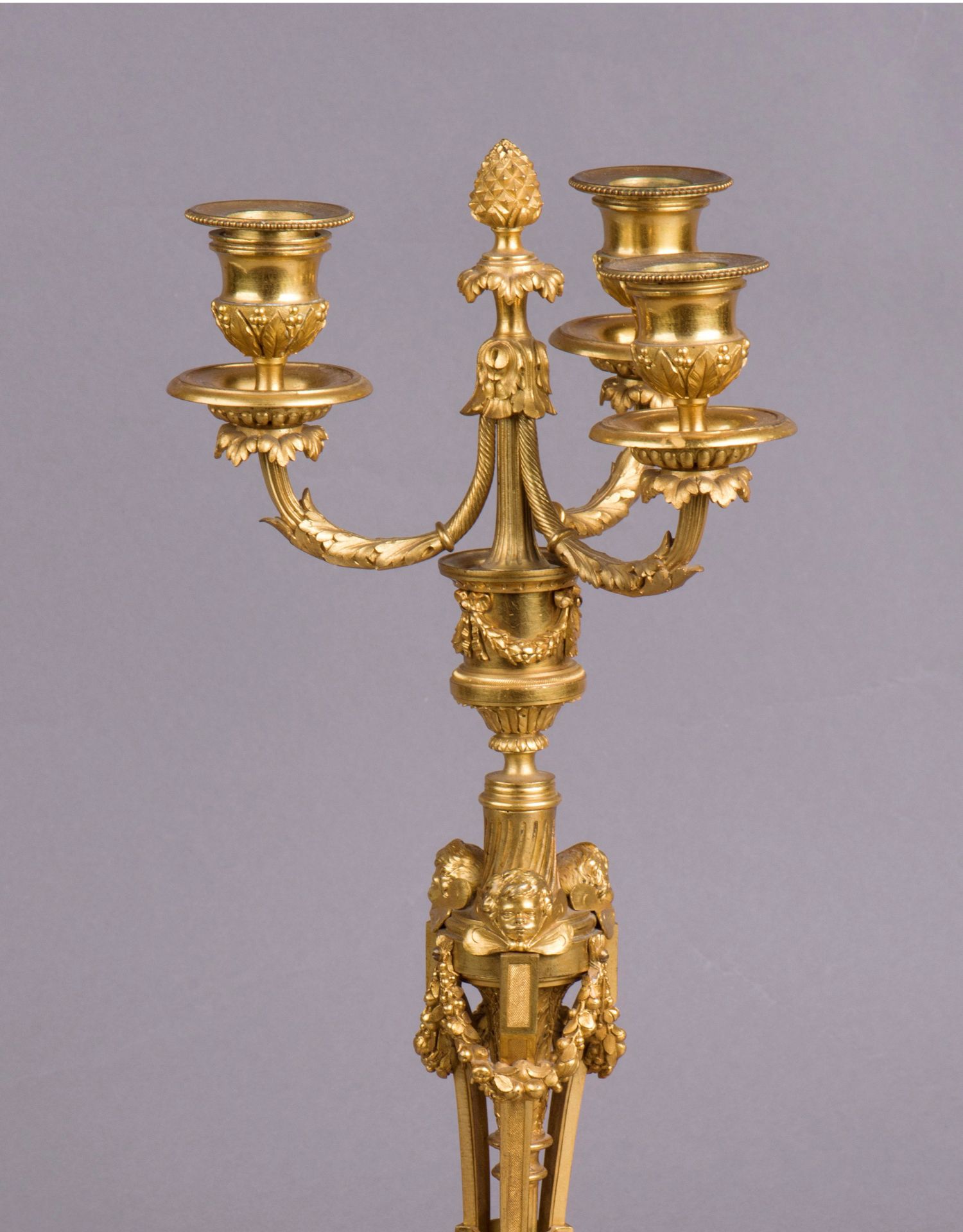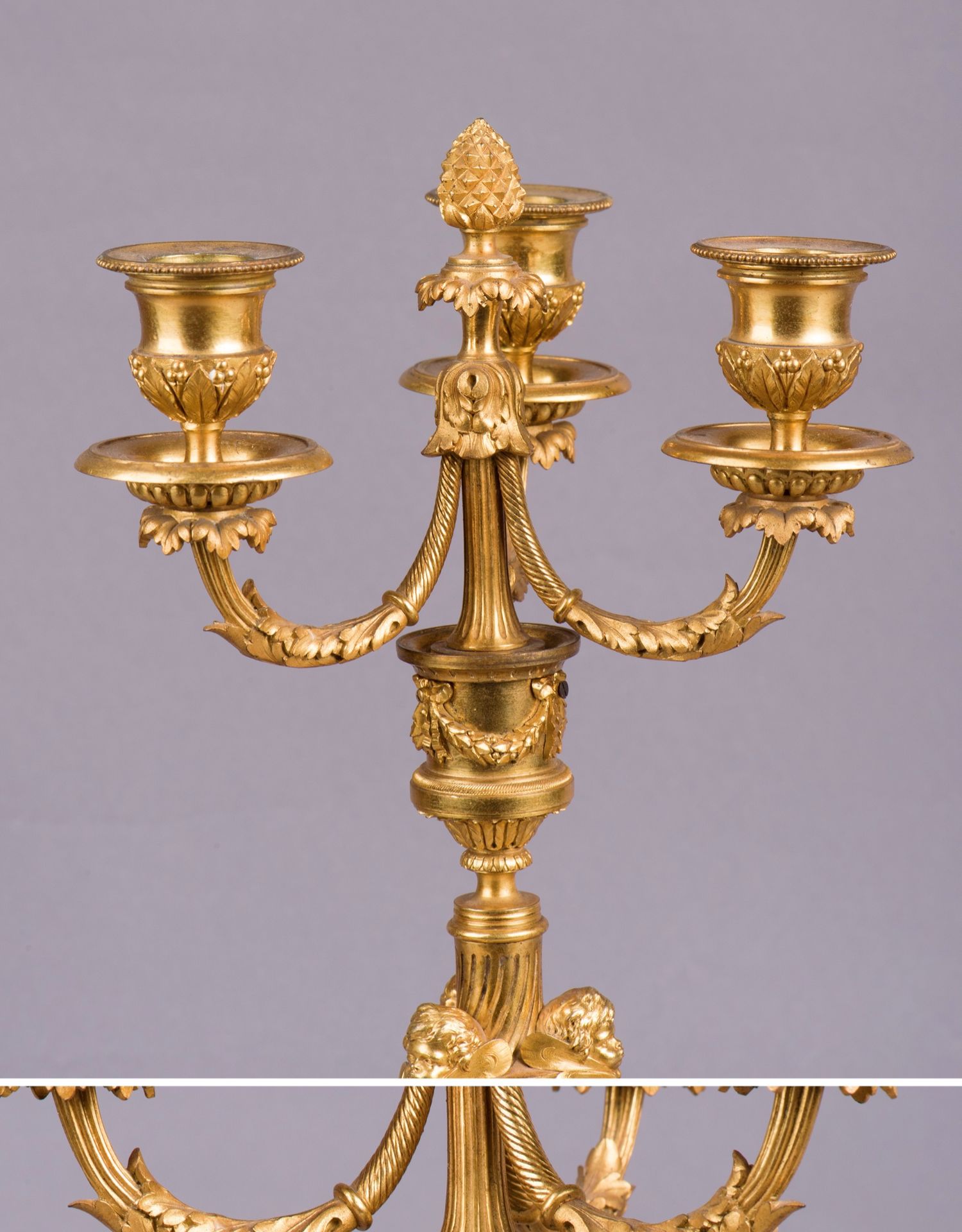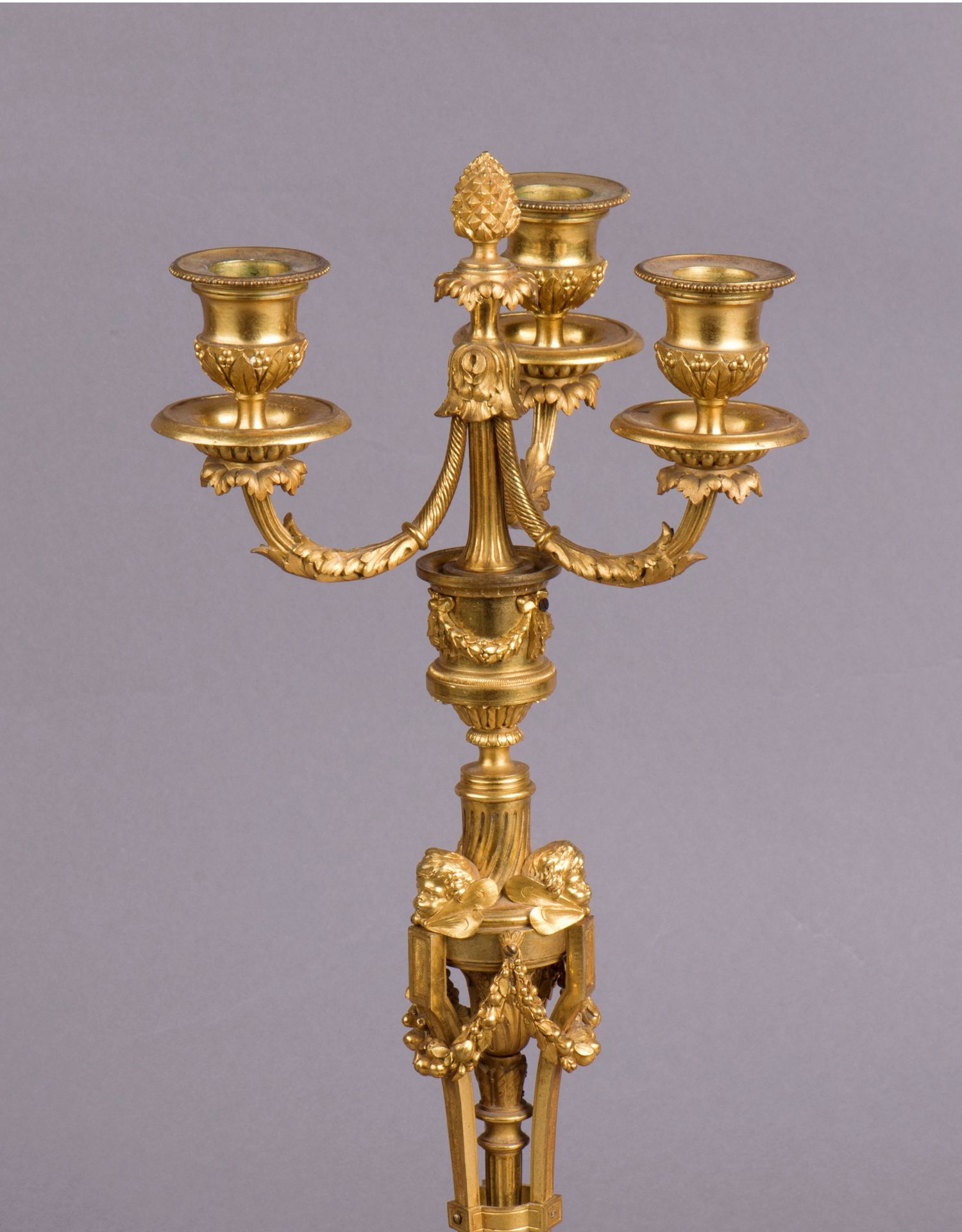 独角鹿西洋古董摆件法国工坊签名路易十六风小天使铜鎏金烛台一对
