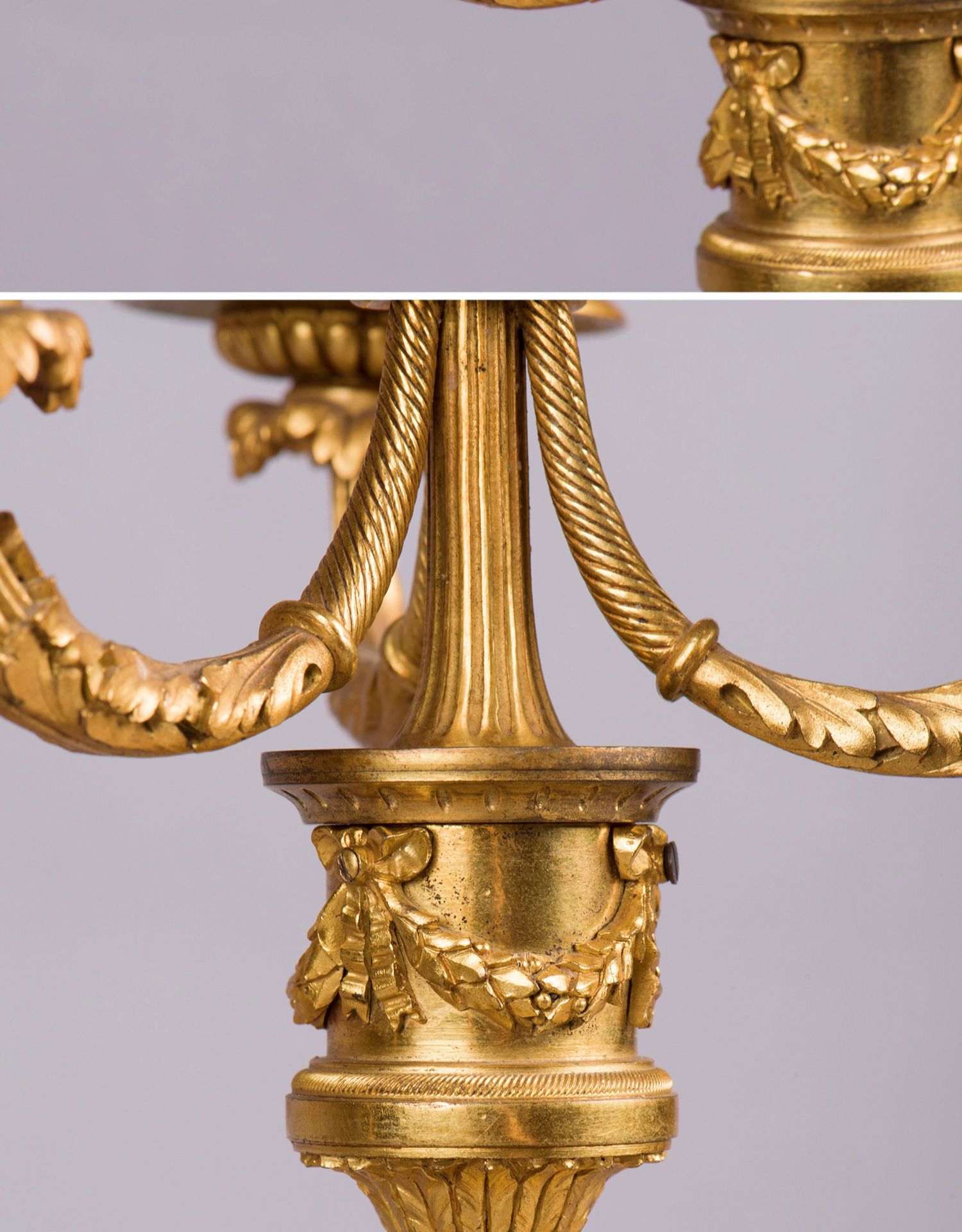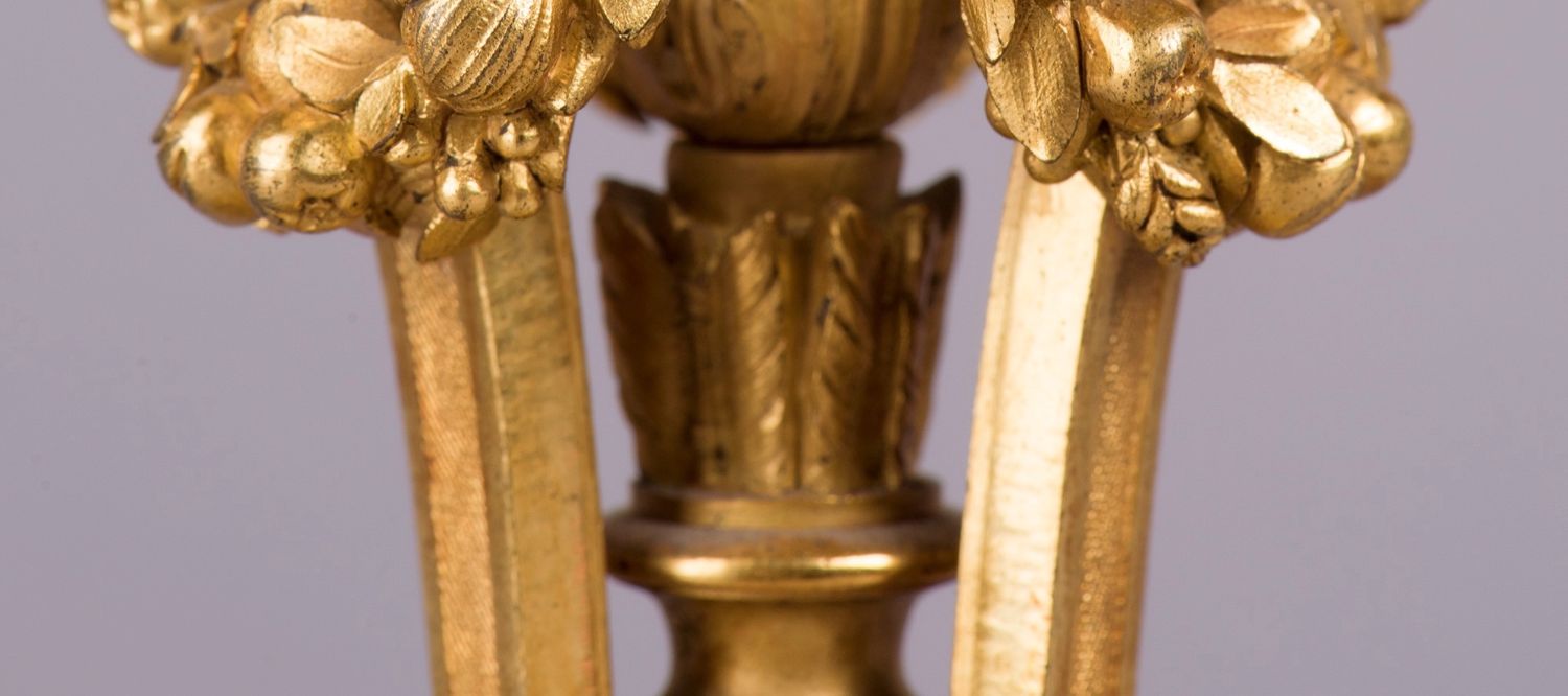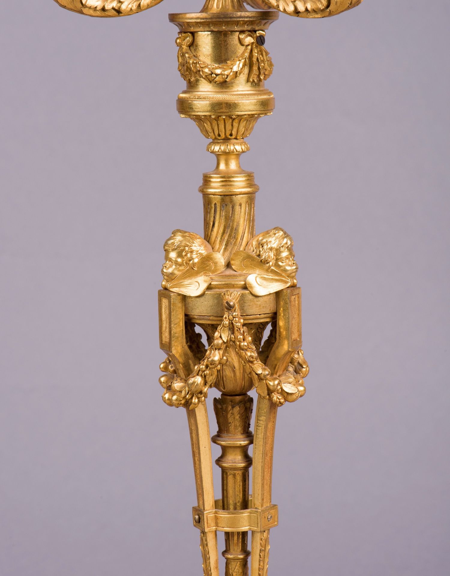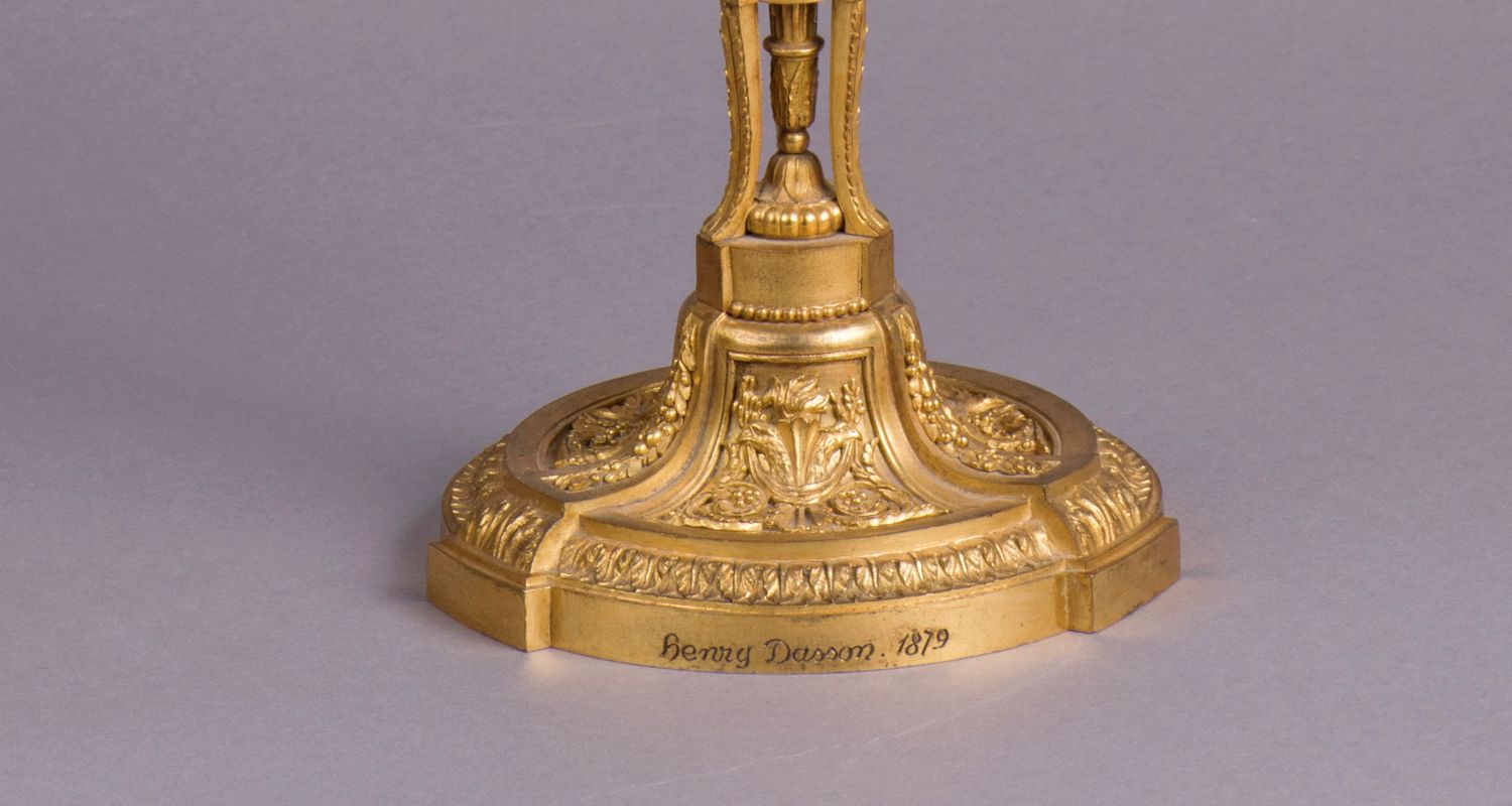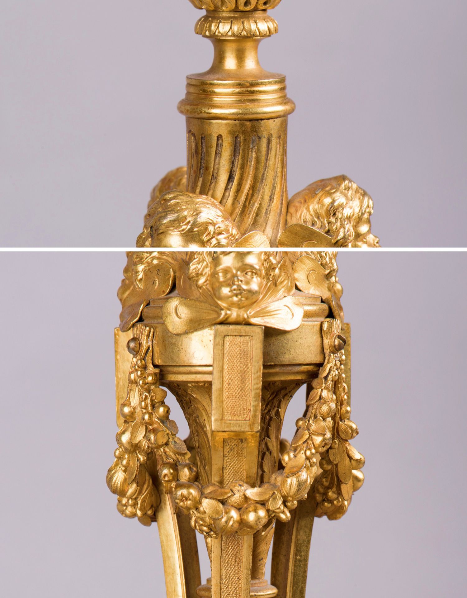 独角鹿西洋古董摆件法国工坊签名路易十六风小天使铜鎏金烛台一对