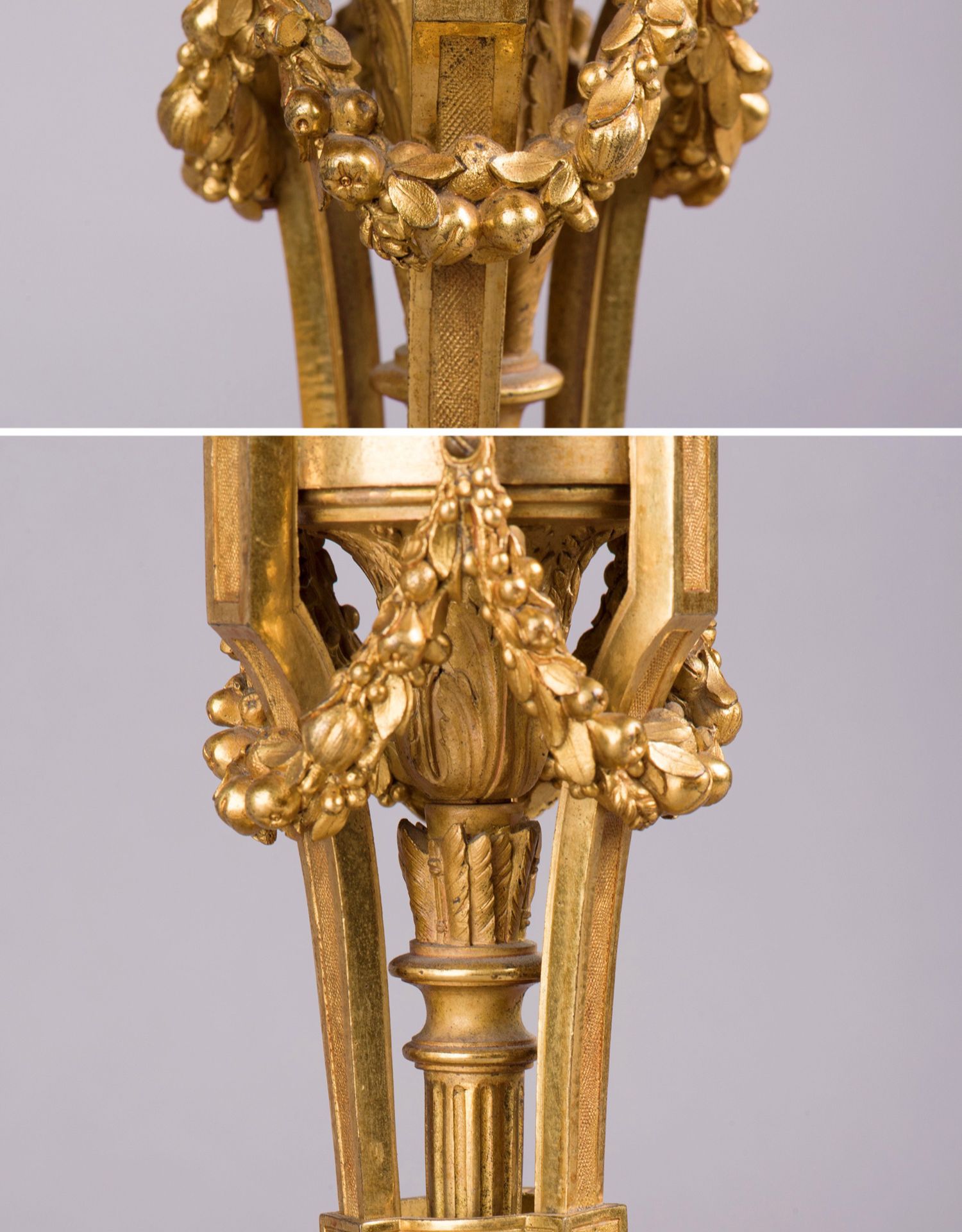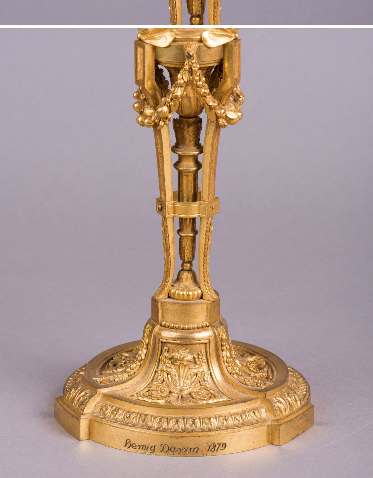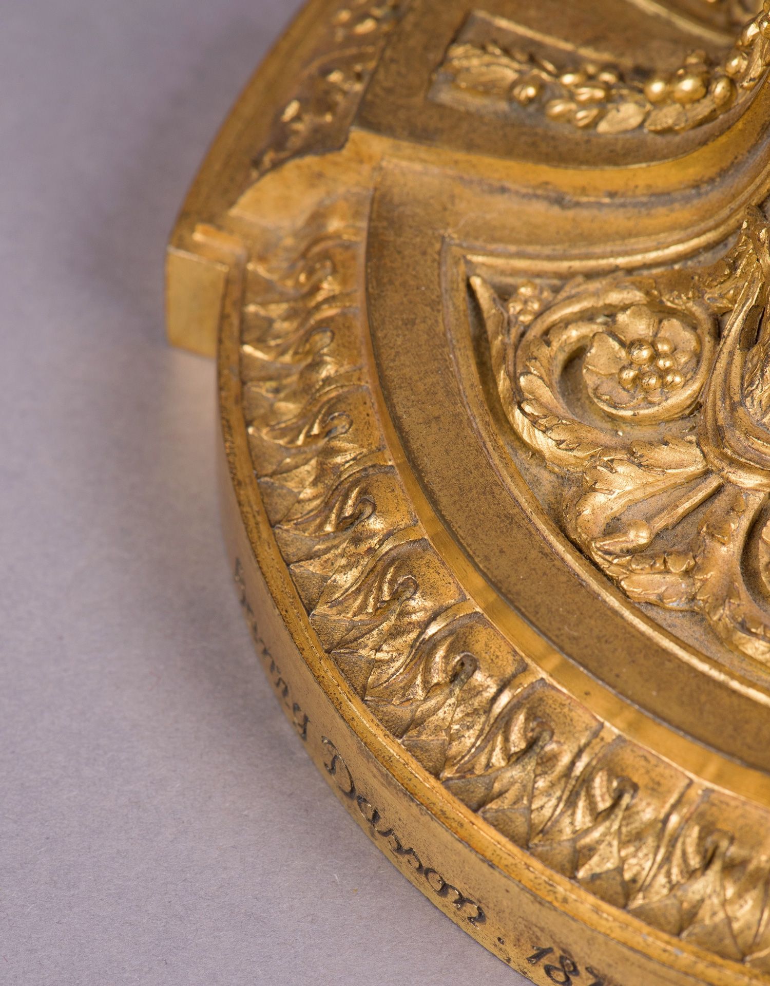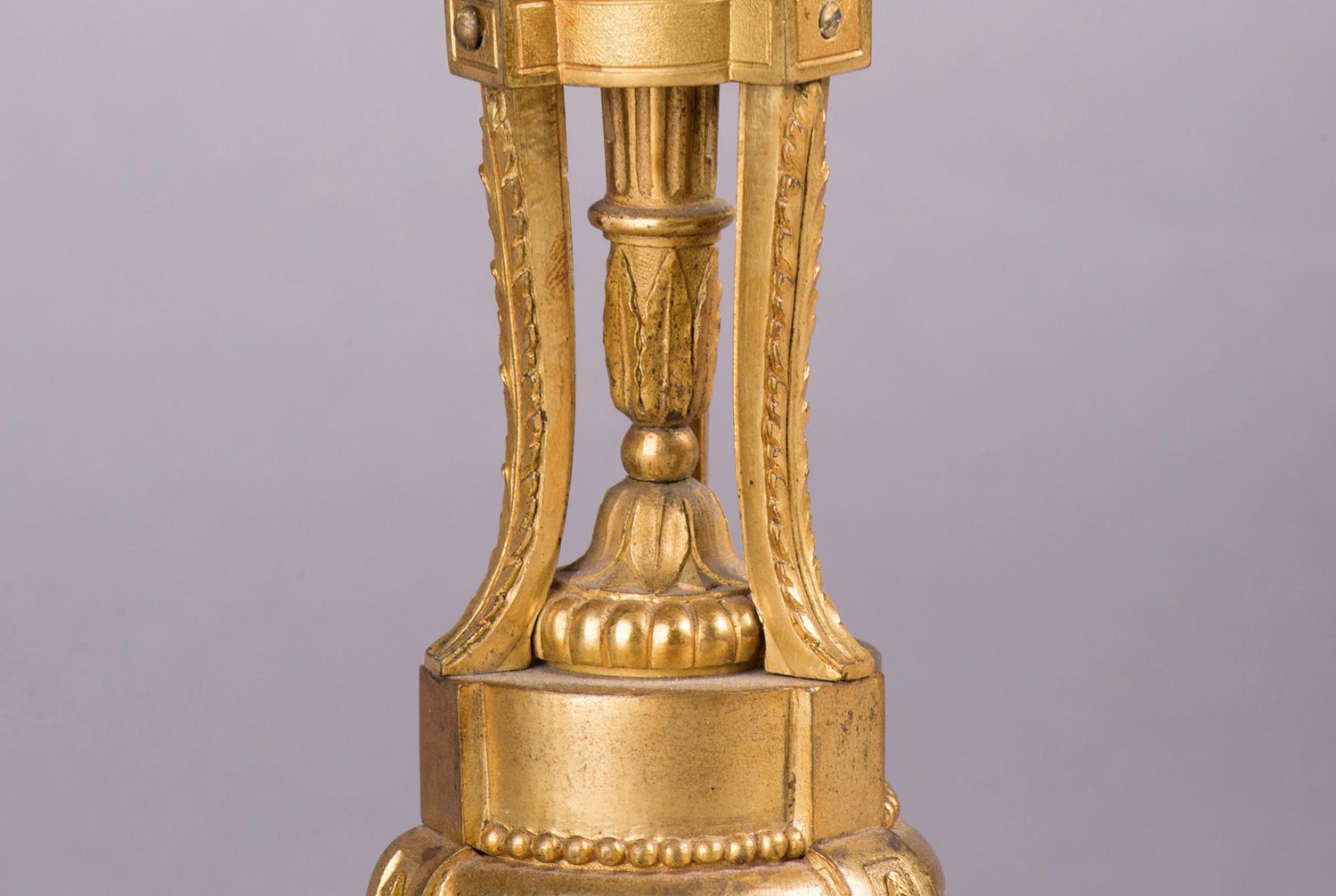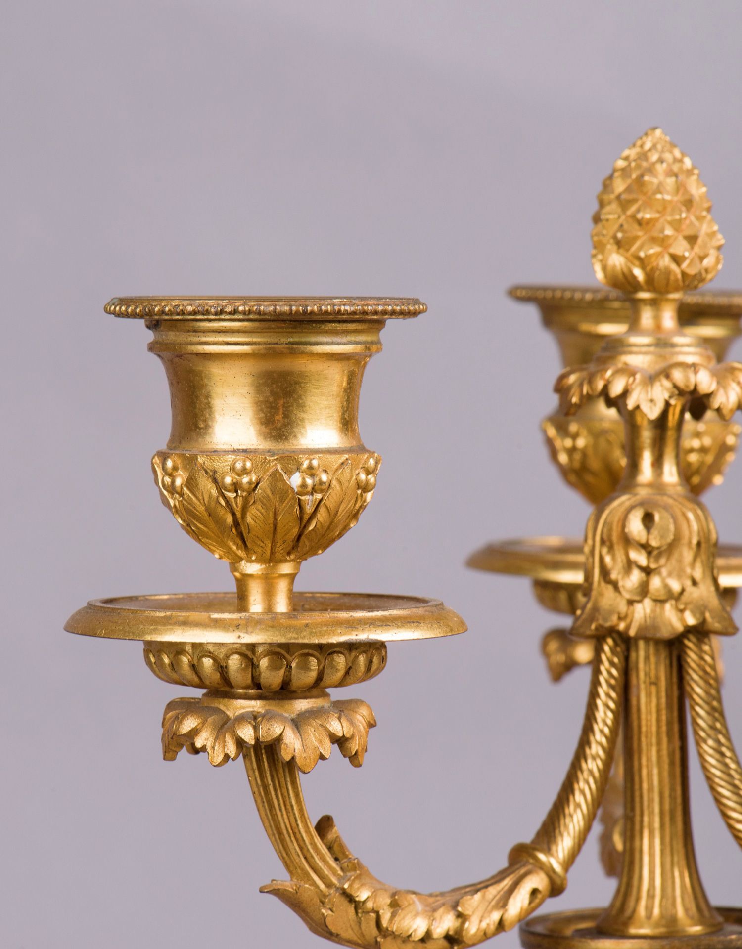 独角鹿西洋古董摆件法国工坊签名路易十六风小天使铜鎏金烛台一对