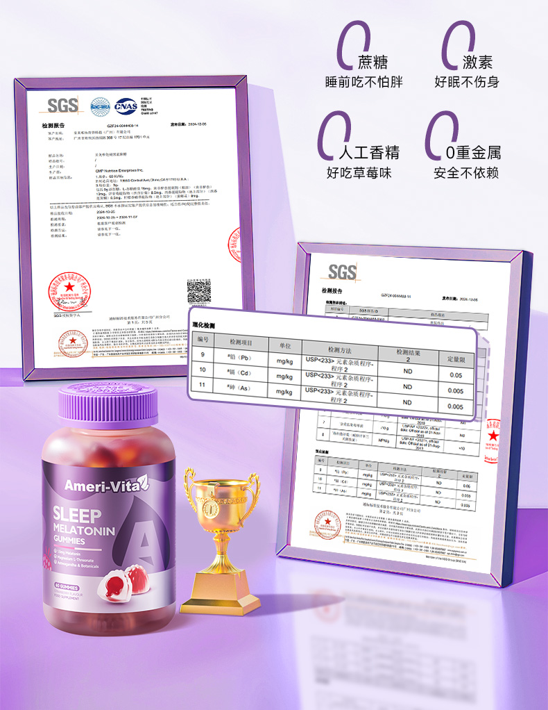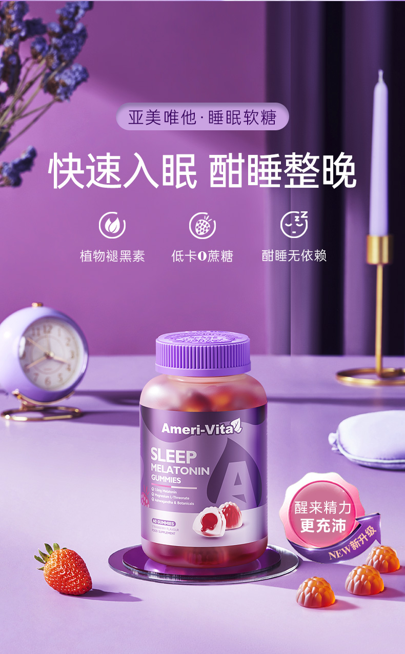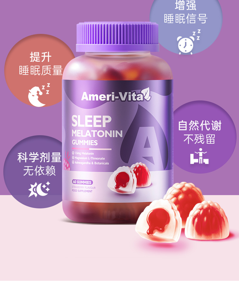 [AMeri vita]亚美唯他 升级版1.5mg褪黑素软糖 60粒/瓶 舒缓解压入睡快