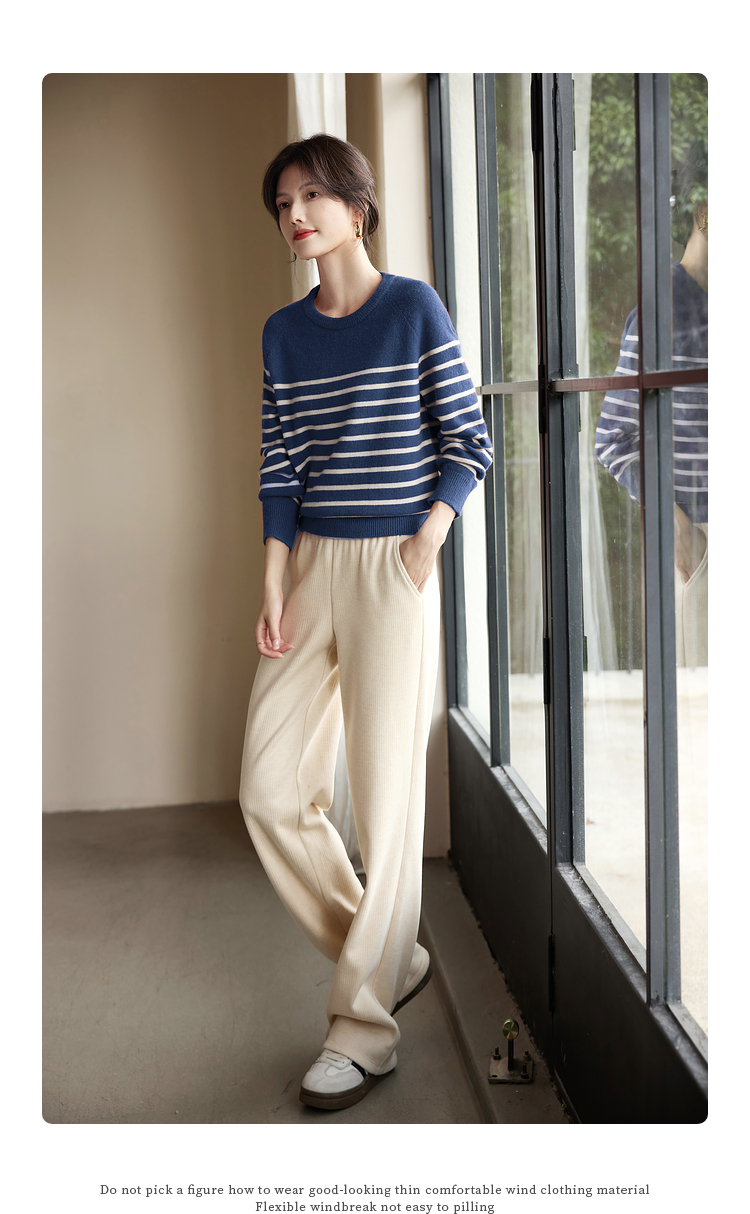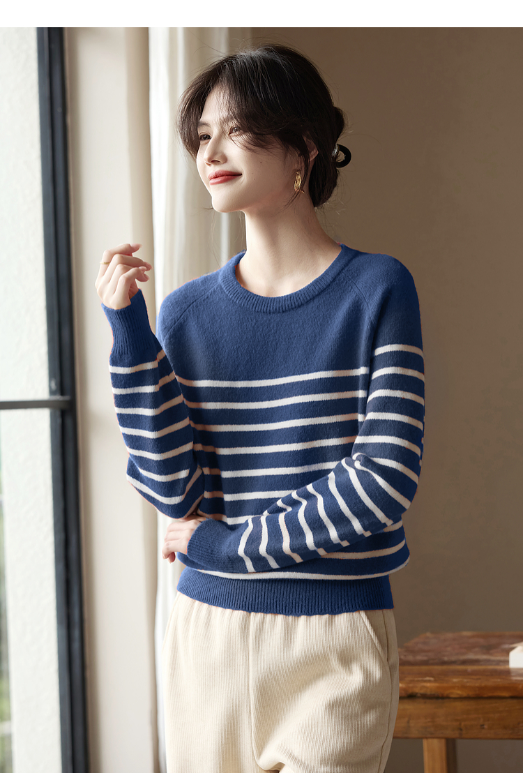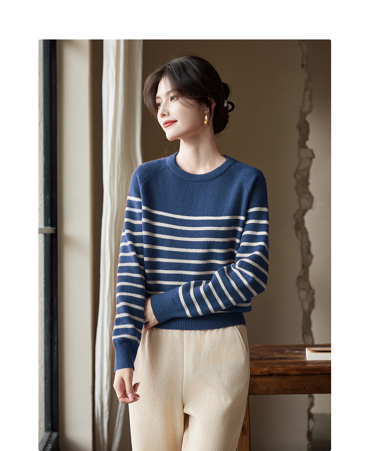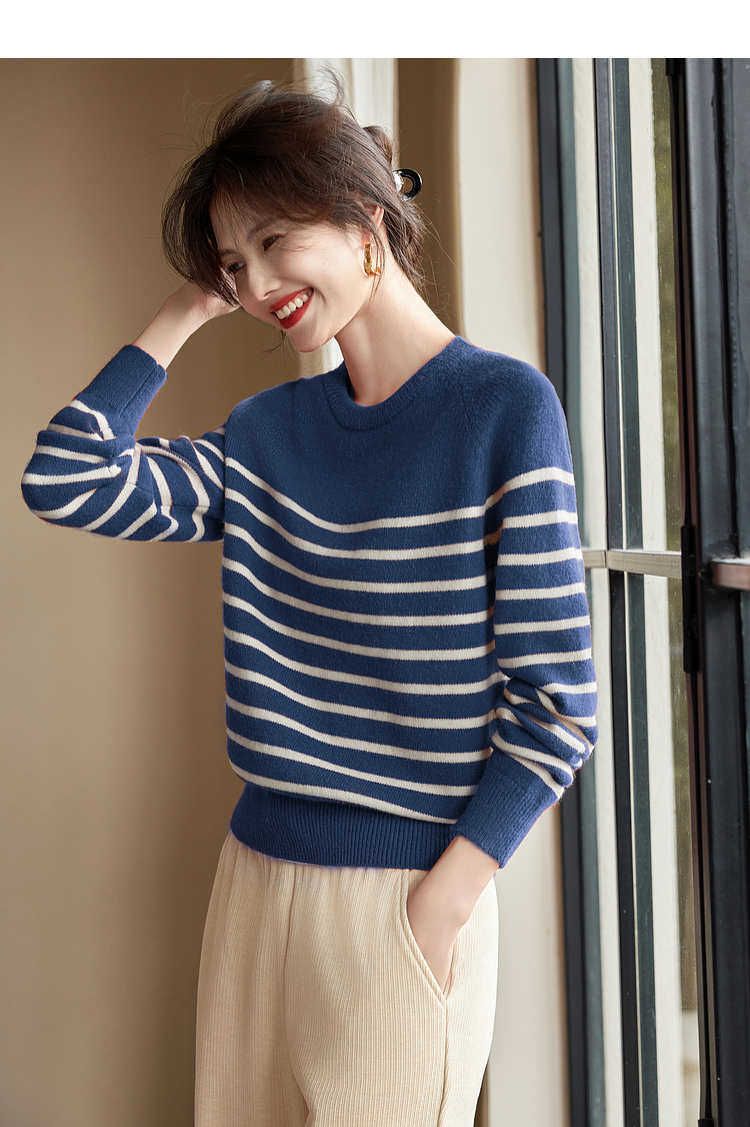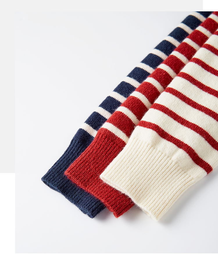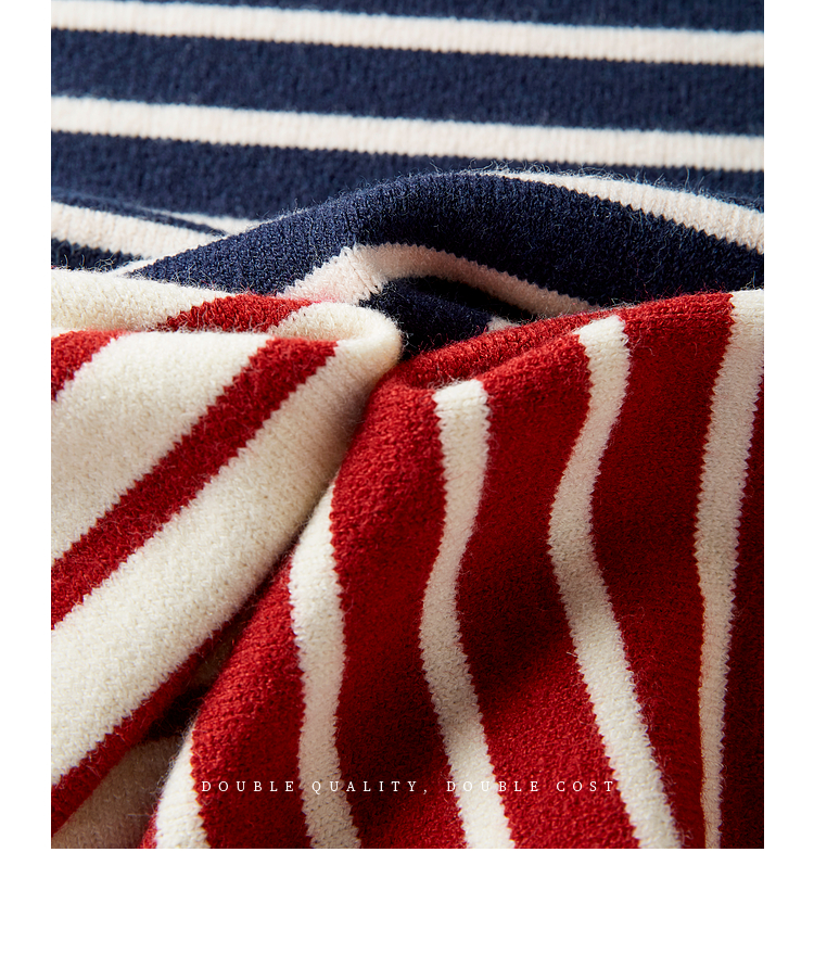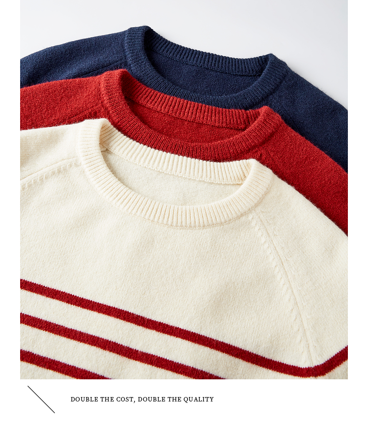 【年终特卖】熙世界红色条纹毛衣女秋冬2025新款慵懒风宽松撞色圆领打底针织衫