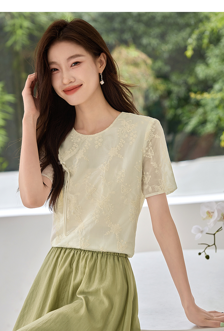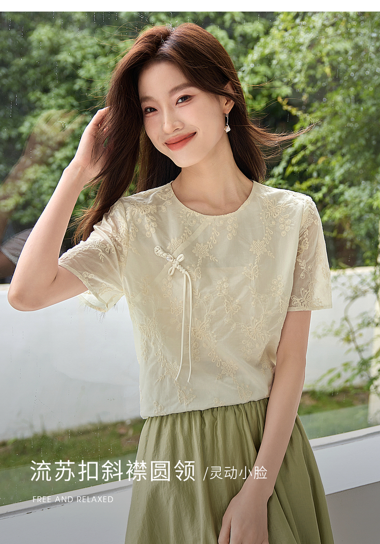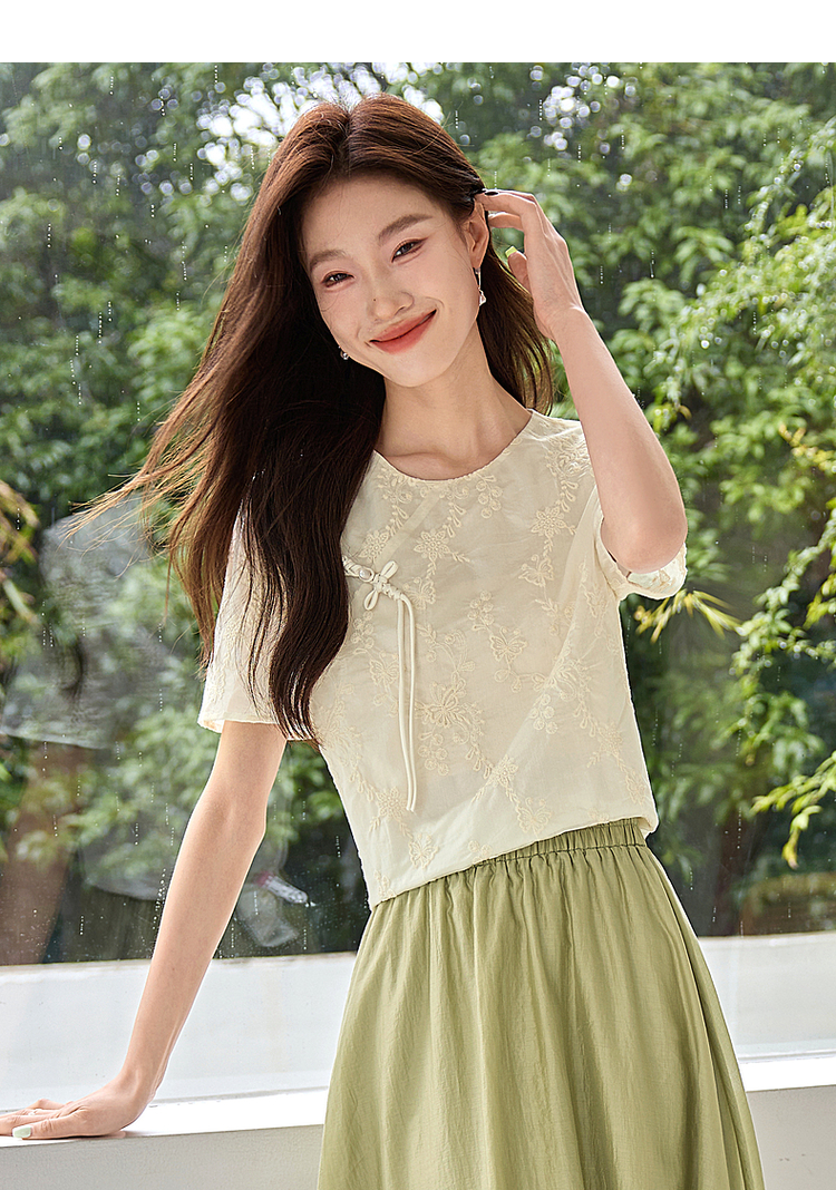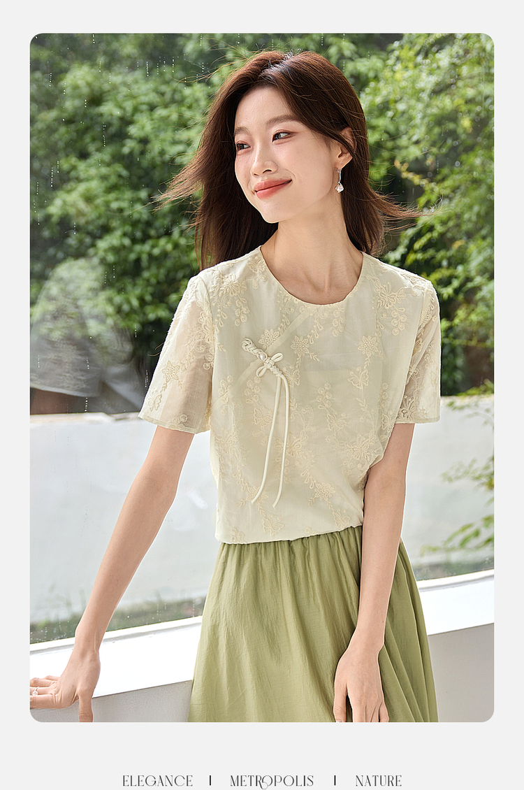 【专属特价】熙世界2025夏装新款莱赛尔上衣新中式国风流苏盘扣斜襟天丝衬衫