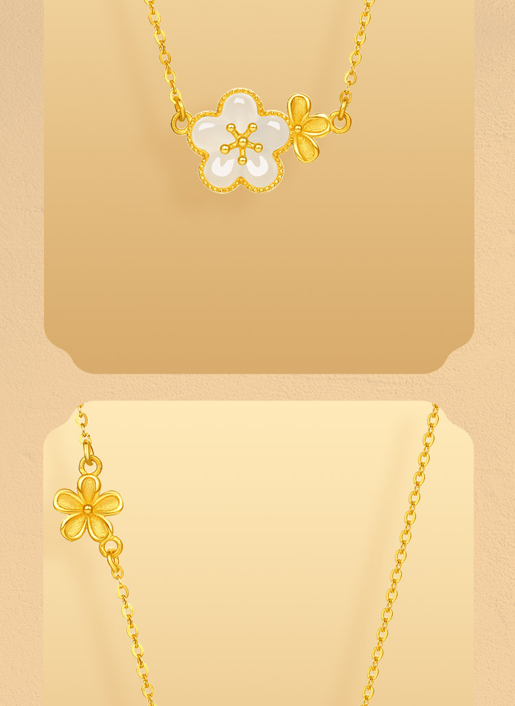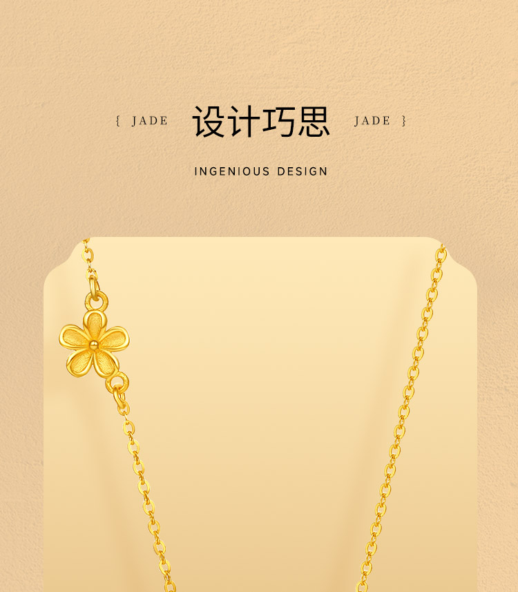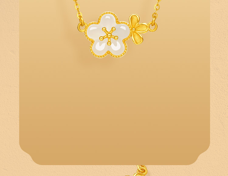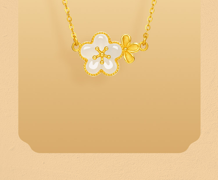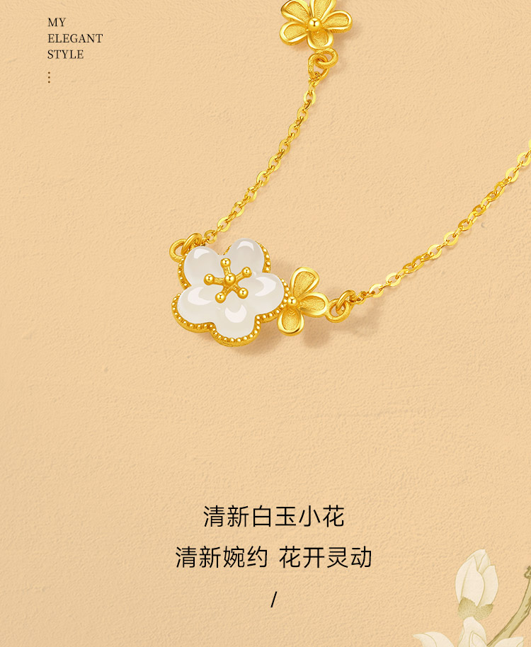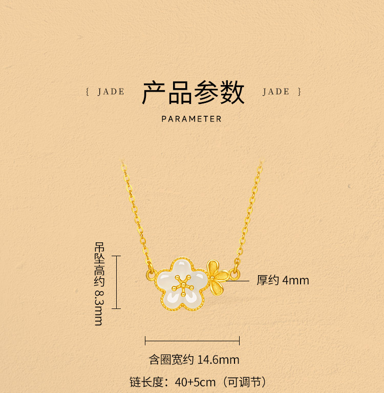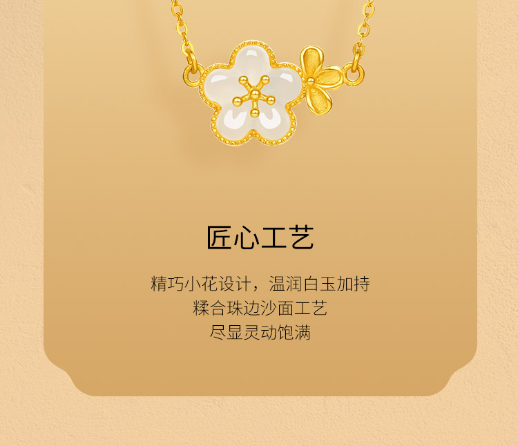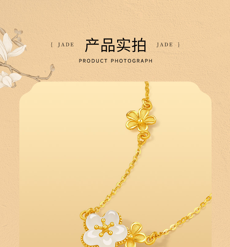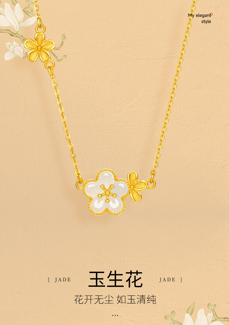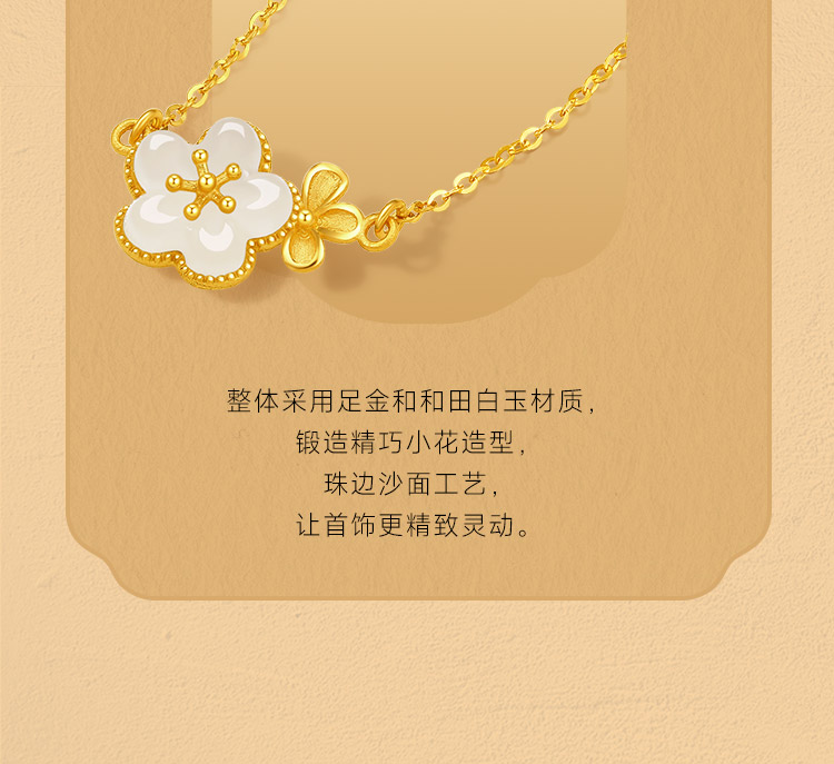周六福黄金和田玉项链足金玉生花链坠金镶玉颈饰官方正品节日礼物