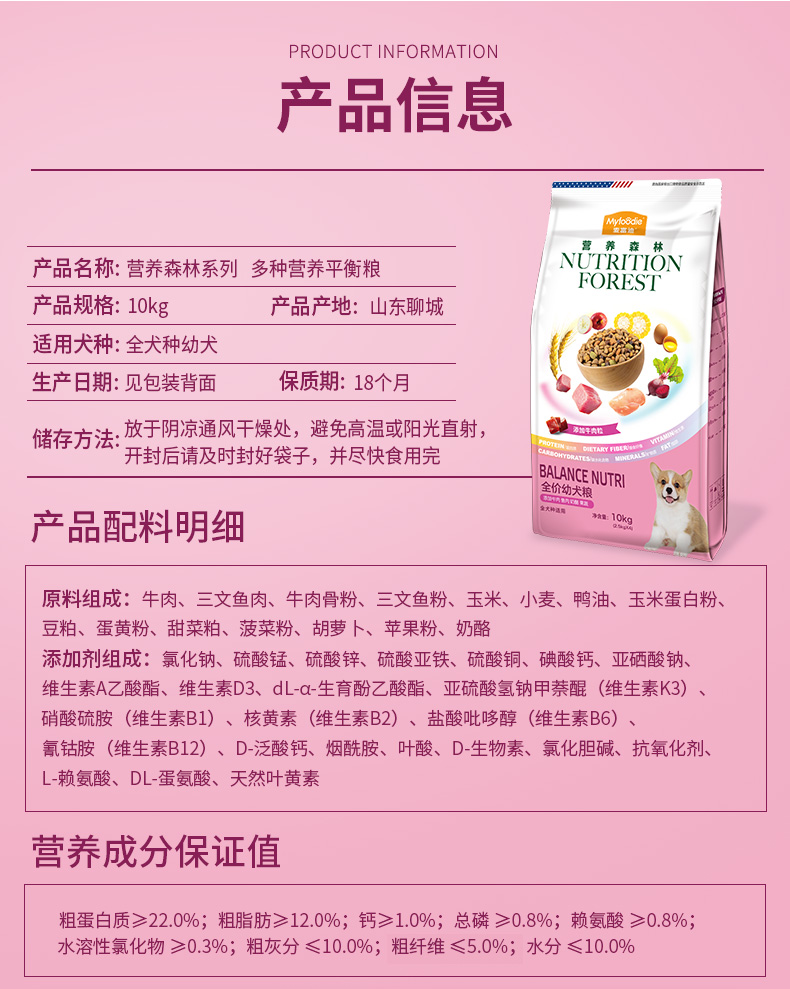 麦富迪狗粮营养森林成犬幼犬粮10kg