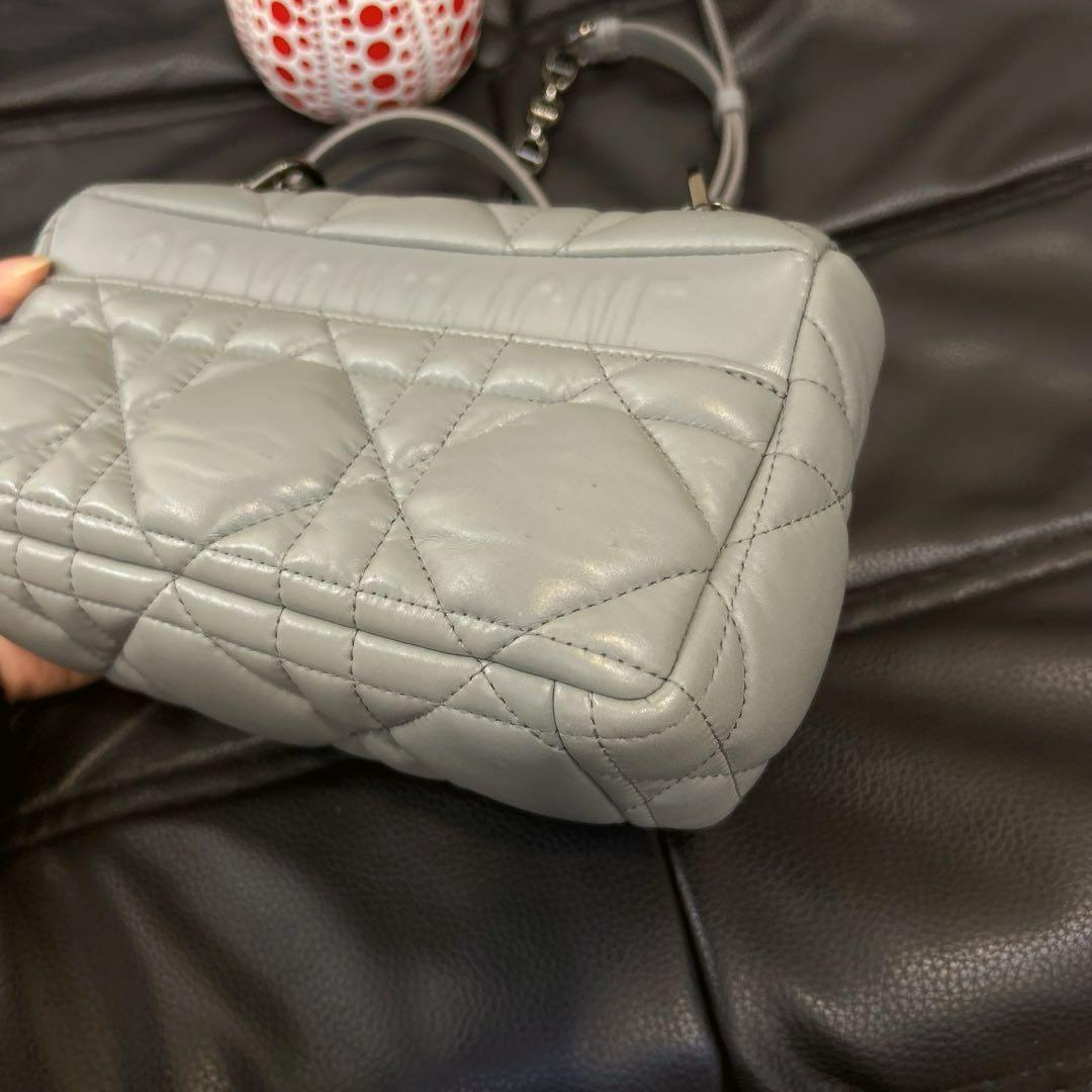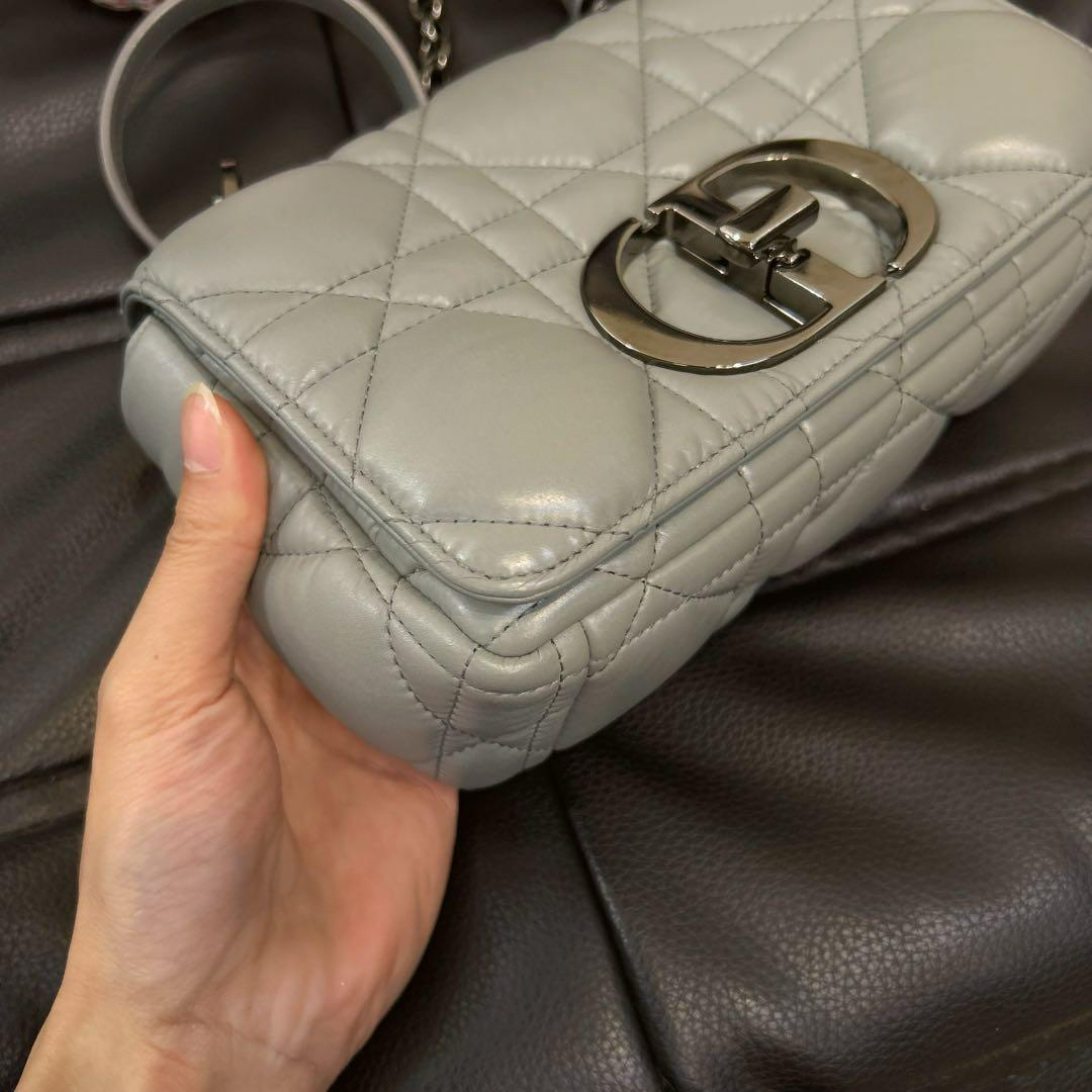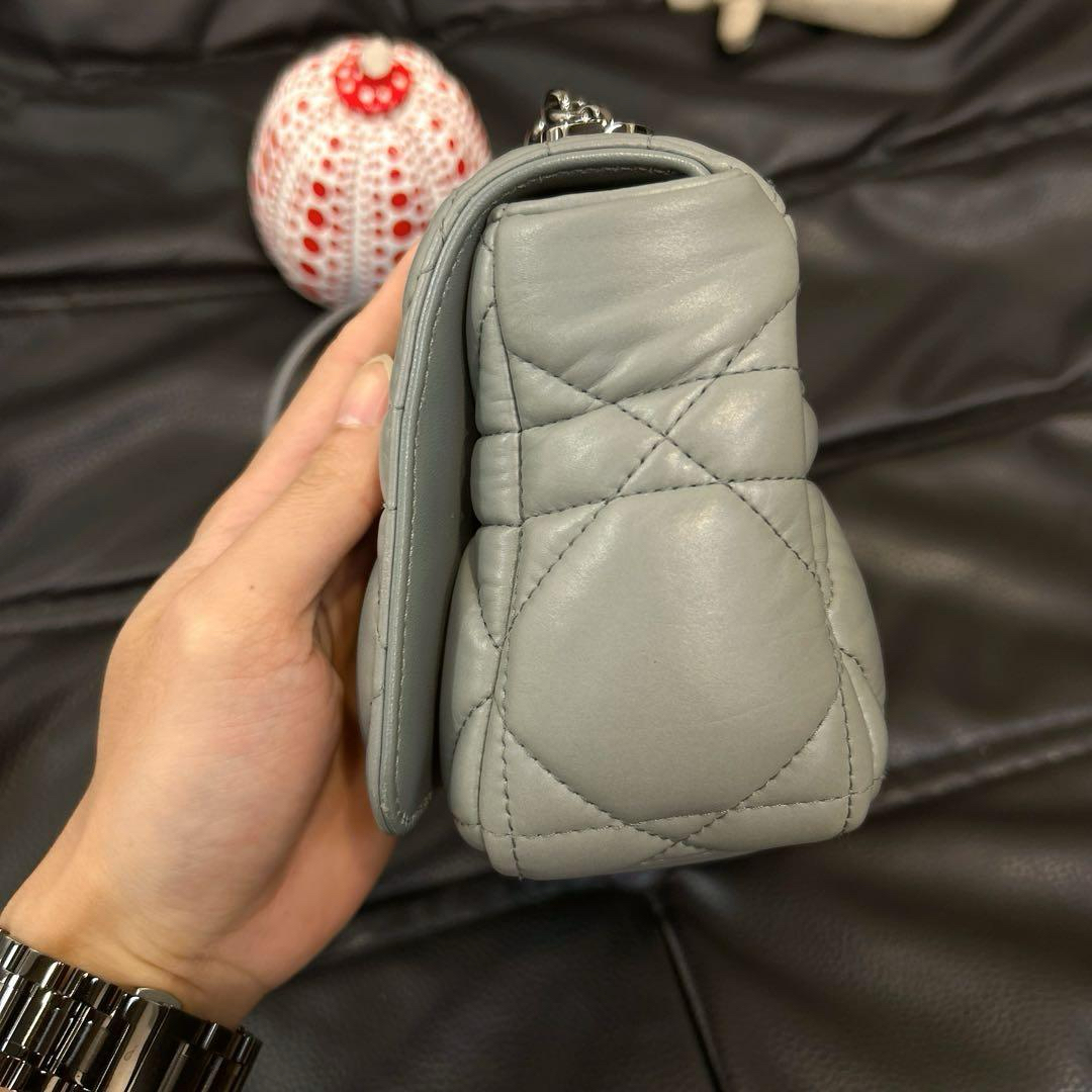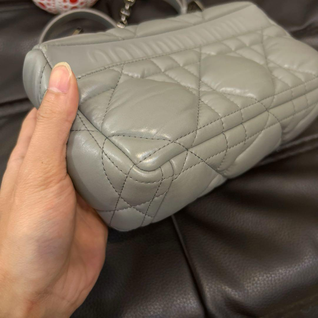 【商品详情】正品二手 Dior 小号 灰色 菱格 羊皮羽绒 斜挎包🍊97新 20*11。翻盖角有微微摩擦感 包背部有一处小污渍。梦中情包