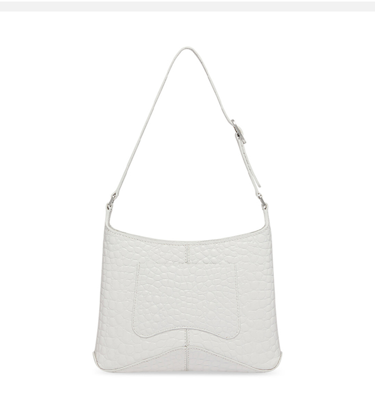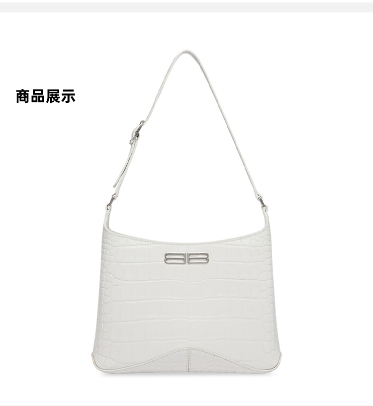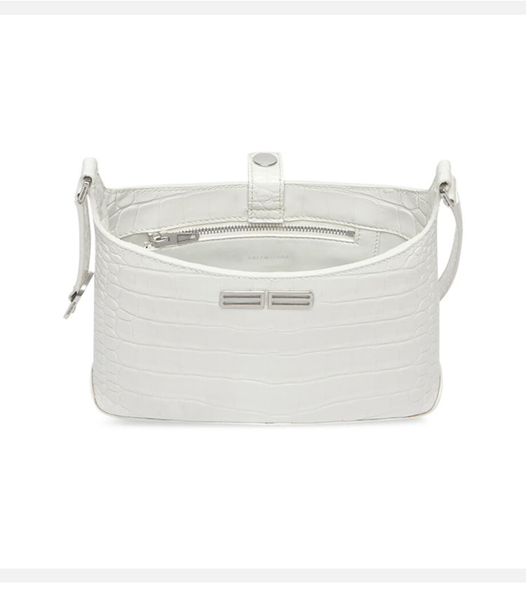 BALENCIAGA 巴黎世家 女士小号闪亮柔软小牛皮流浪包鳄鱼压纹斜挎单肩包 白色 695589 2108Y 9001