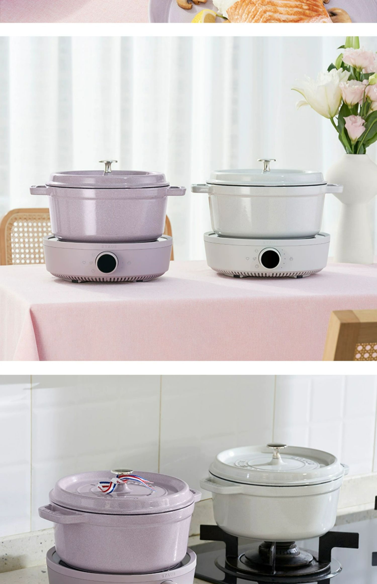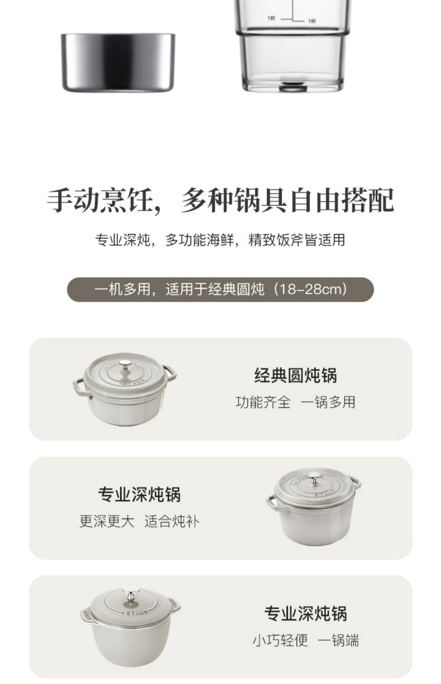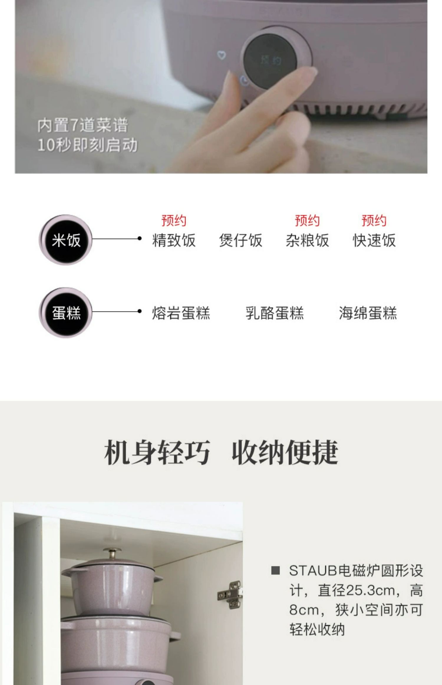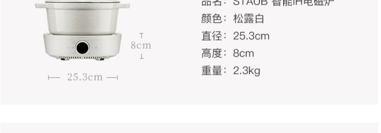 【柏联B1】Staub 智能IH 电磁炉组合(松露白) 赠:米水杯/防烫帽/硅胶铲 Staub 陶瓷小碗 12CM一个(樱桃红)