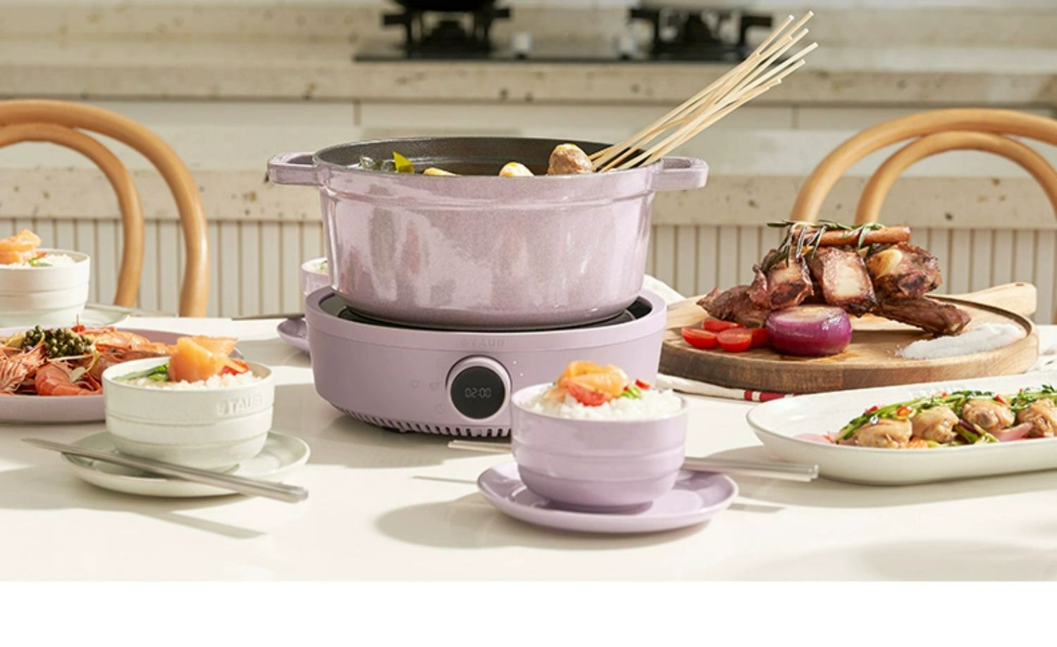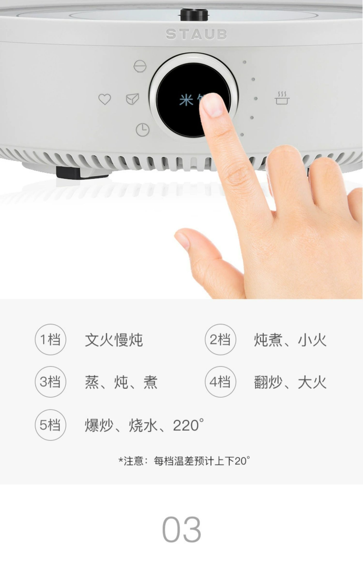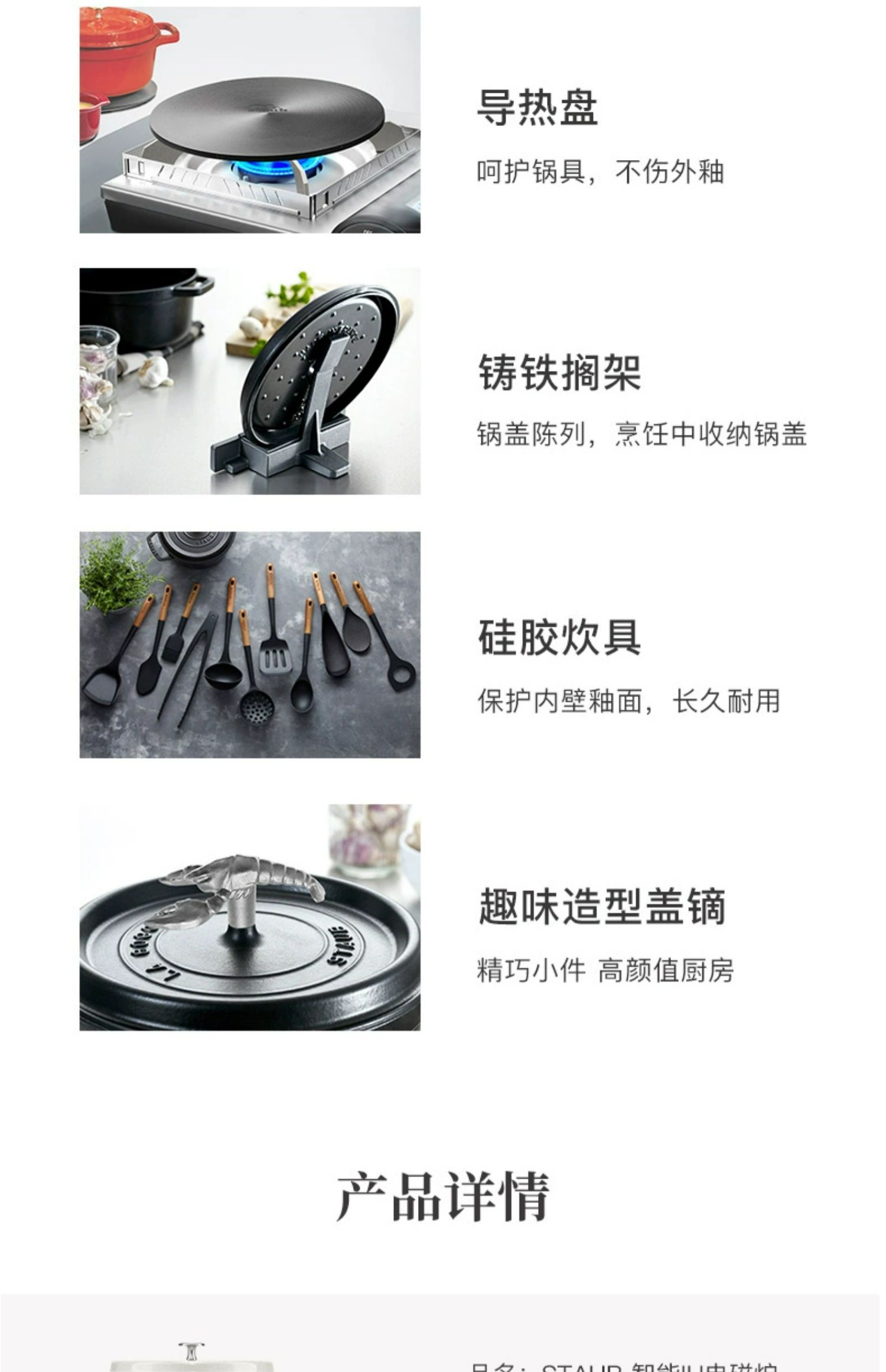 【柏联B1】Staub 智能IH 电磁炉组合(松露白) 赠:米水杯/防烫帽/硅胶铲 Staub 陶瓷小碗 12CM一个(樱桃红)