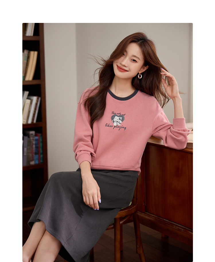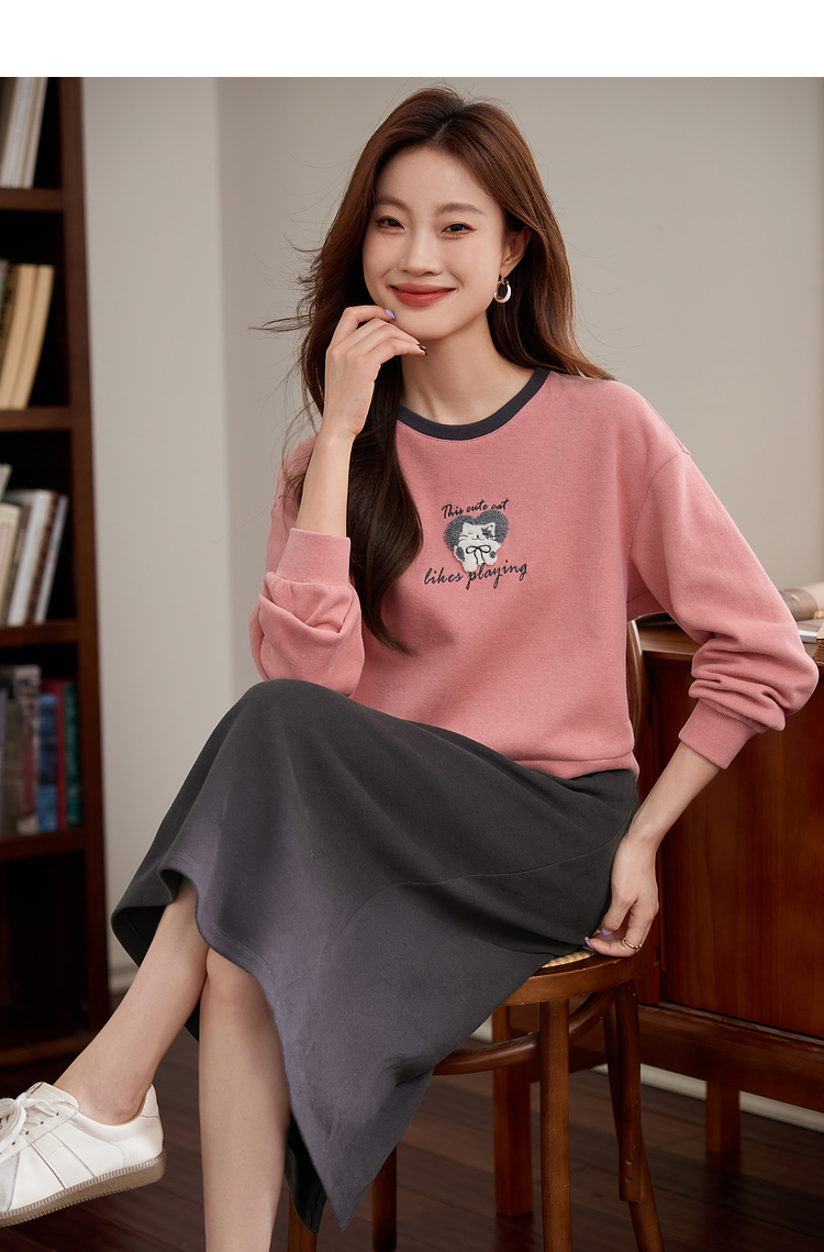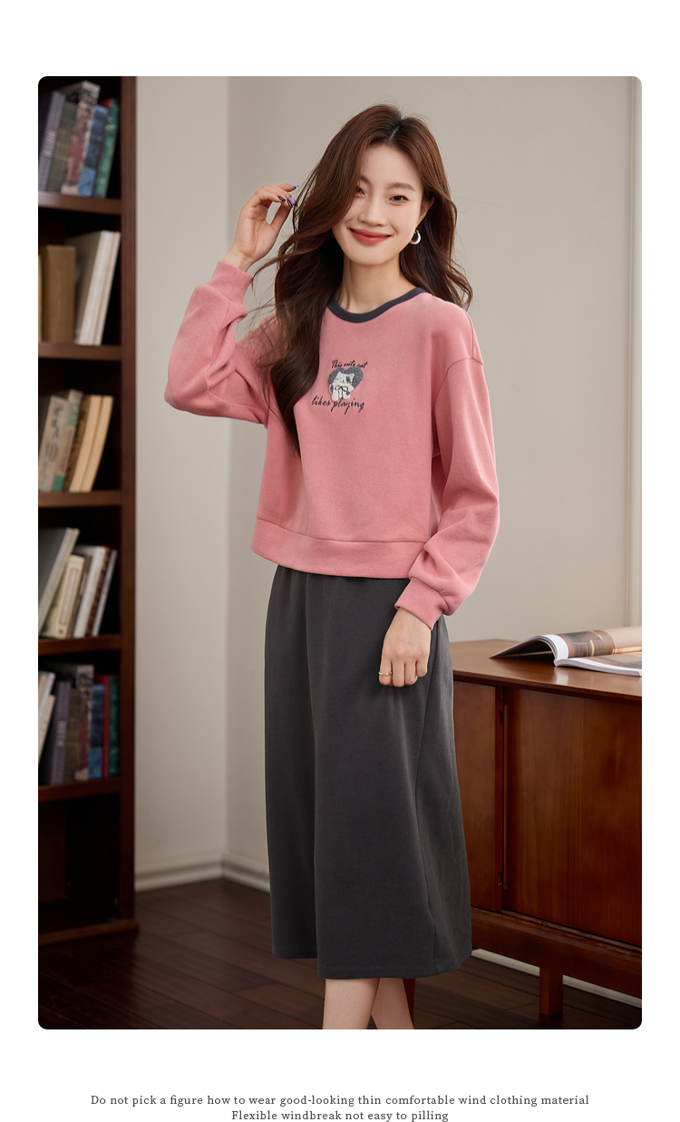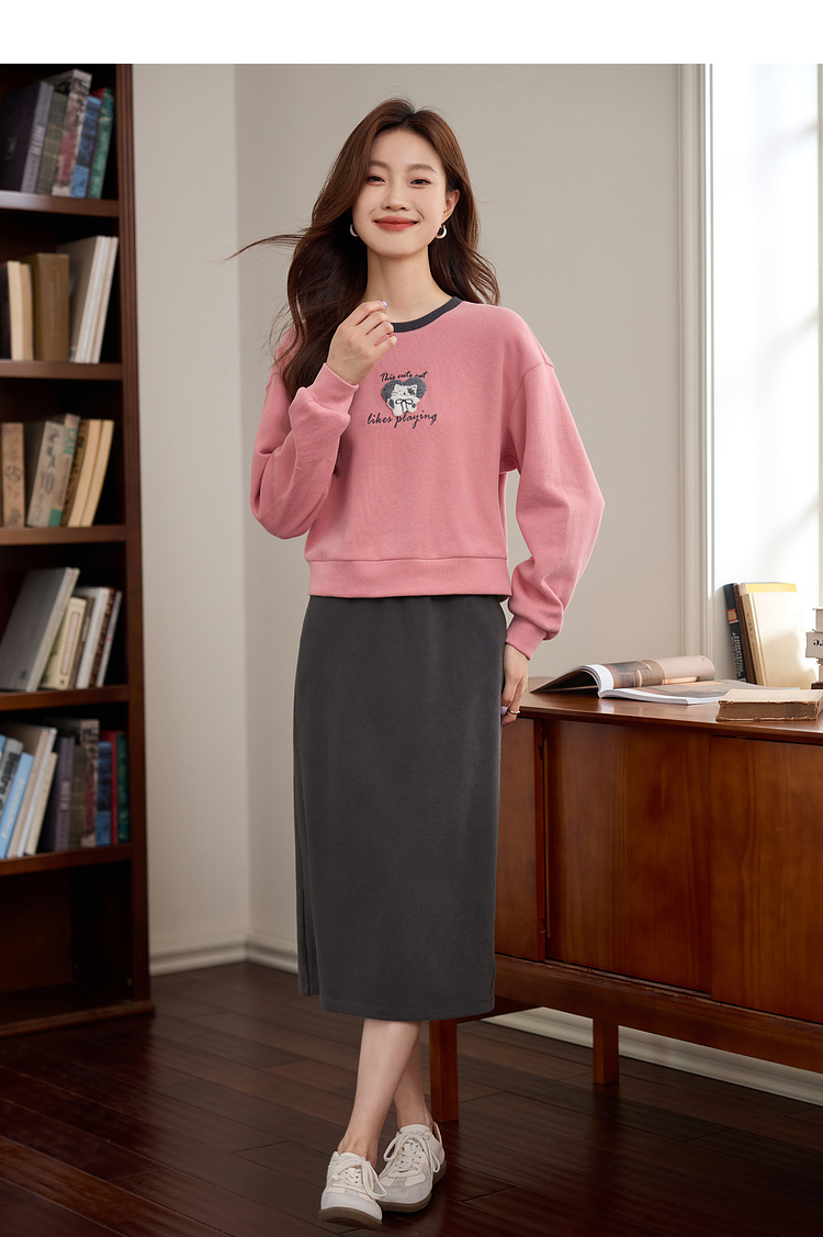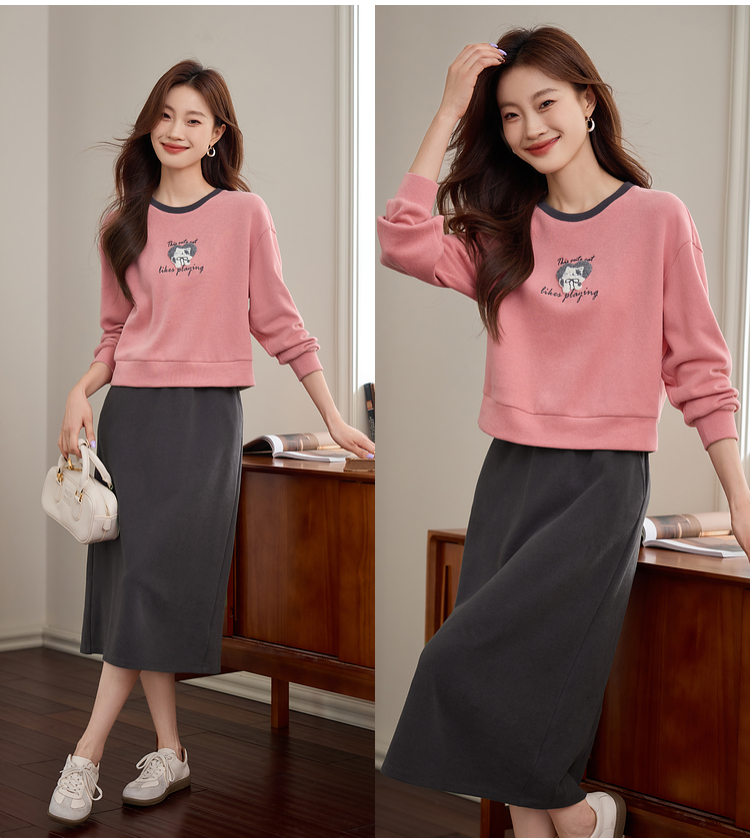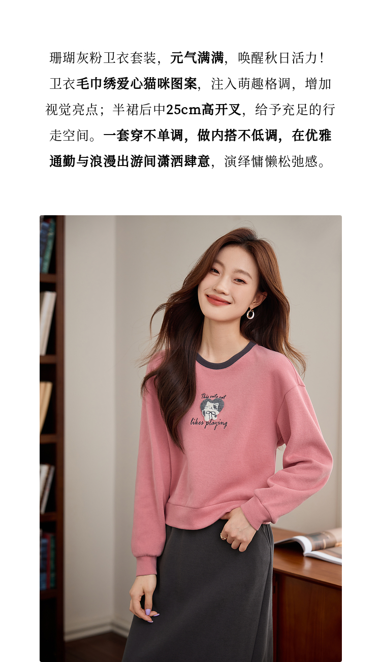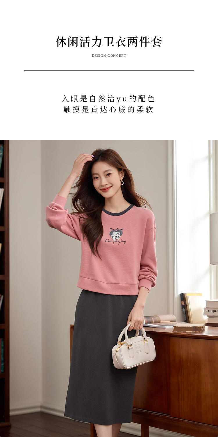 【年终特卖】熙世界休闲运动正肩圆领卫衣半身裙两件套装2025秋装搭配一整套