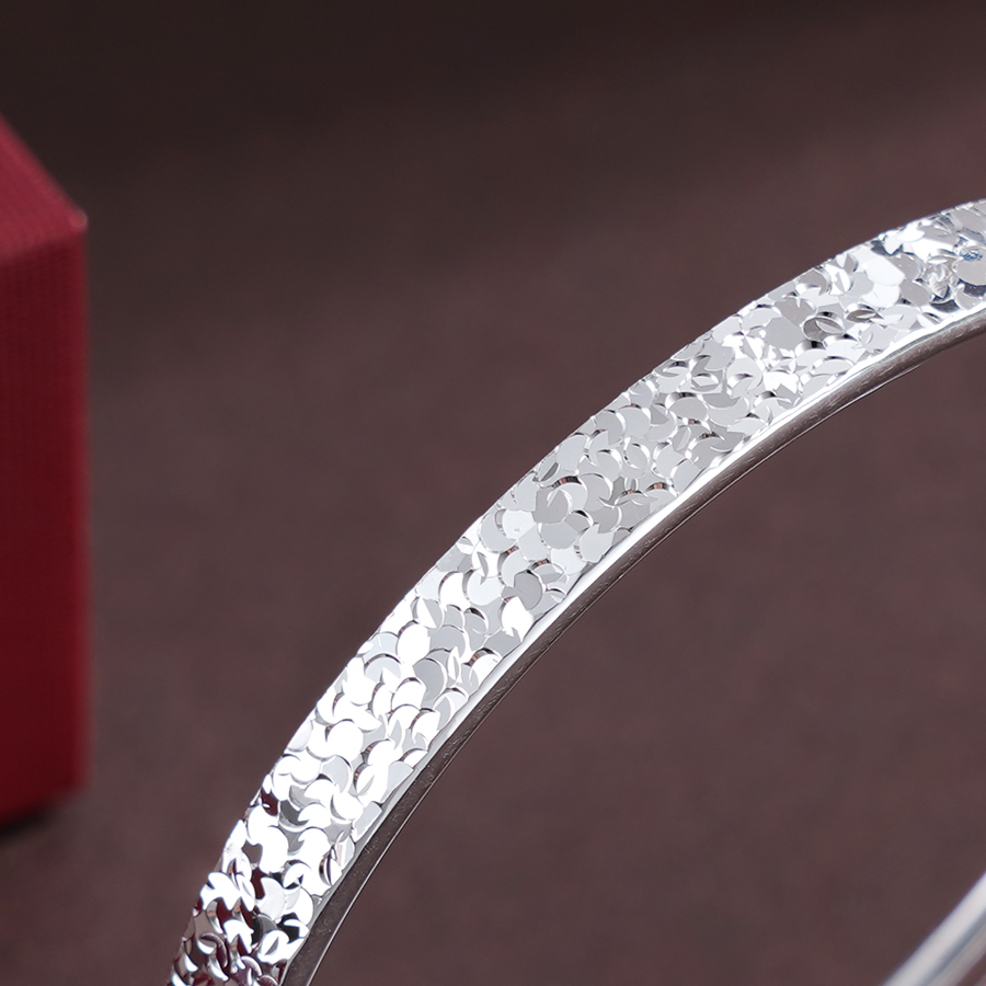 【寓意】:碎冰冰儿童手镯,表面呈现出类似碎冰的纹理,在光线照射下,闪闪熠熠,清新雅致。可推拉设计,从容佩戴,另有同款成人手镯,作为母女款也很不错哦。