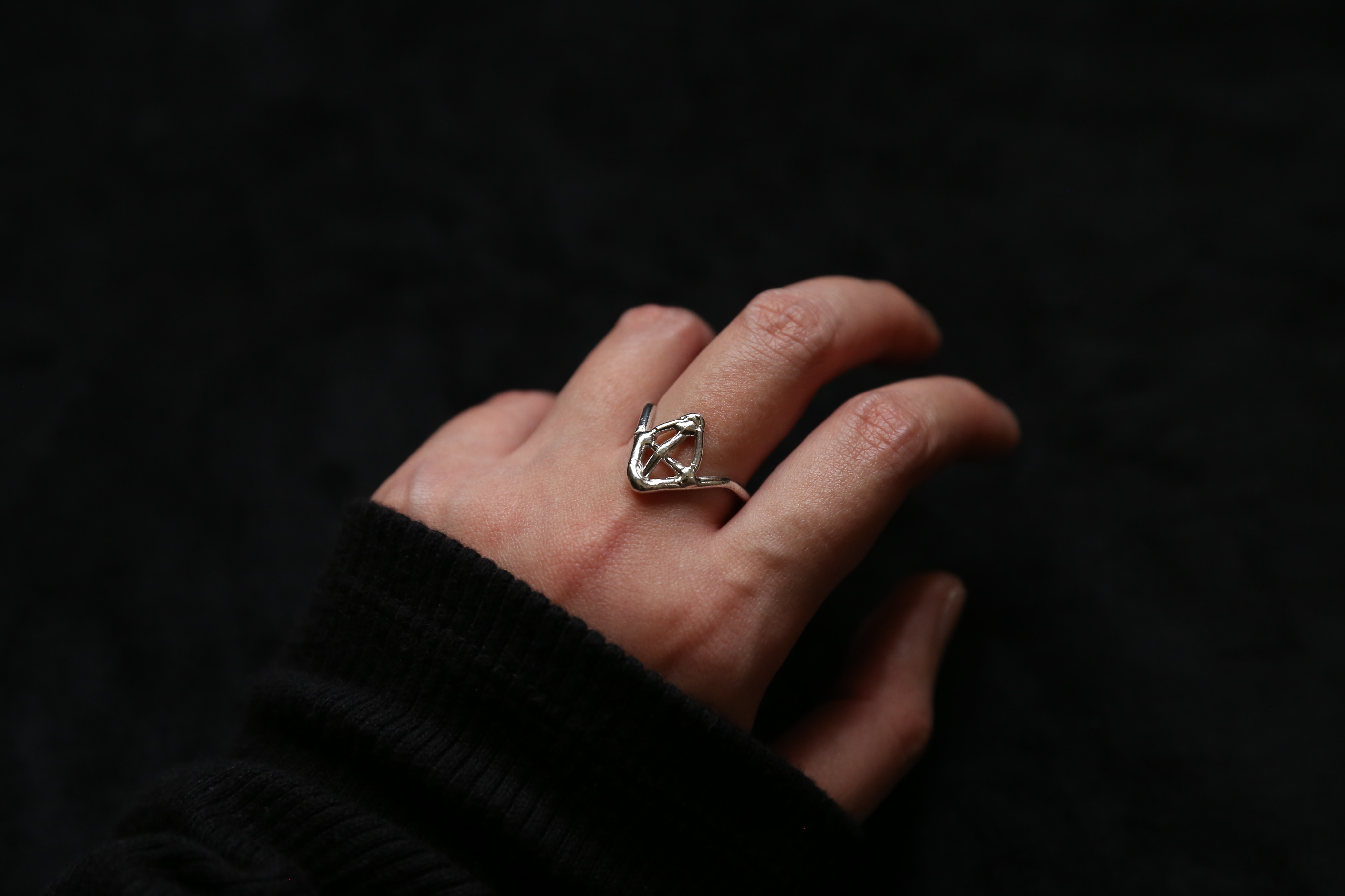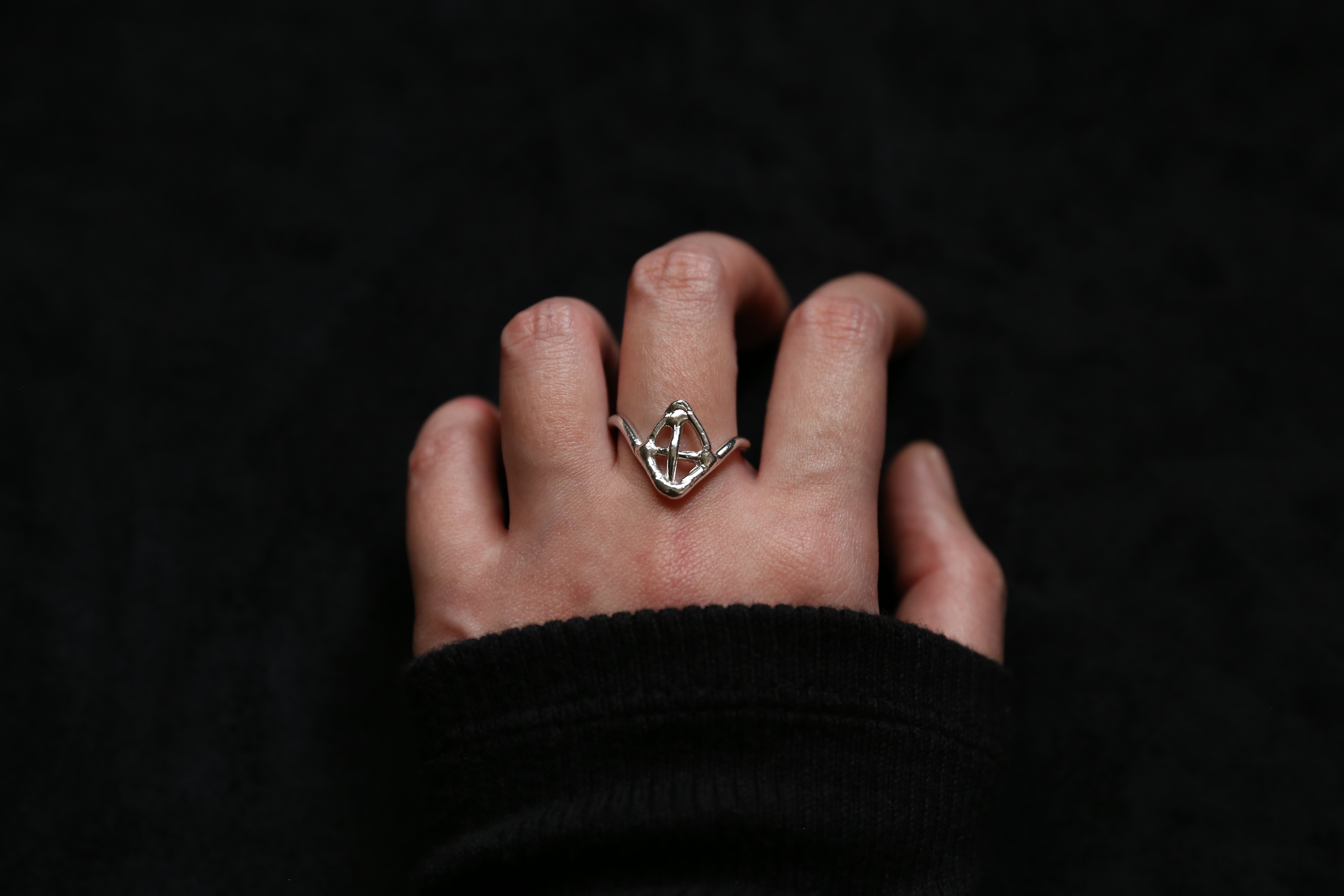 925银手工几何造型戒指