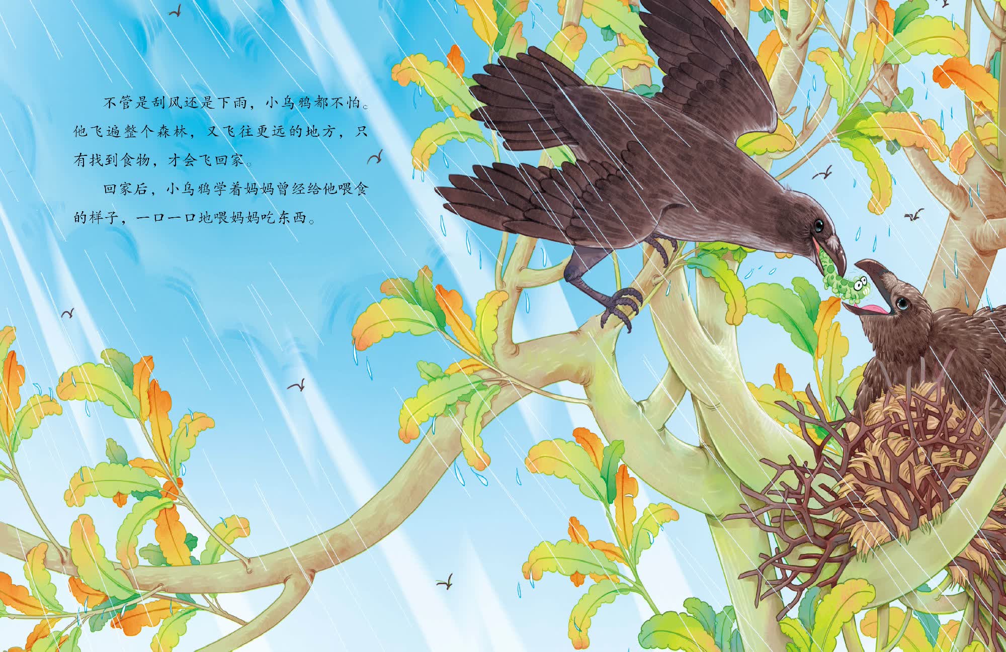 乌鸦宝宝出生后,其貌不扬的外表换来了小动物们的嘲笑和质疑,他开始怀疑自己,变得自卑起来,但温柔善良的乌鸦妈妈告诉他,外表并不重要,重要的是心灵美。小乌鸦用行动证明了一切,最终用爱心和耐心换来森林里其他动物的认同和赞扬。
