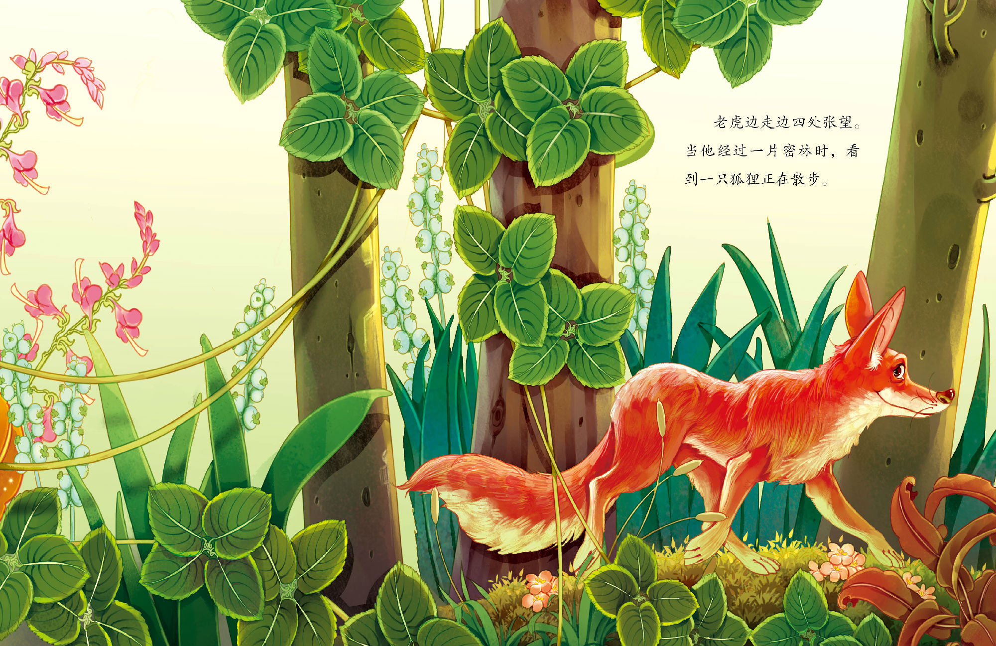 狐狸借着老虎的威风,吓跑了森林里的百兽。老虎被愚弄却不自知!