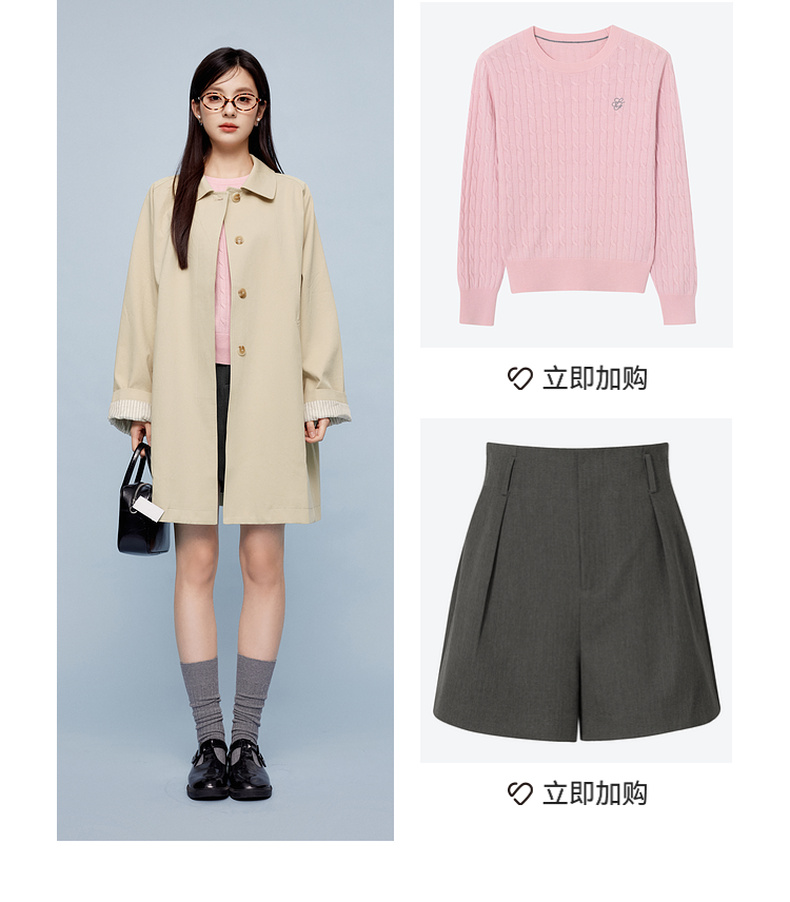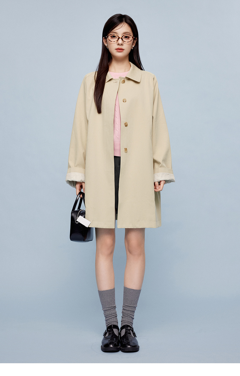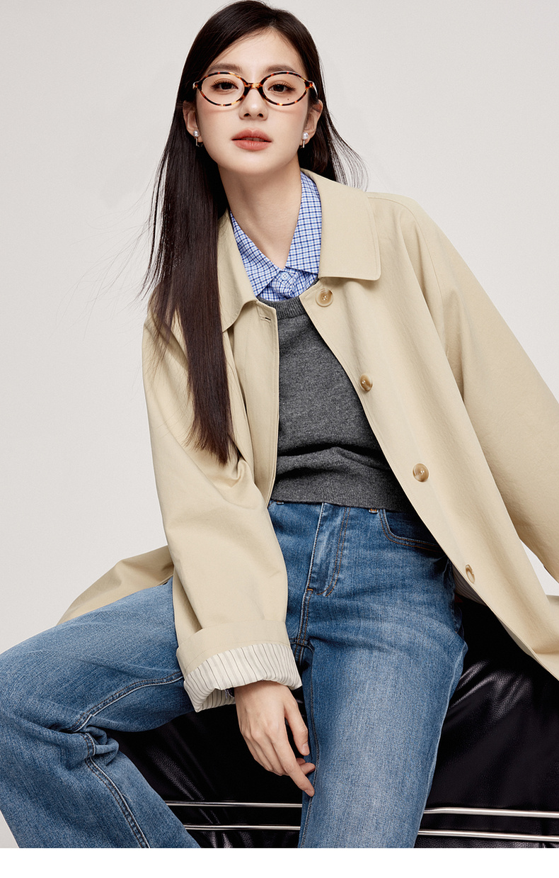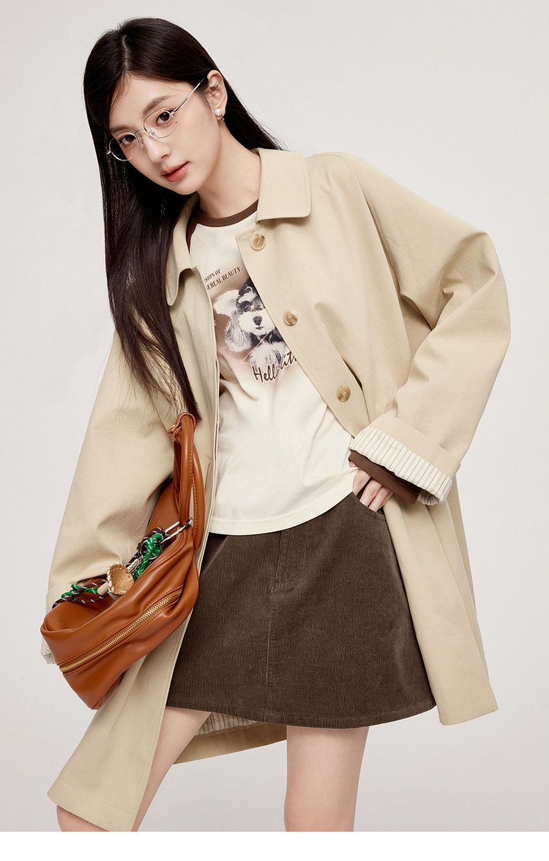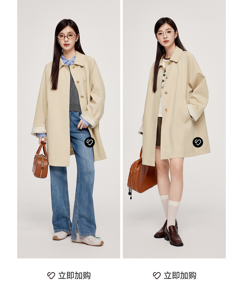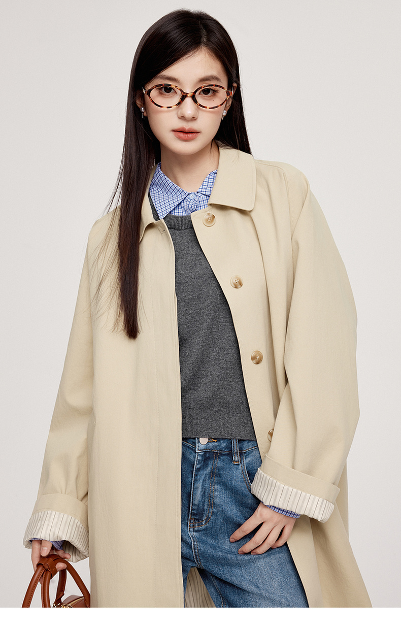 【严选】诗凡黎高级感卡其色风衣2024秋新款小个子中长设计感通勤气质外套SF8160211